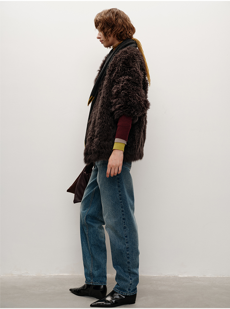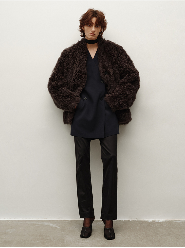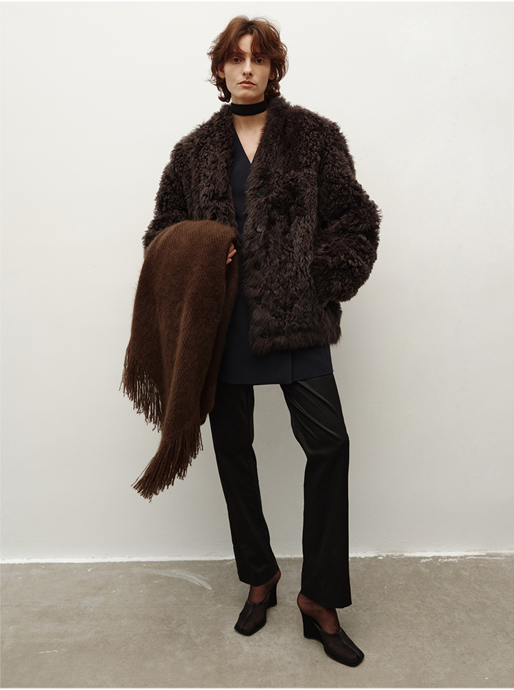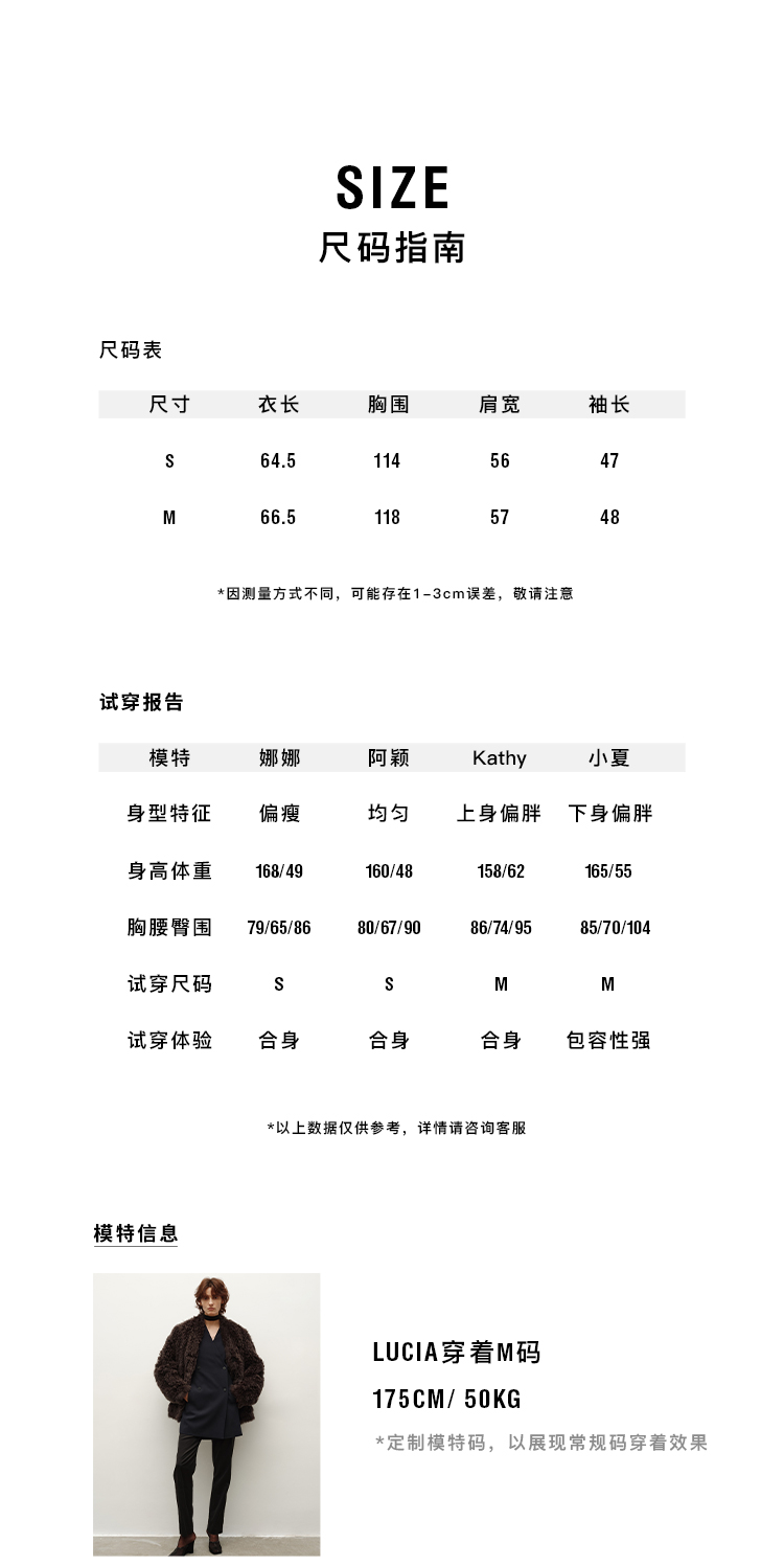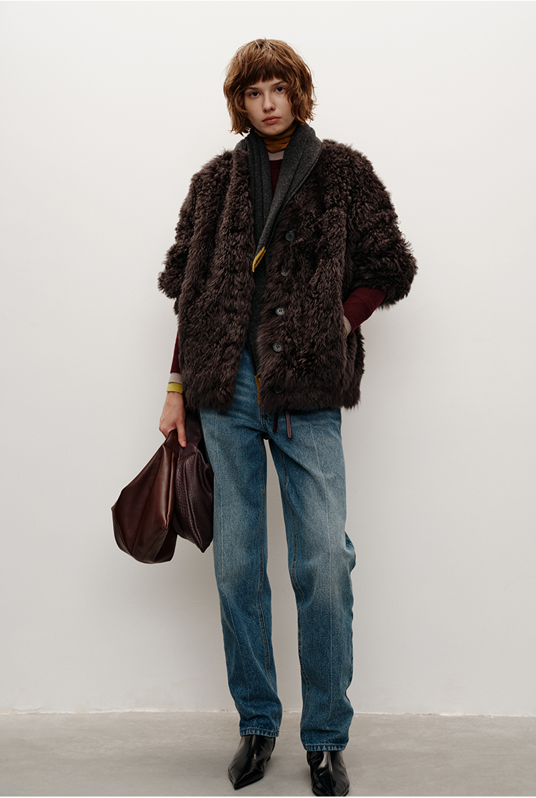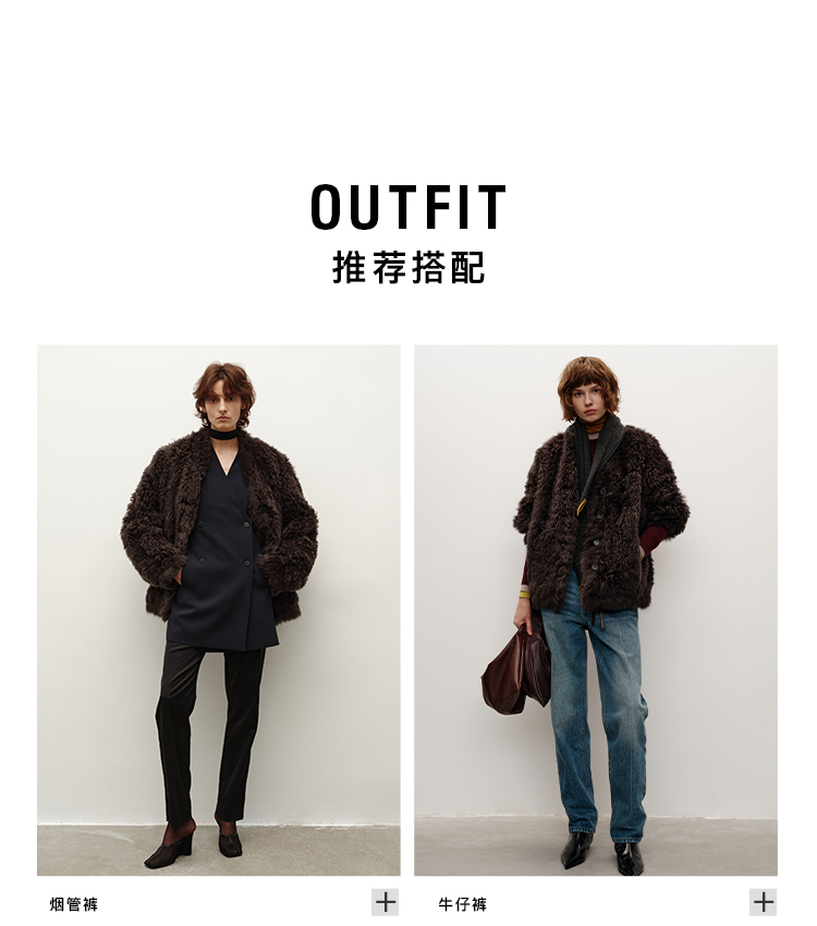 HIDEMI 大秀款进口西班牙羊羔毛卷毛v领皮毛一体大衣外套 高级灰