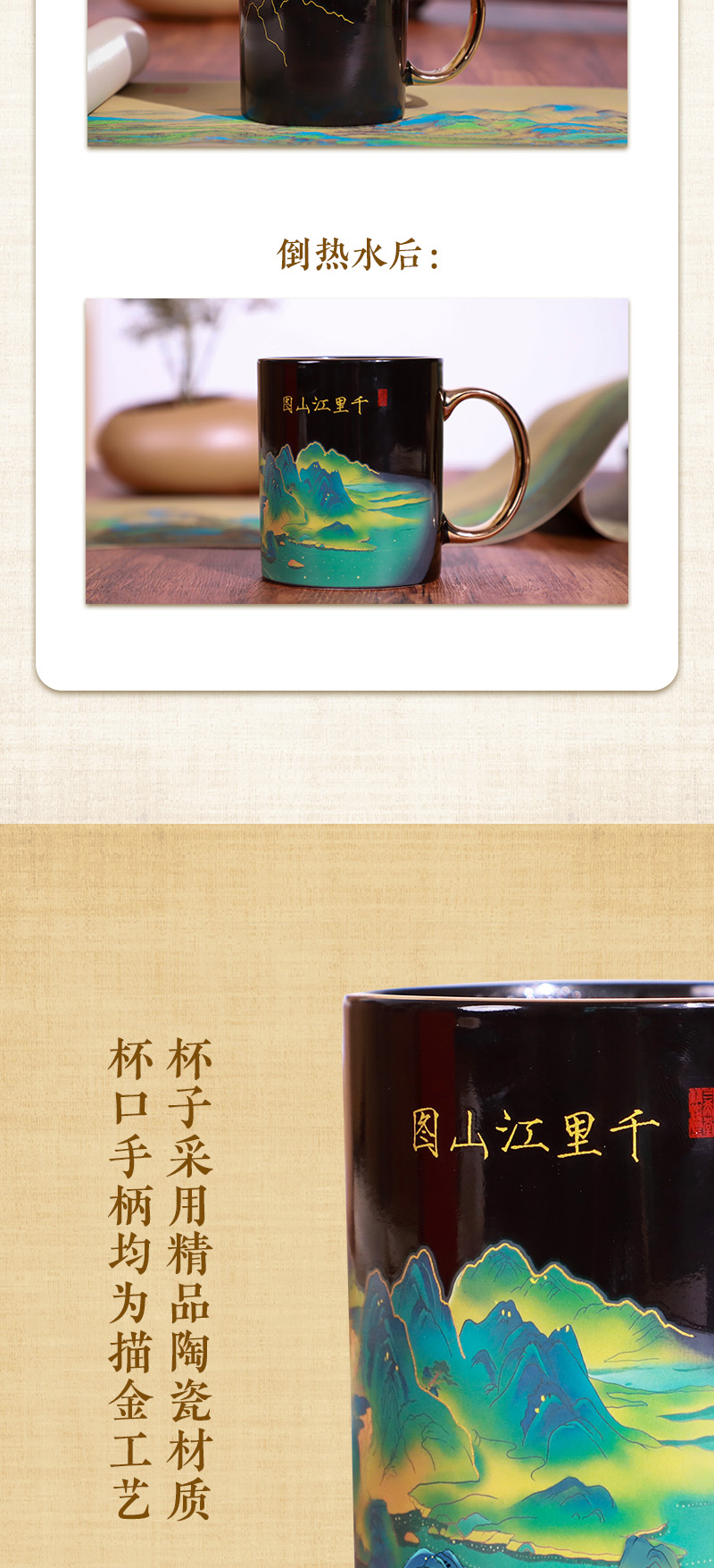 【千里江山图_感温变色杯】 中国景德镇御器研究院出品 (礼盒装)`高端大气,送礼自用两相宜,新年礼物、企业年会、周年庆典、开业纪念