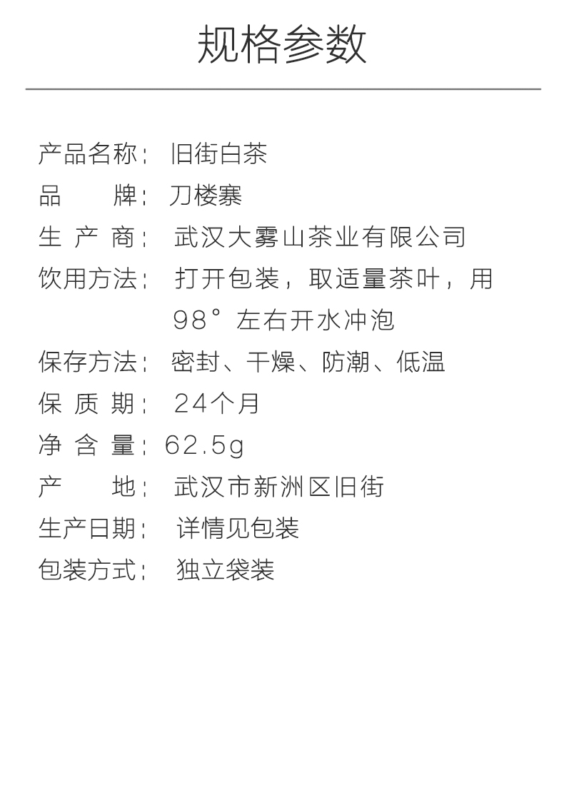 【武汉.新洲】江城百臻武汉大雾山刀楼寨旧街白茶125g(62.5g*2袋)茶叶