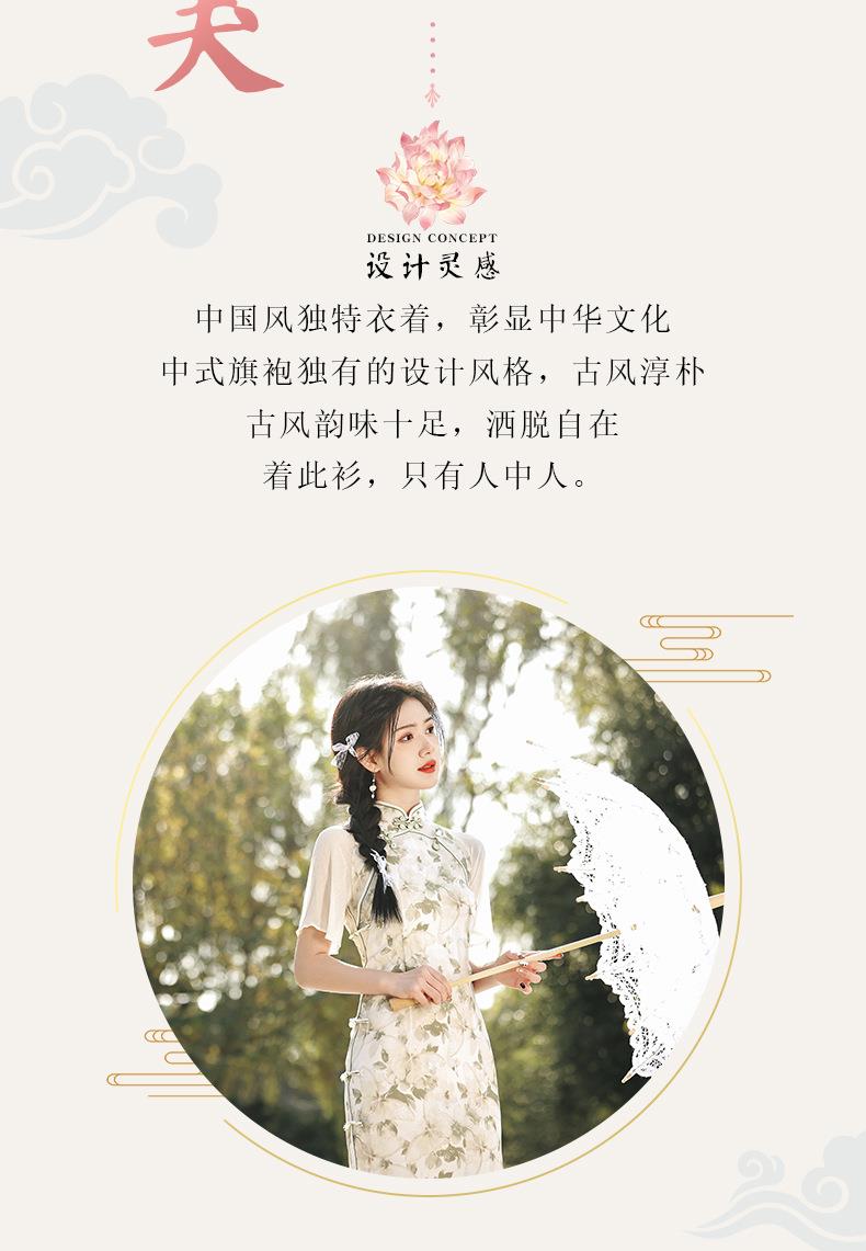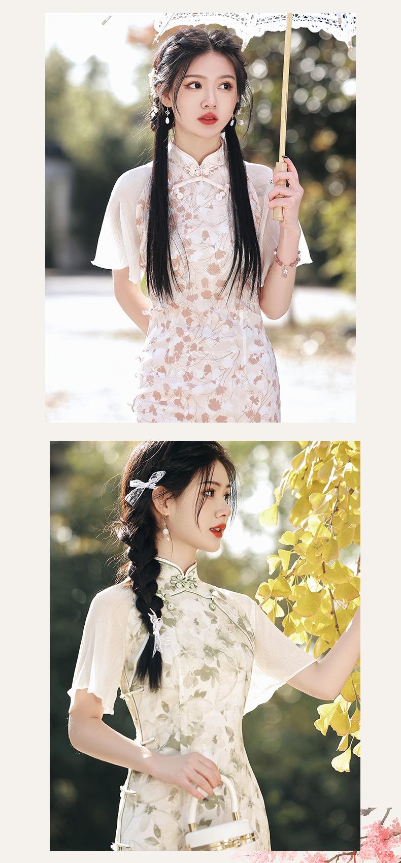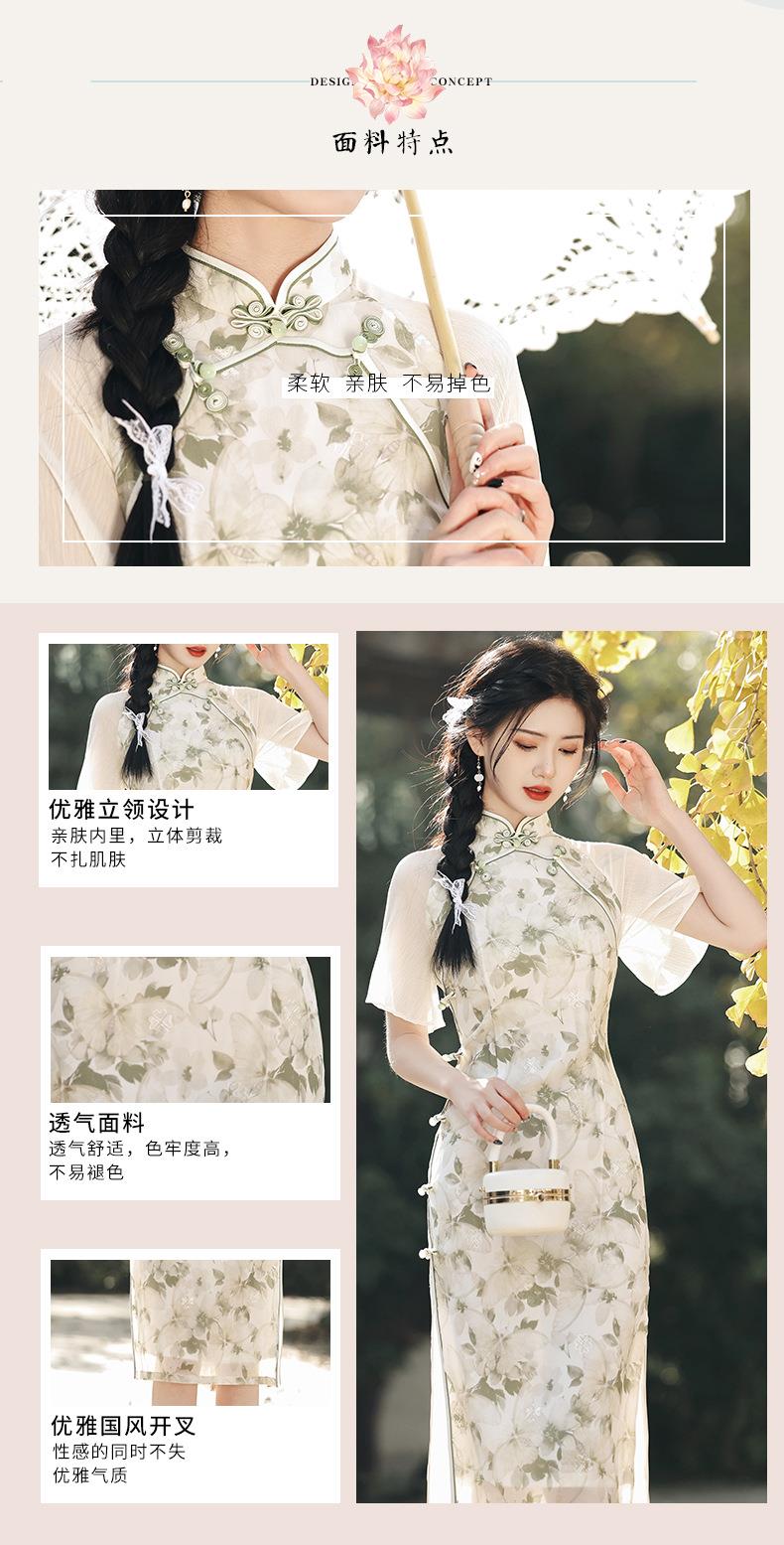 2023春夏新款雪纺双层飞飞袖旗袍连衣裙清新文艺民国风改良旗袍