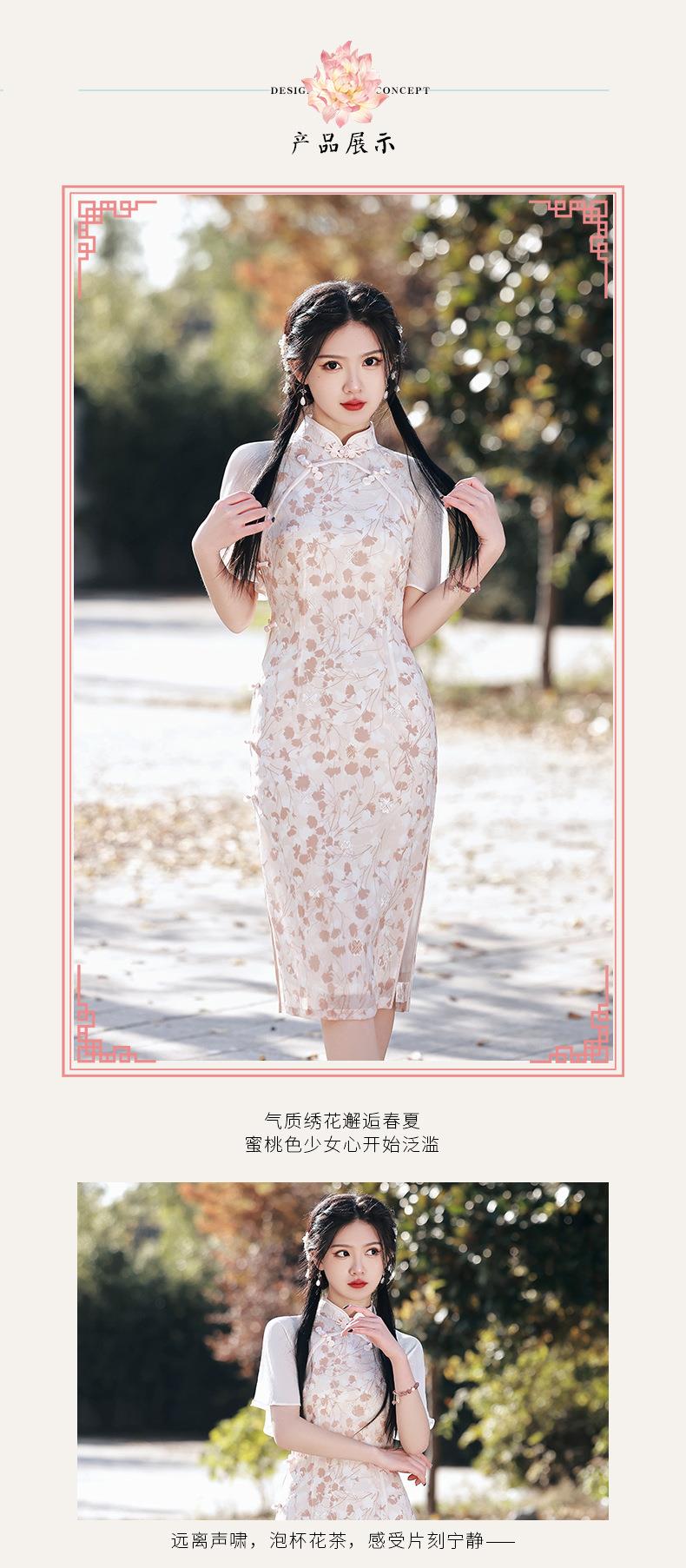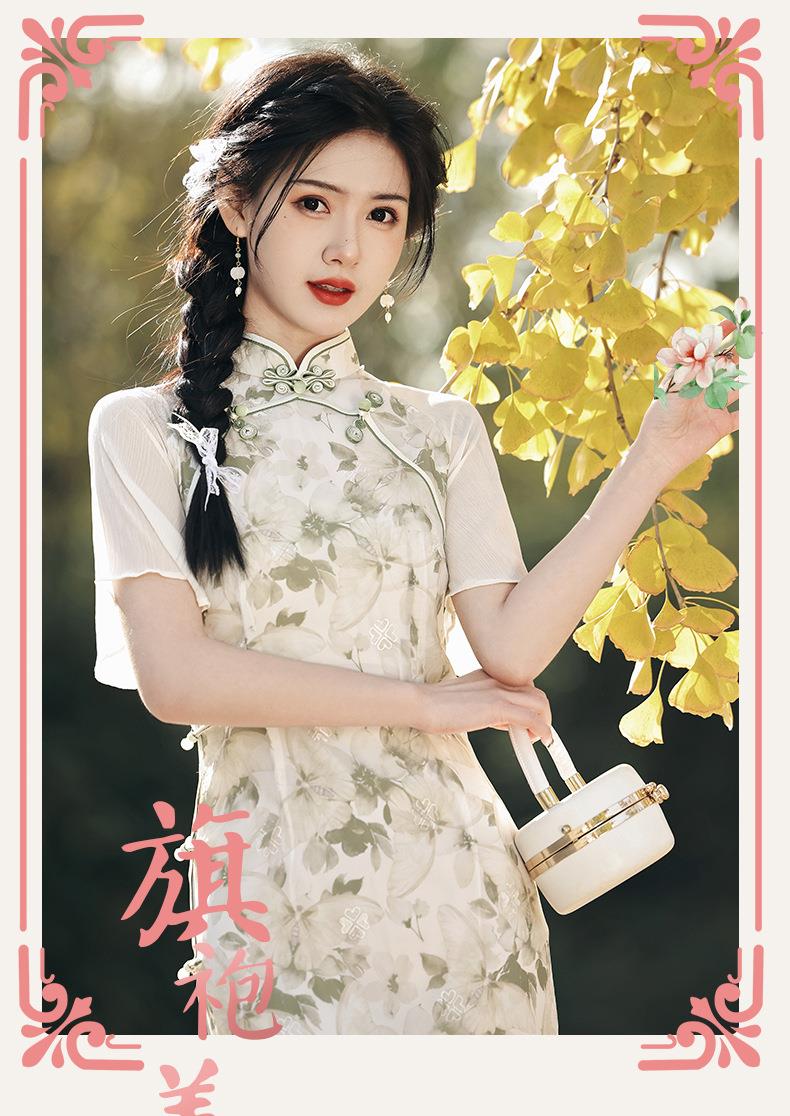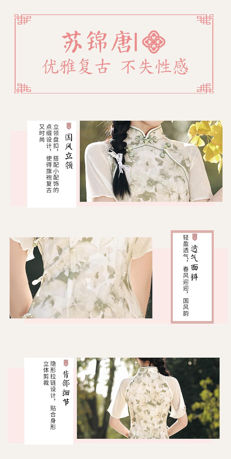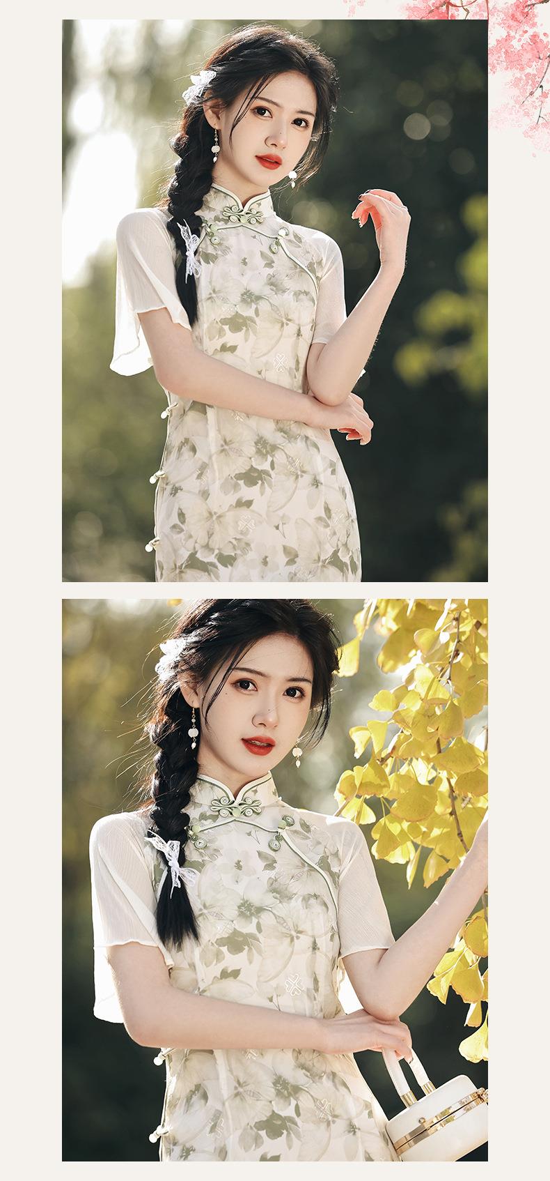 2023春夏新款雪纺双层飞飞袖旗袍连衣裙清新文艺民国风改良旗袍