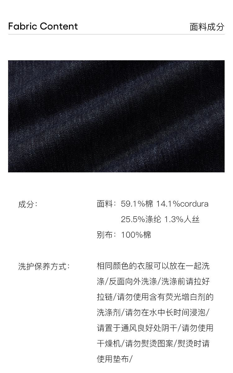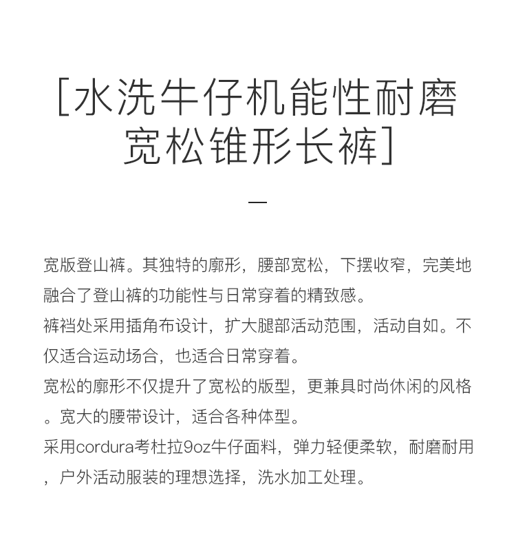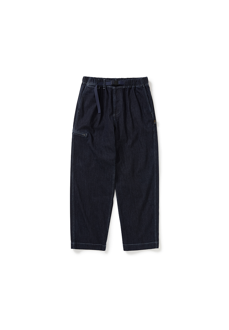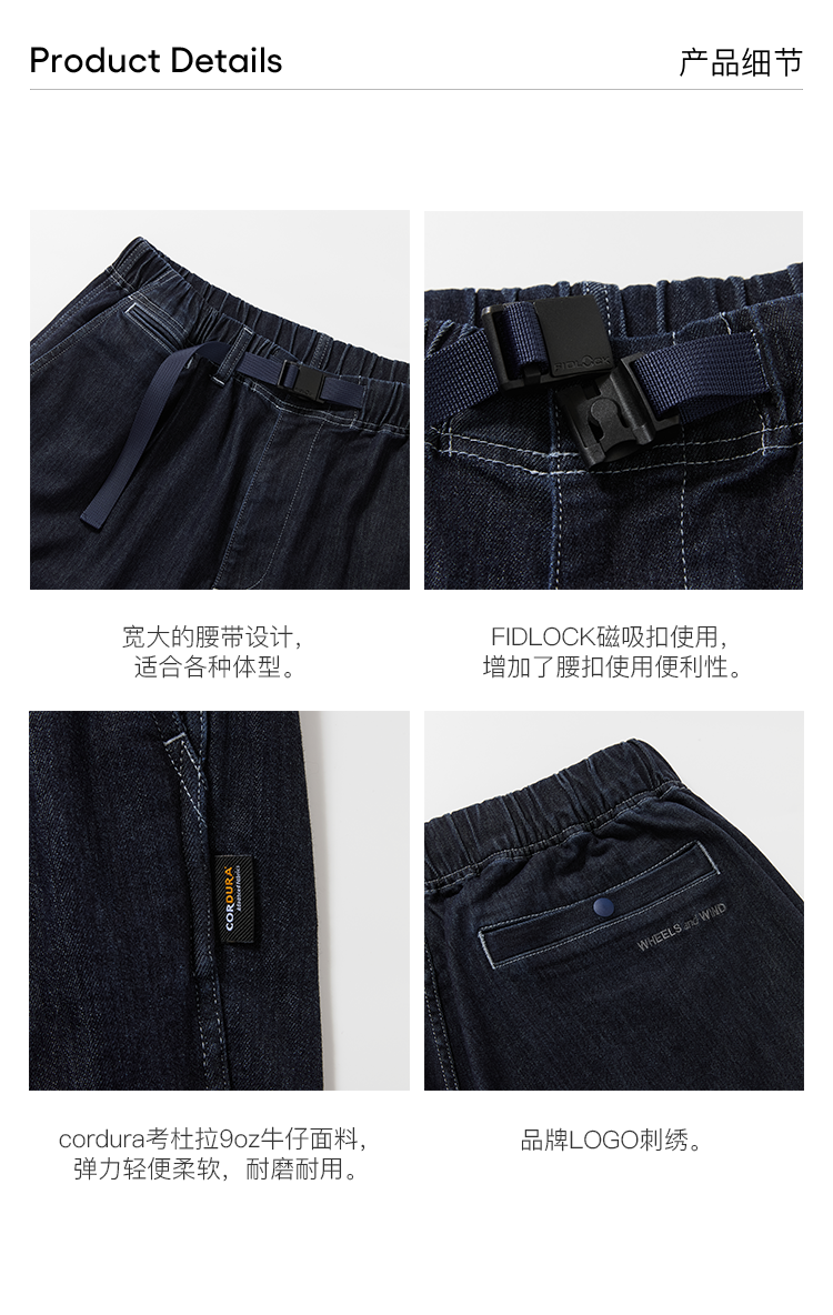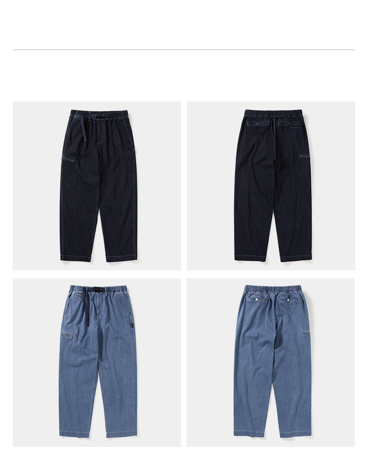 WHEELS and WIND 男女中性款水洗牛仔机能性耐磨宽松锥形长裤