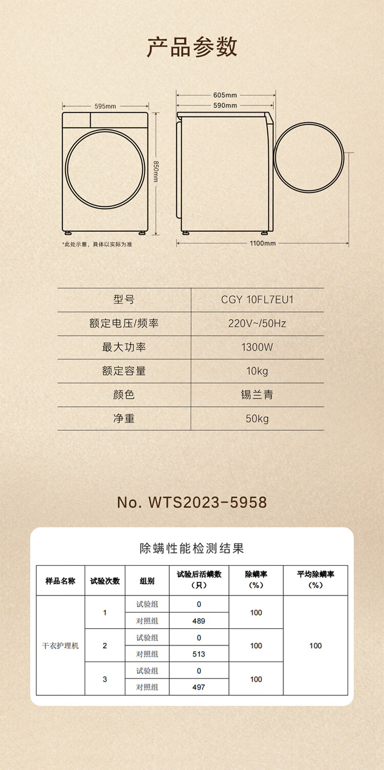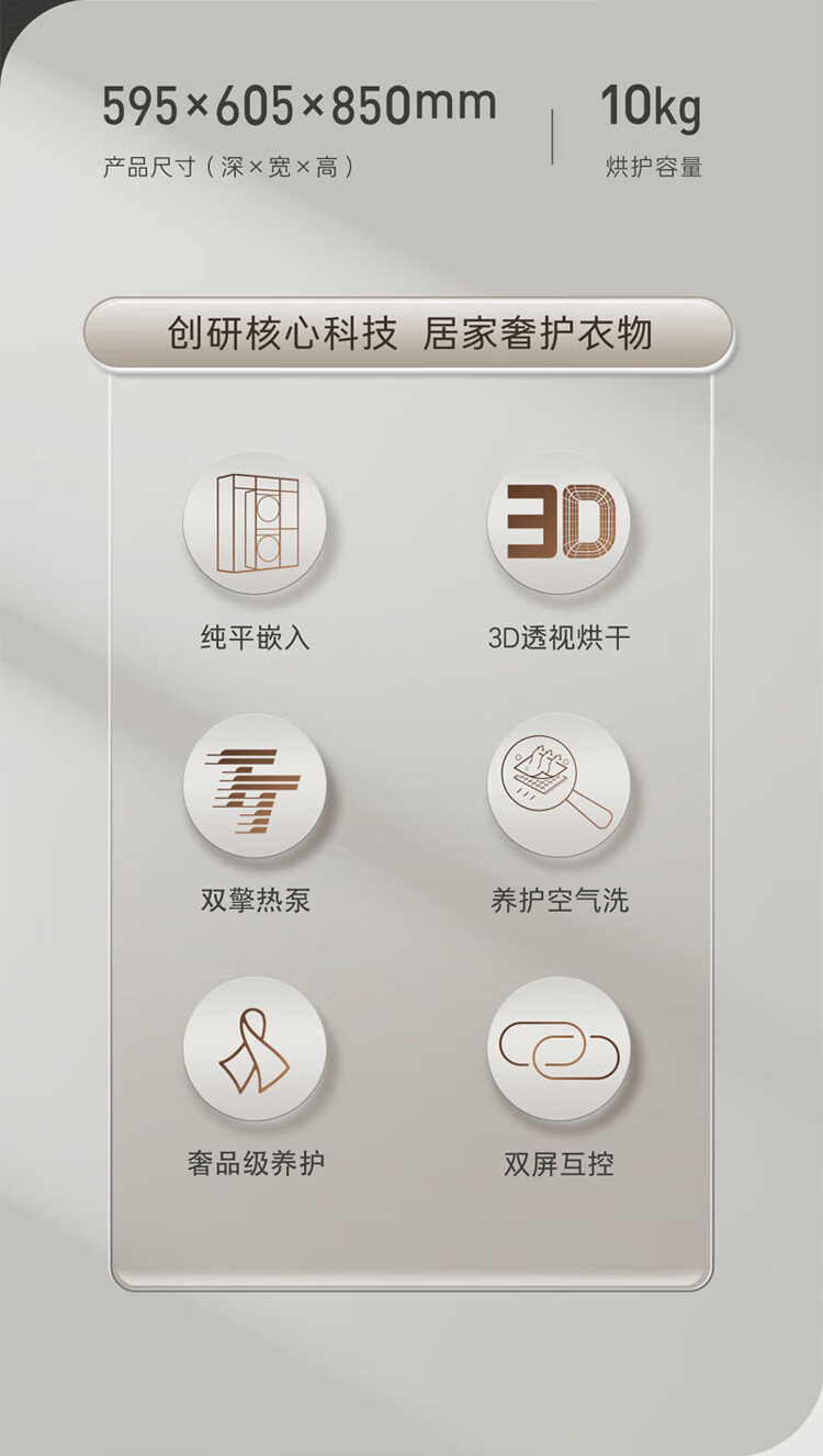 卡萨帝(Casarte)10公斤双擎热泵干衣机 空净过滤 羊毛柔烘 除菌净螨 干衣机护理机 烘干机CGY 10FL7EU1