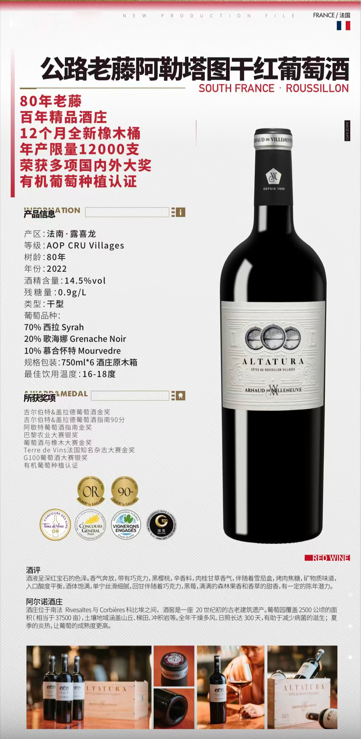 2022年份法南.露喜龙80年老藤混酿12个月橡木桶14.5%vol