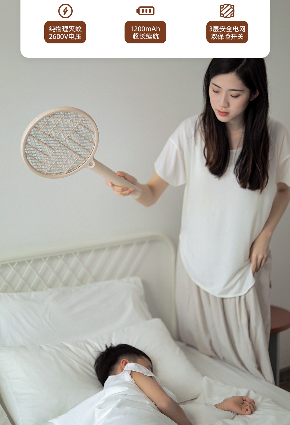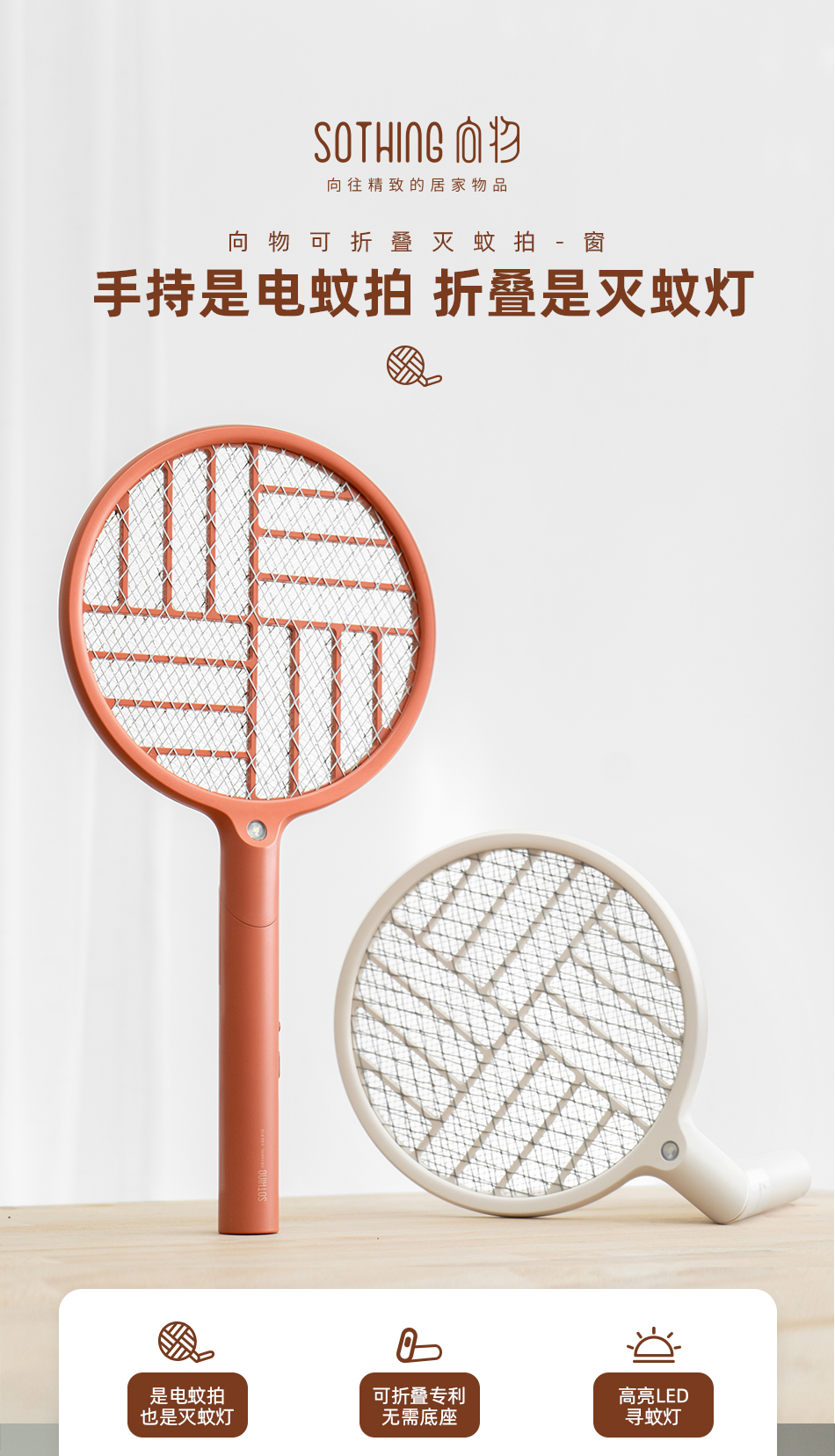 向物(SOTHING)电蚊拍充电式家用强力灭蚊灯蚊子拍灭蚊器紫光诱蚊灯拍两用二合一【可折叠灭蚊拍-窗 杏白】