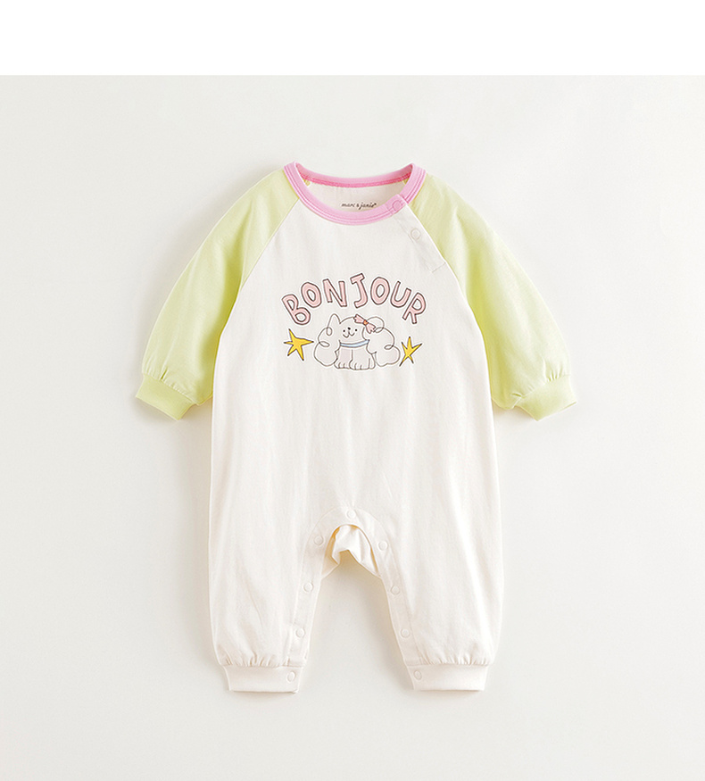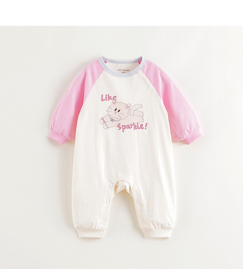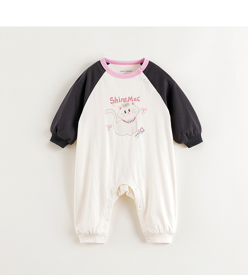 马克珍妮女童可爱猫咪撞色连体衣2025年春款新品250226