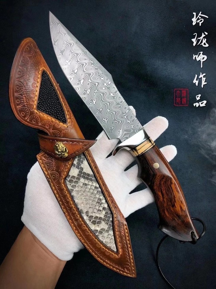 勇者博弈刀大马士革户外战术直刀美国沙漠铁木手柄