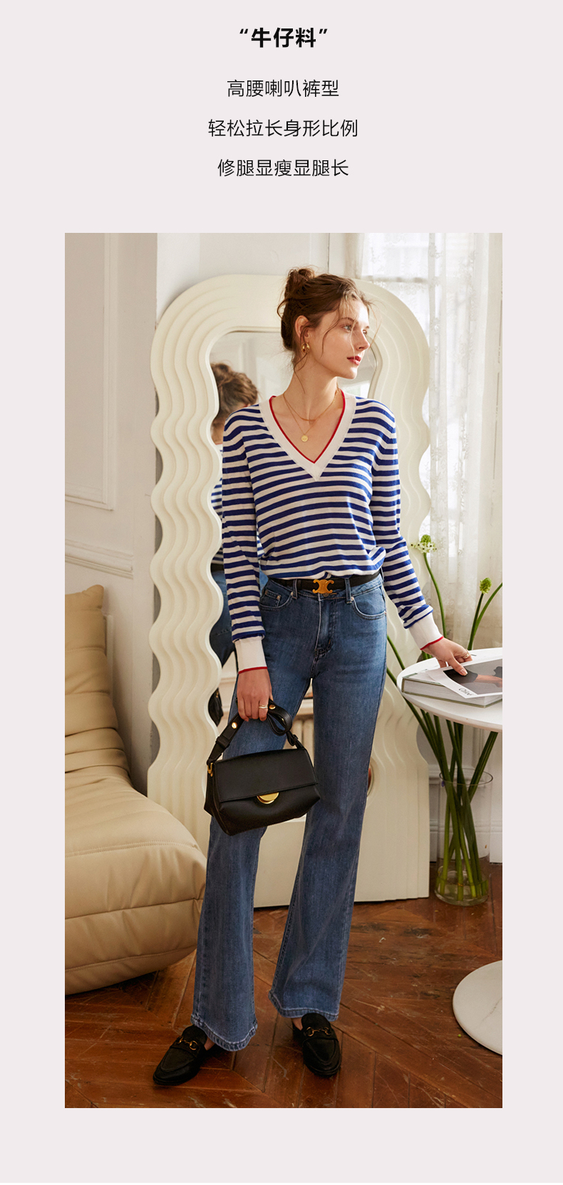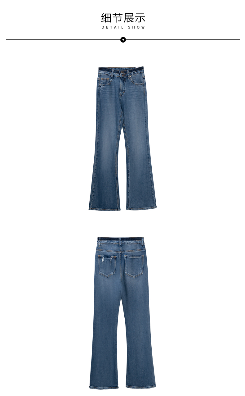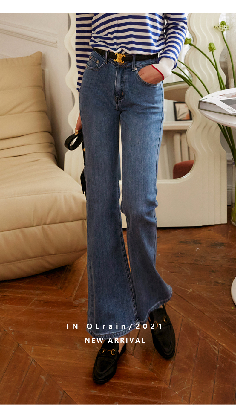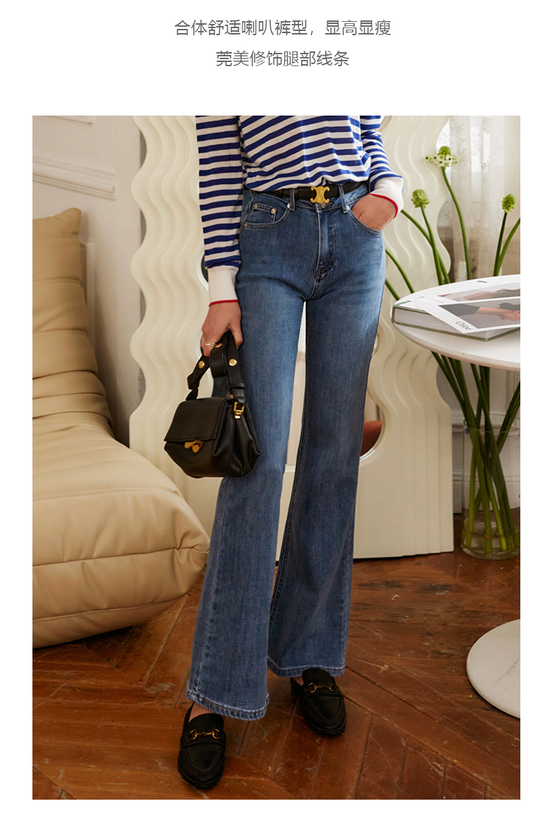 欧芮儿蓝色牛仔裤女春装新款2022高腰显瘦时尚直筒阔腿喇叭裤ins