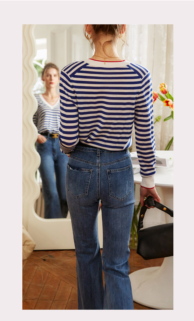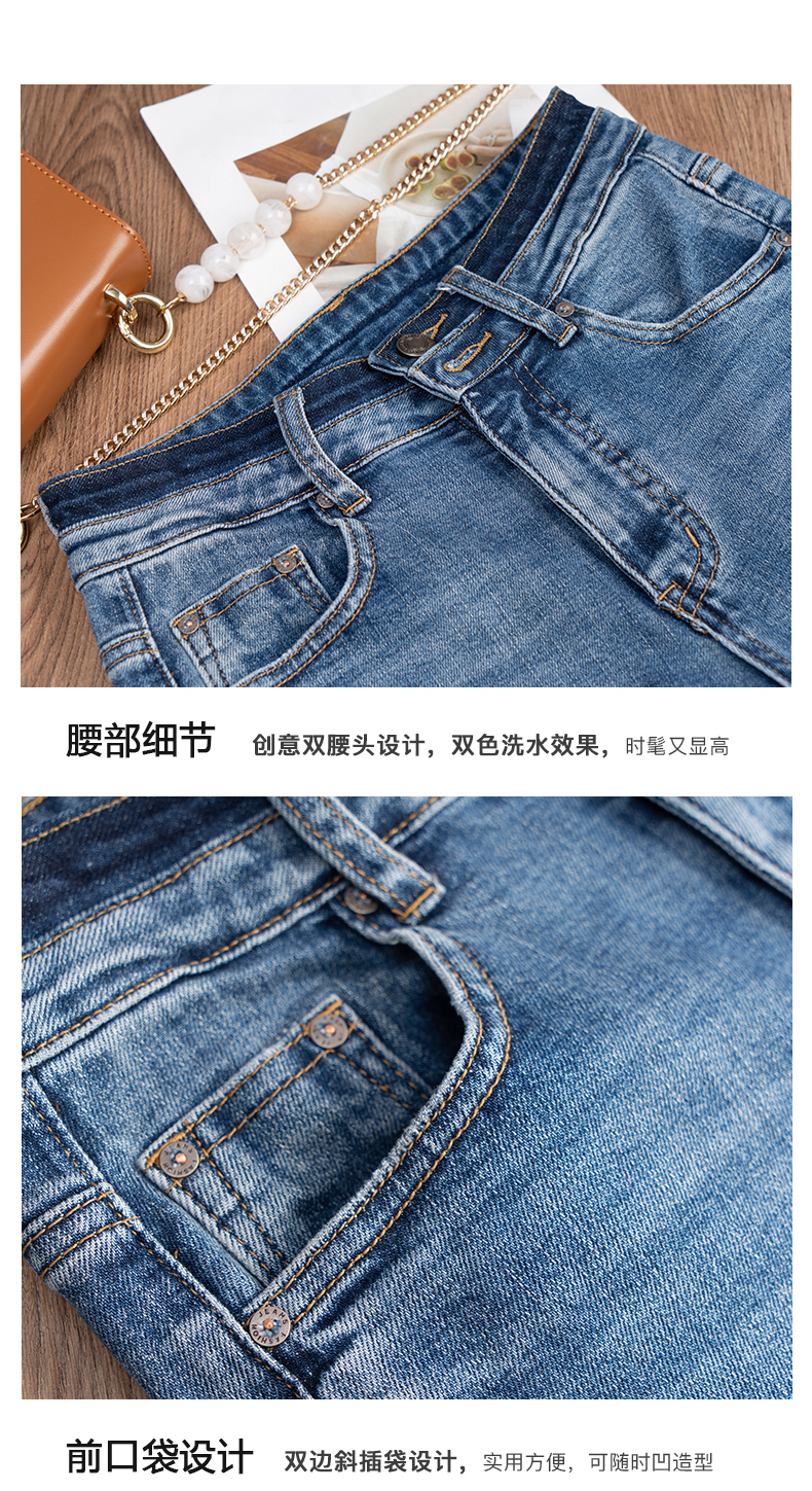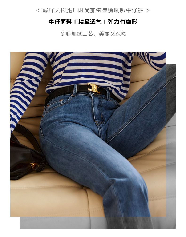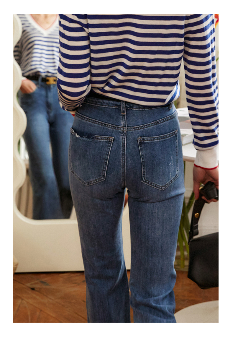 欧芮儿蓝色牛仔裤女春装新款2022高腰显瘦时尚直筒阔腿喇叭裤ins