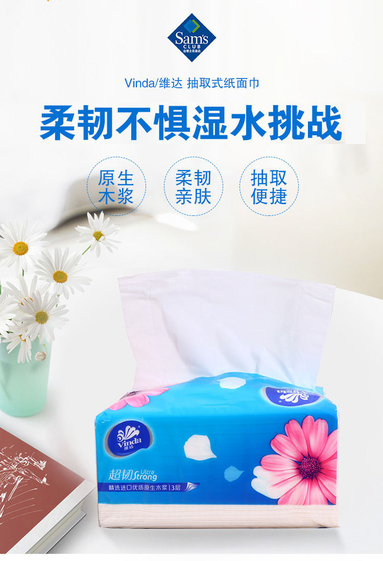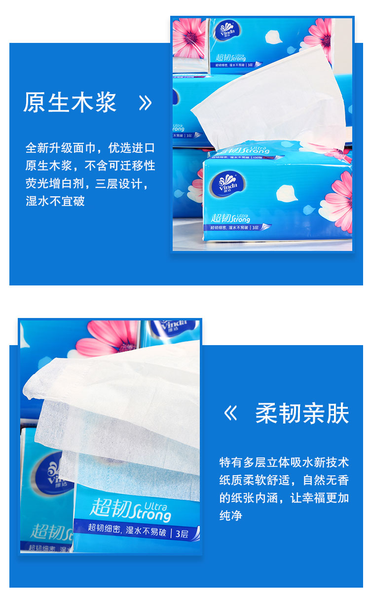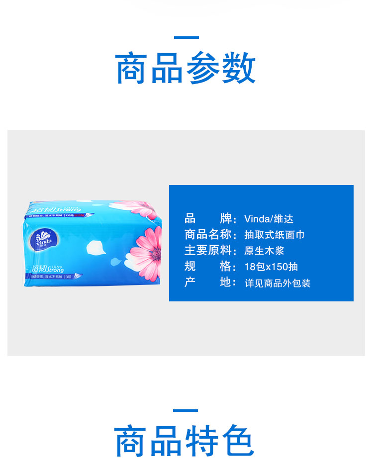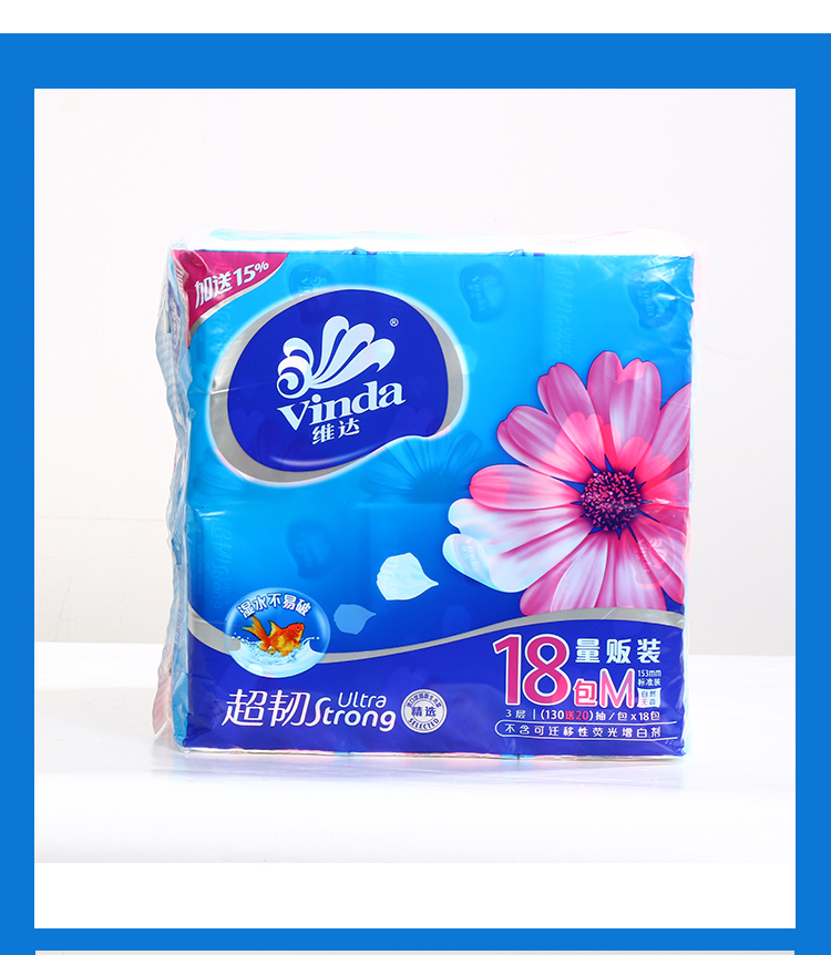 维达(Vinda)抽纸 超韧3层150抽*18包(中规格)擦手纸 抽取式纸面巾 软抽 卫生纸