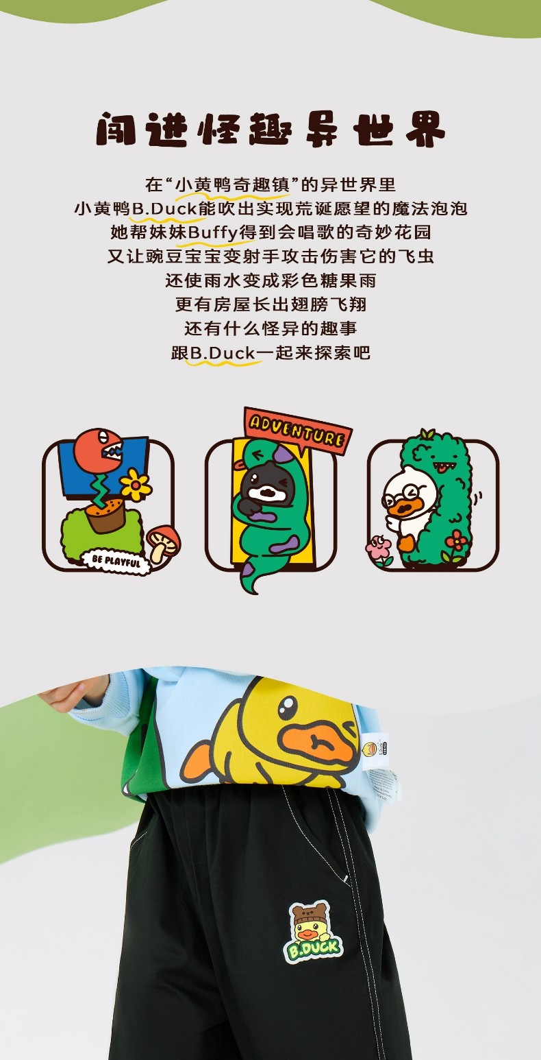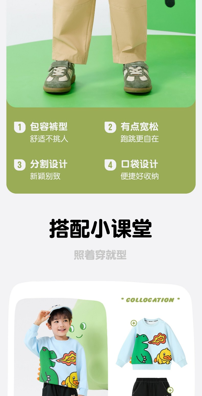 bduck小黄鸭童装春秋男童裤子儿童休闲裤男宝宝长裤百搭90-130 BF1657035