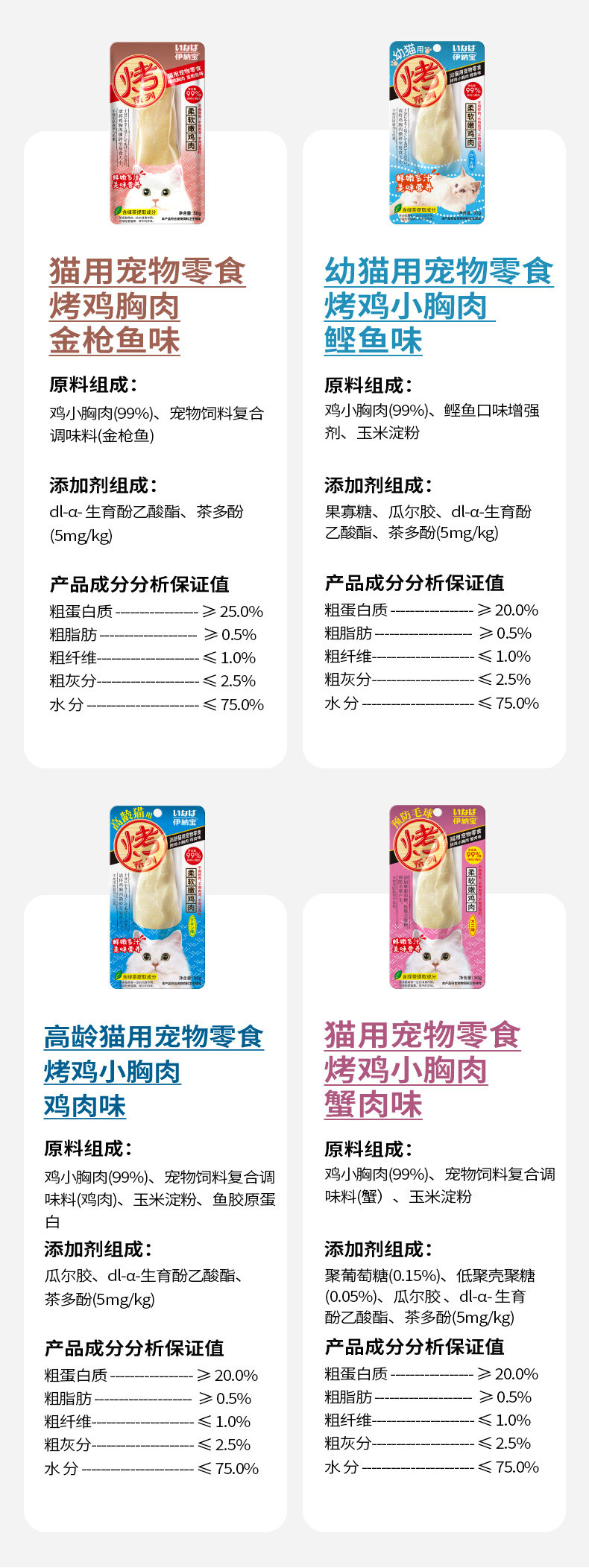 伊纳宝妙好烤鸡胸肉烤零食整箱48支柔嫩美味