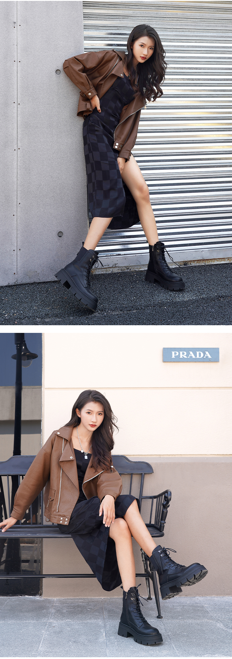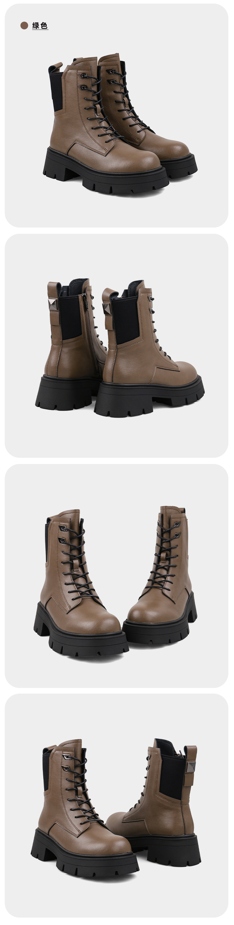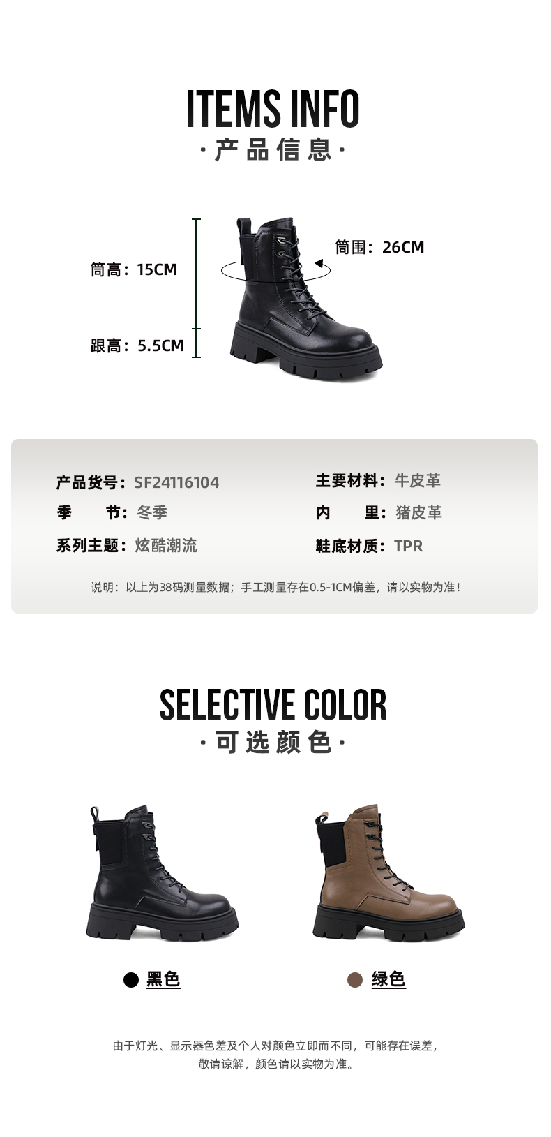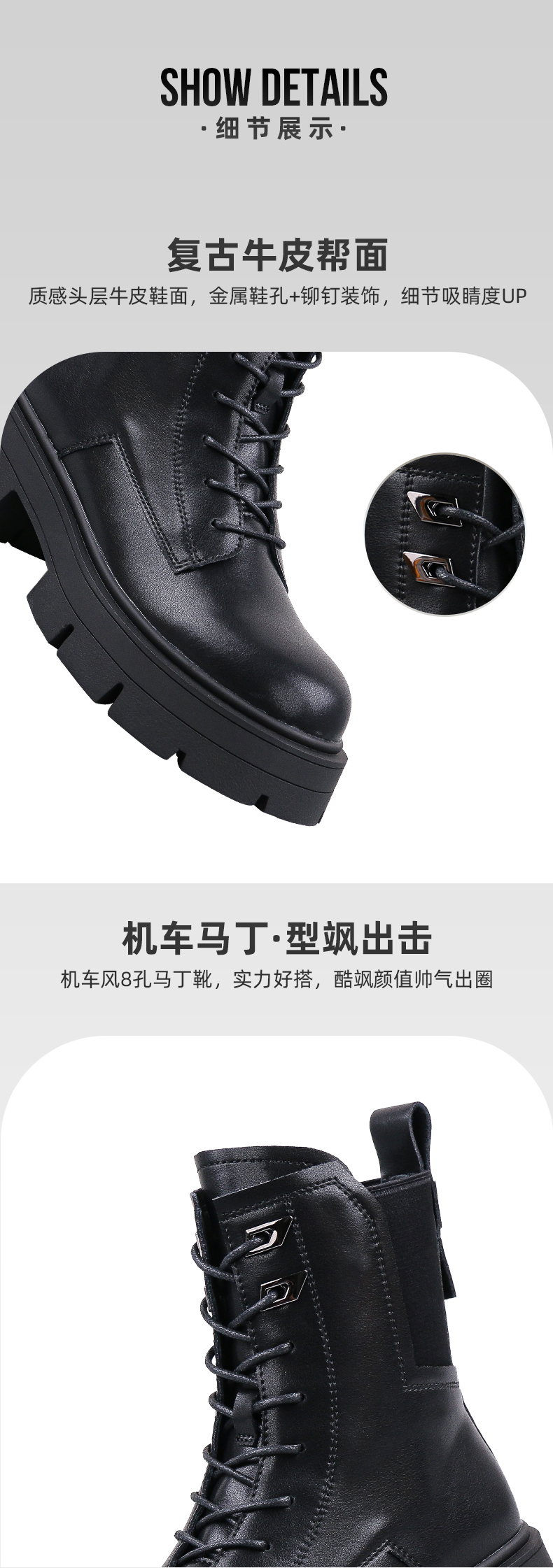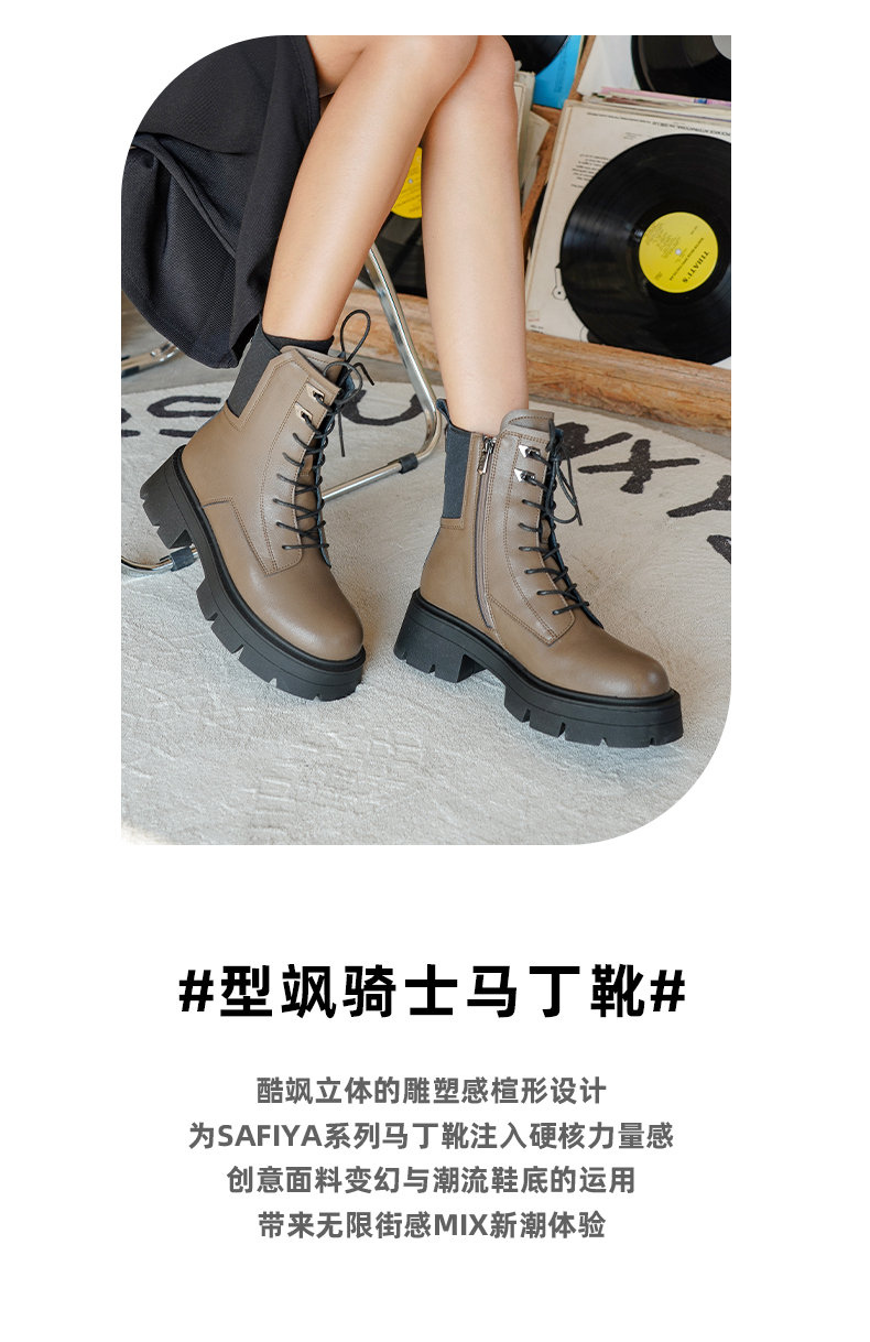 【春节不打烊】Safiya/索菲娅 商场同款2022年冬季新款英伦风机车拼接厚底系带马丁靴女 SF24116104