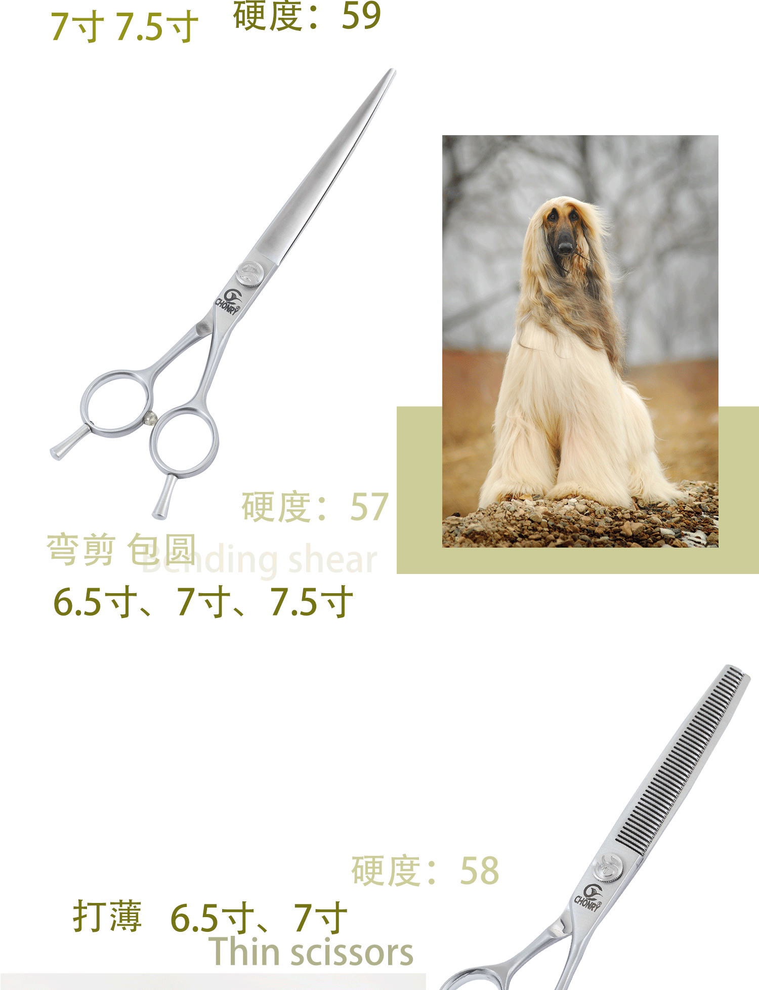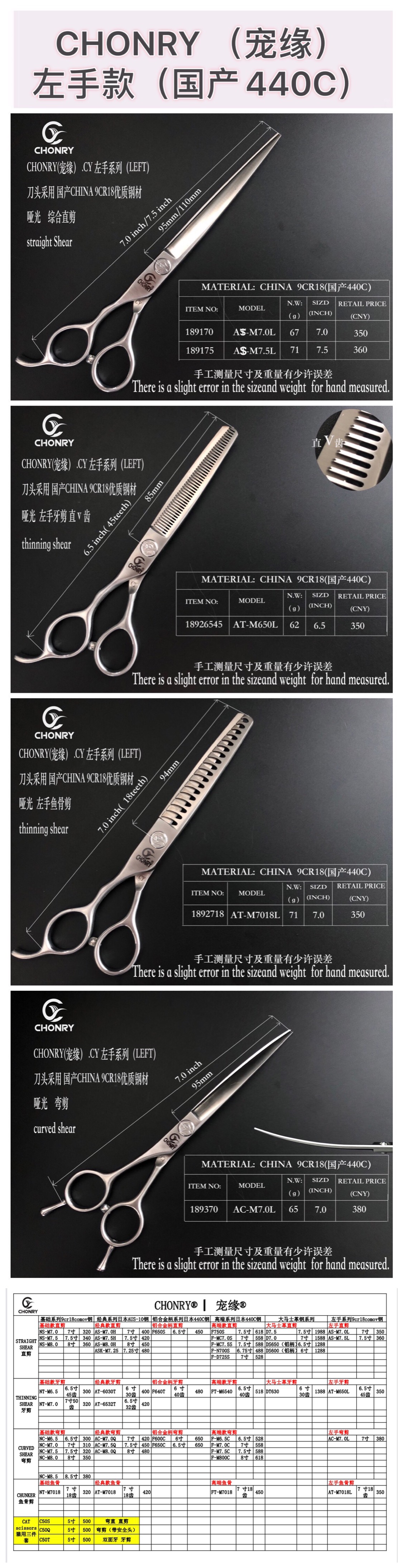 宠物剪【左手款】宠缘chonry专业宠物美容剪刀 直剪弯剪牙剪鱼骨剪(国产440C钢)