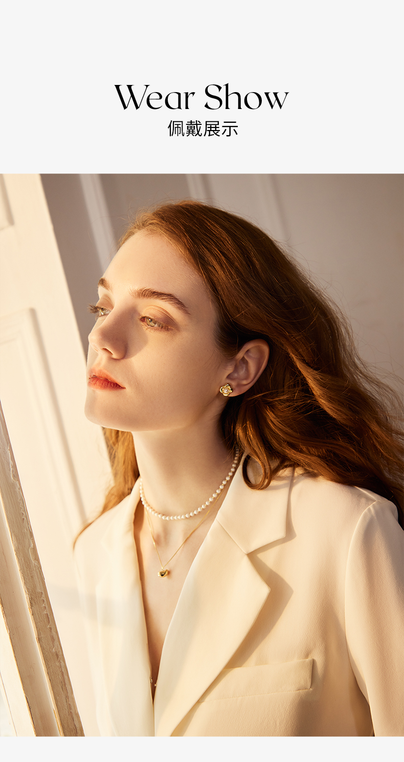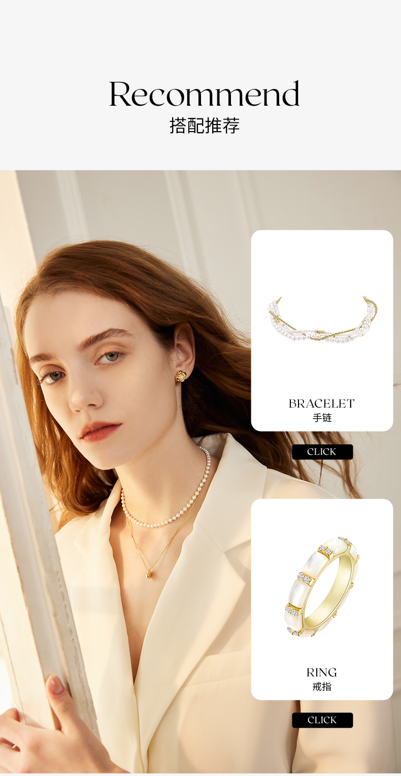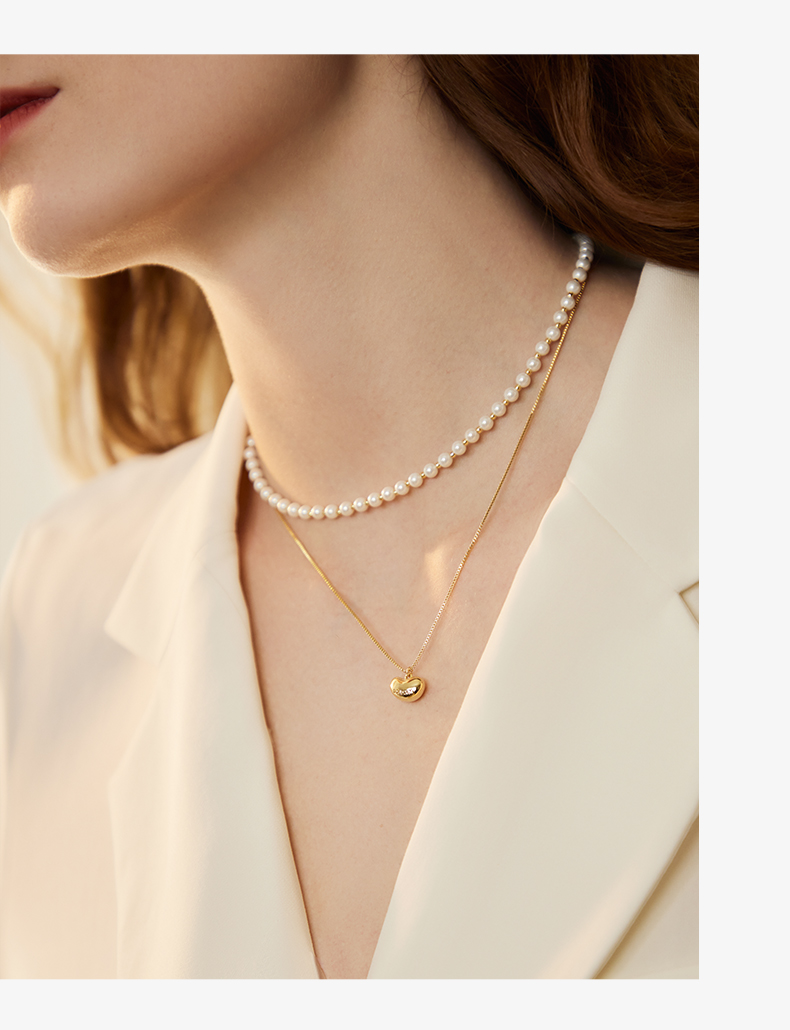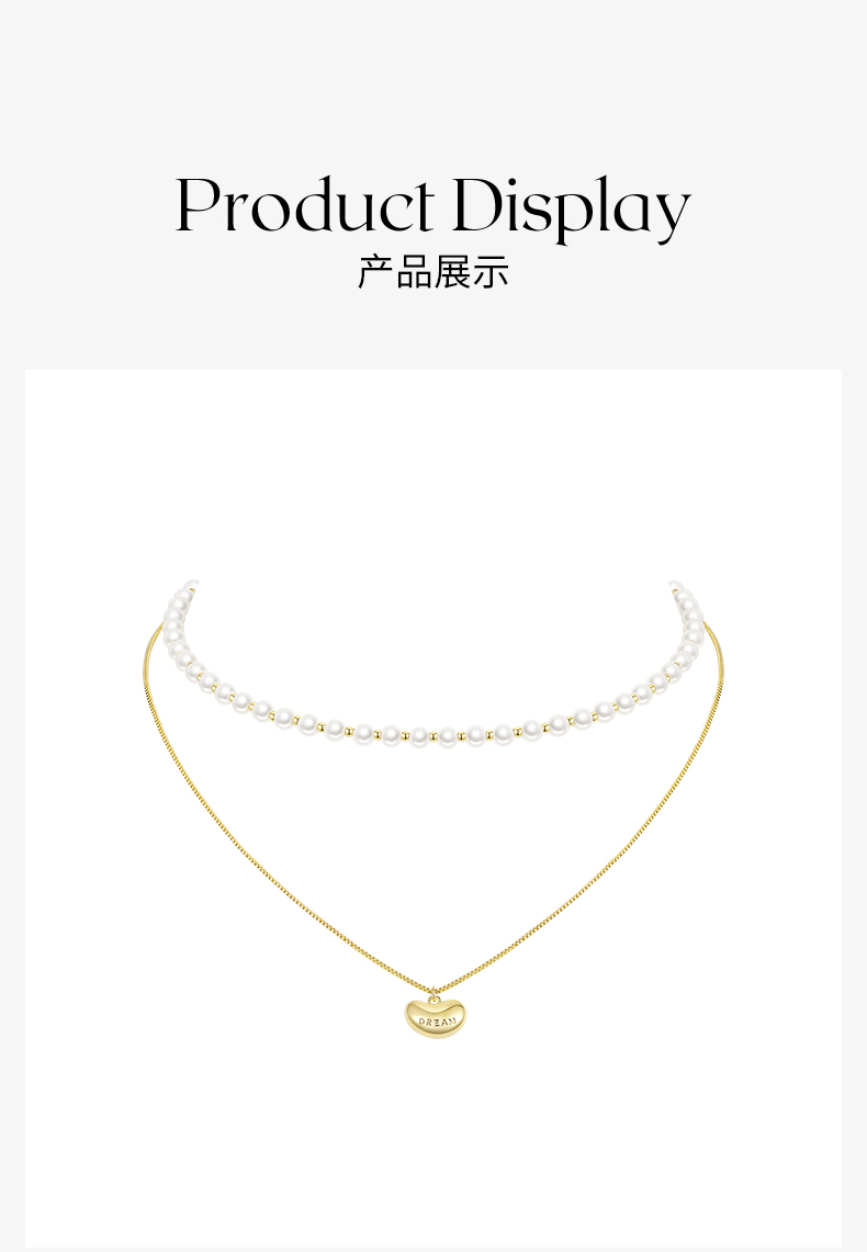 ZEGL金色小豆豆人造珍珠项链女轻奢小众高级感法式复古锁骨链配饰