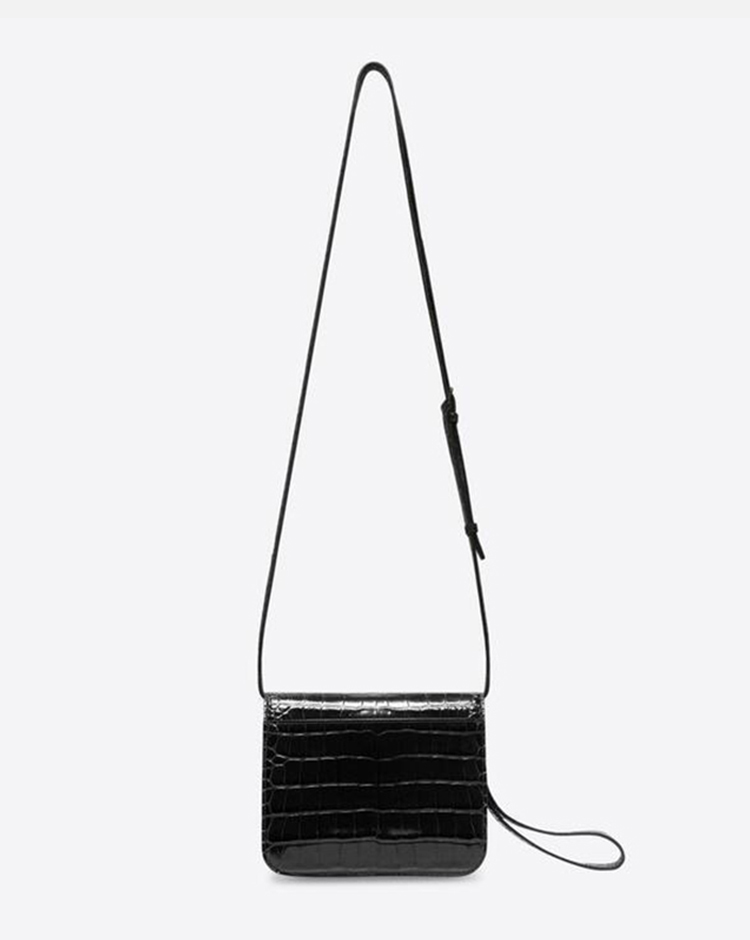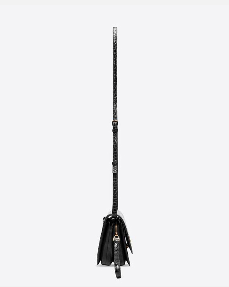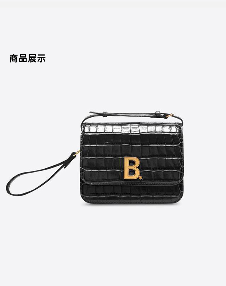 BALENCIAGA 巴黎世家 女士皮革鳄鱼压纹l金属徽标标牌迷你提挎包 黑色 618156 1LR7M 1000