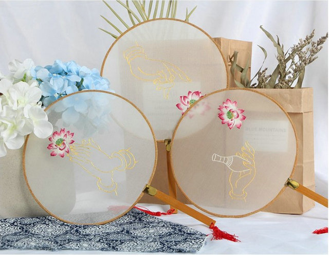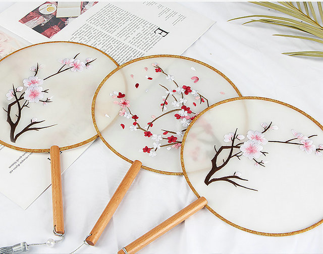 凯崎湘绣 双面绣团扇diy材料包 手工初学刺绣 大学生礼物 手工汉服古风扇子 梅花 莲花 绣品 梅花 材料包+绣