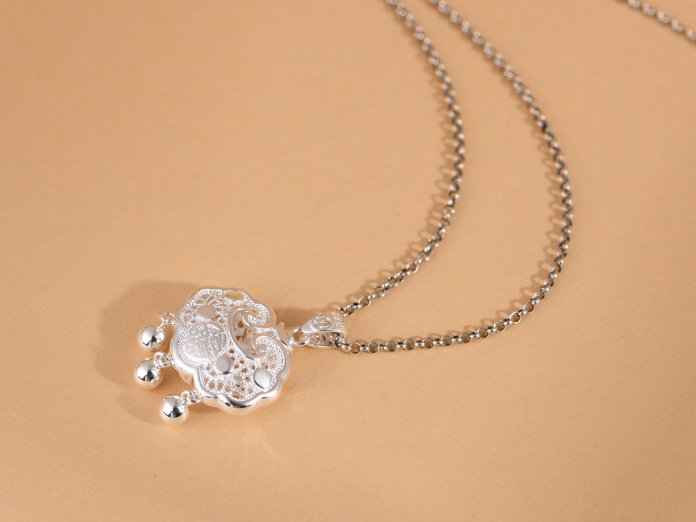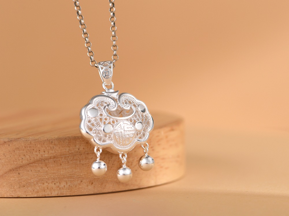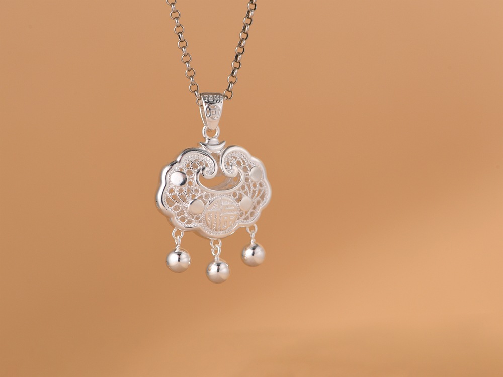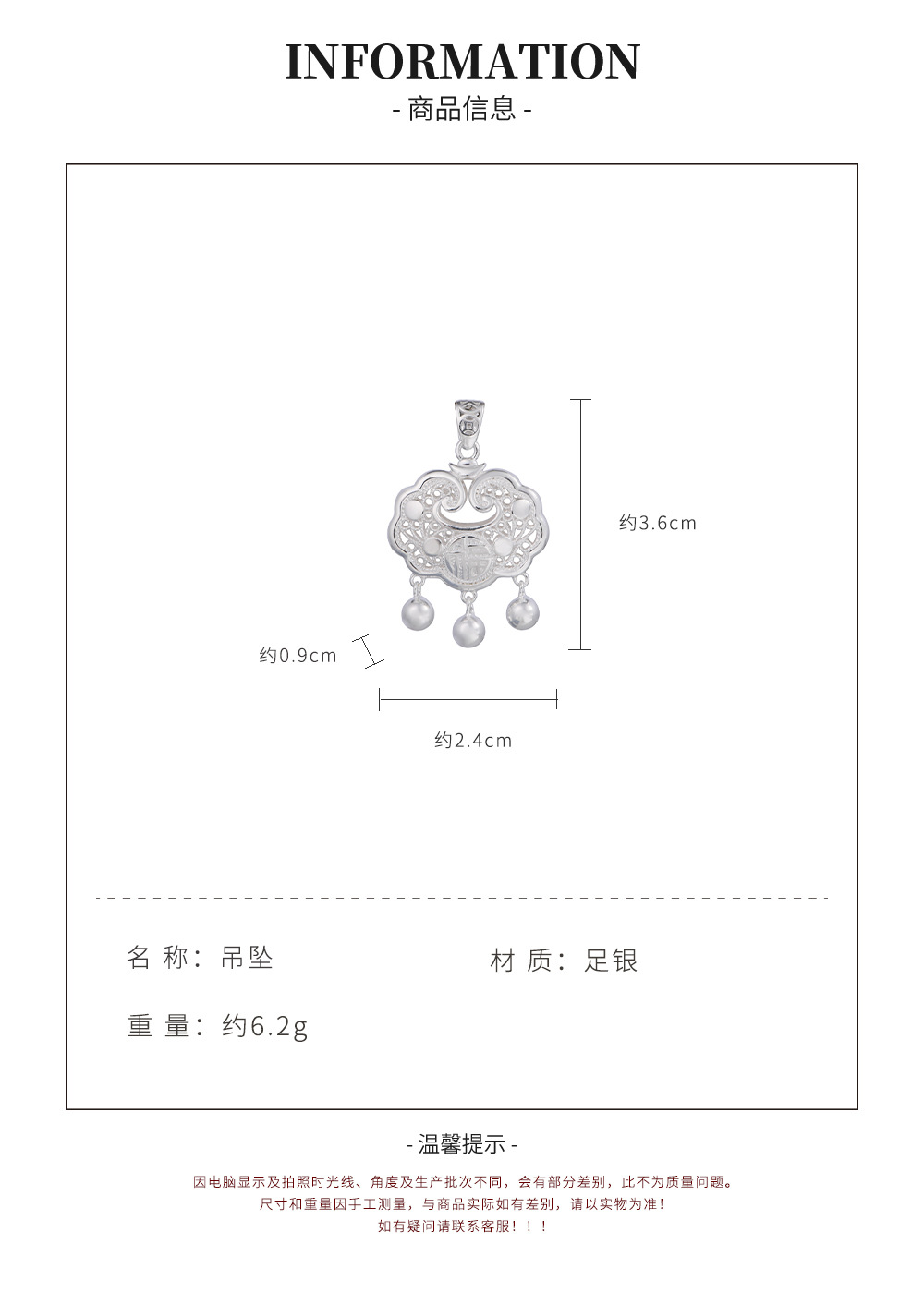 【锁清欢】足银银珠流苏福字如意银锁吊坠【SCH-SY17622】