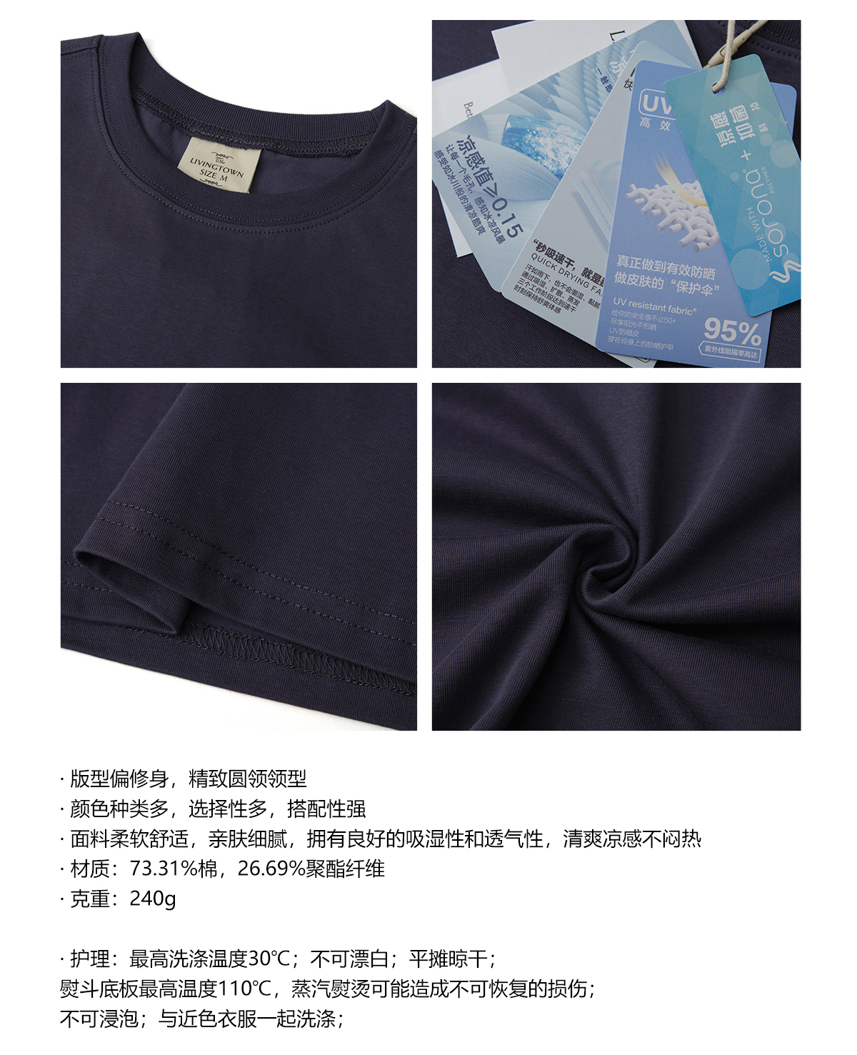 LIVINGTOWN/LT纯色修身凉感短袖