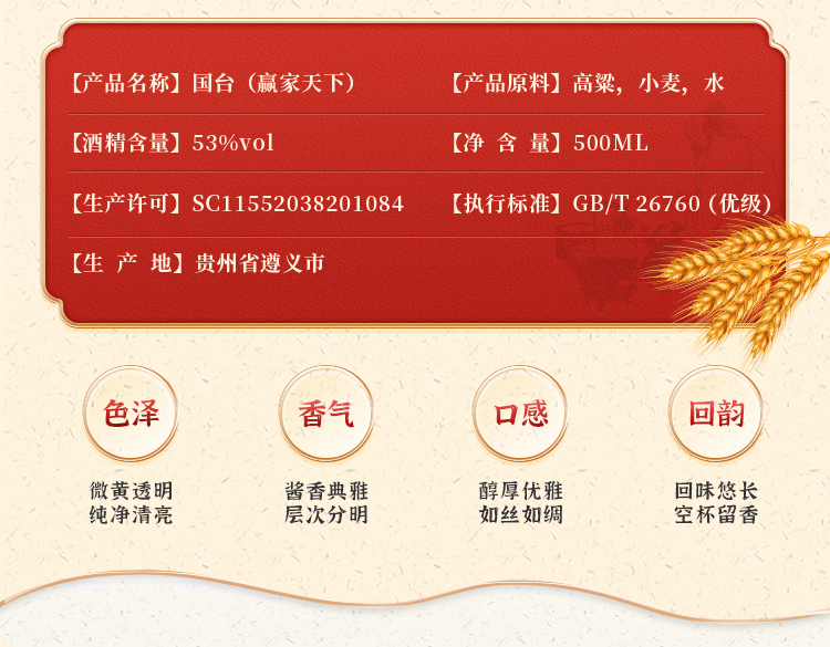 贵州国台酒 酱香型白酒53度500ml 国台赢家天下