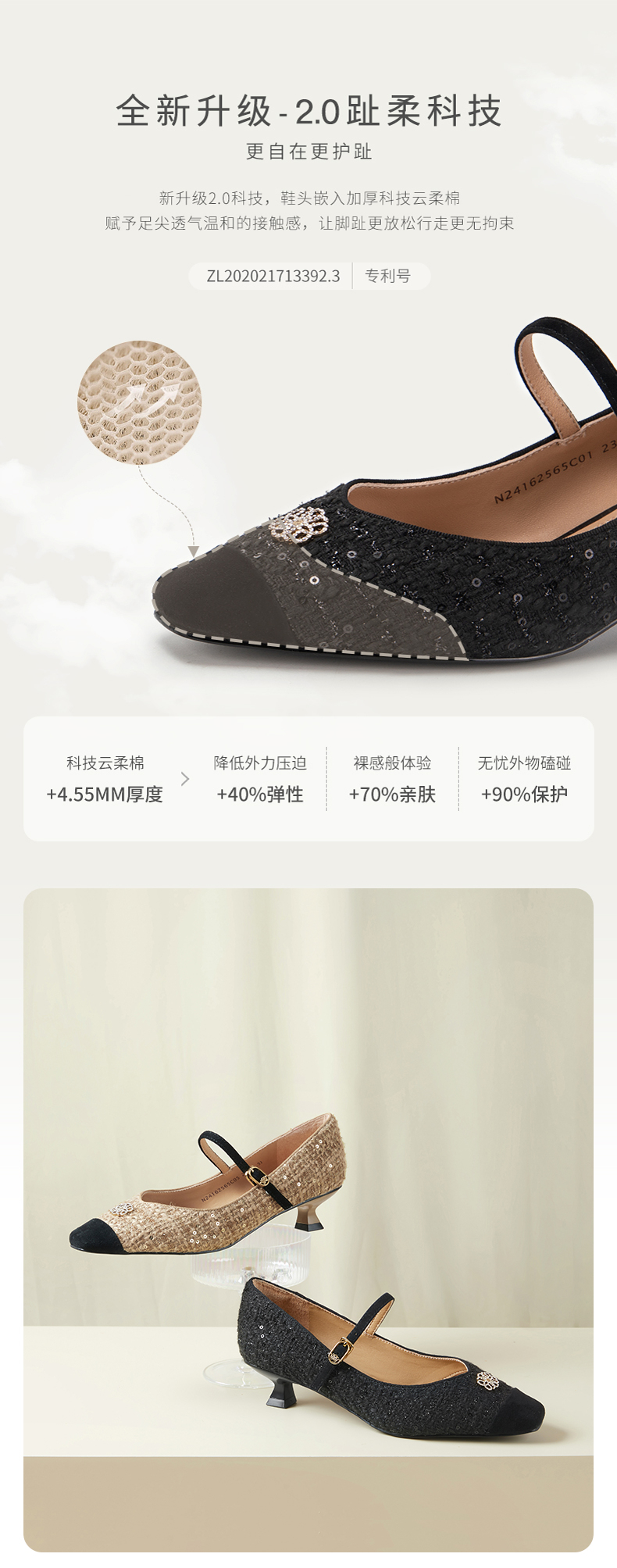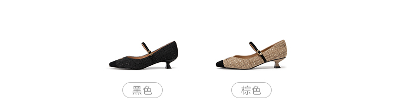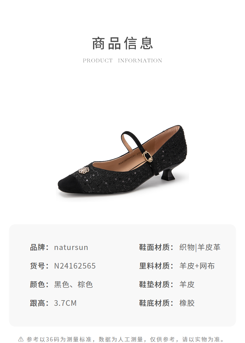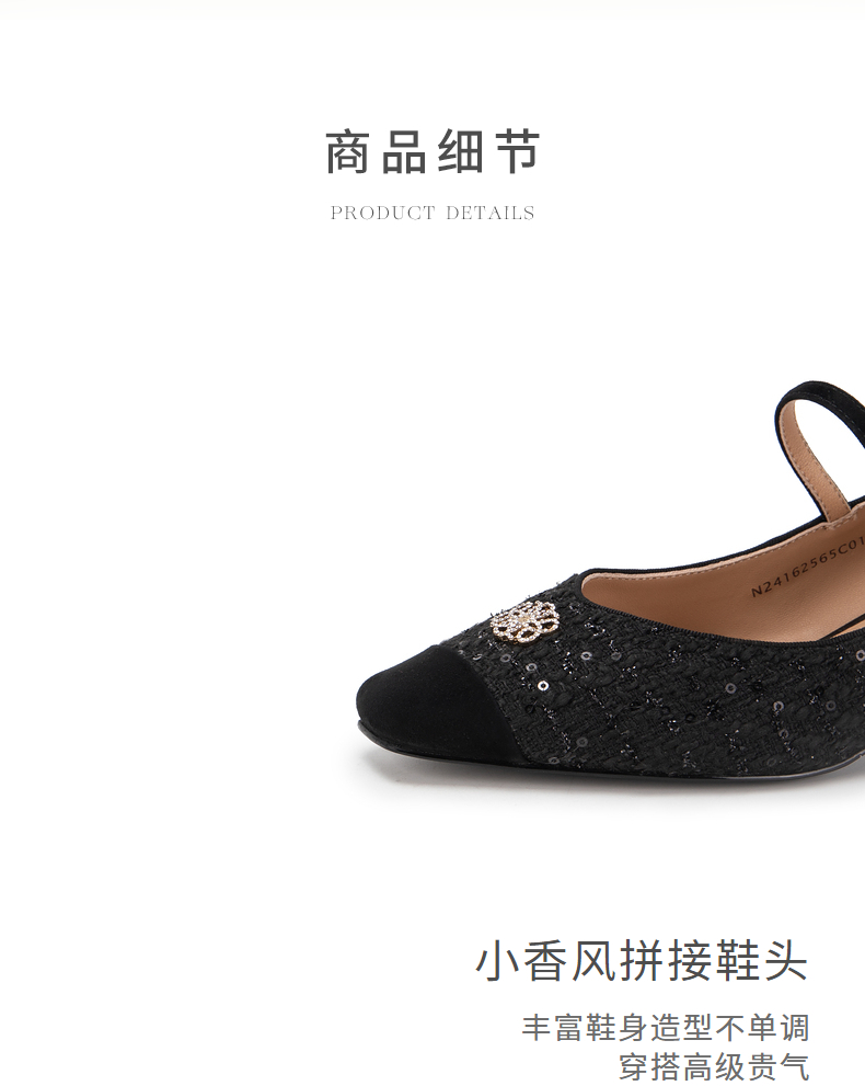 natursun法式玛丽珍鞋女年秋季一字带小香风黑色尖头单鞋N24162565