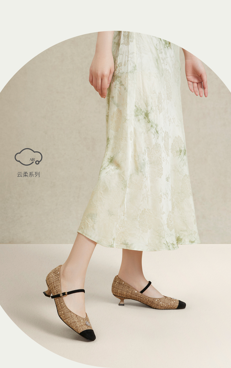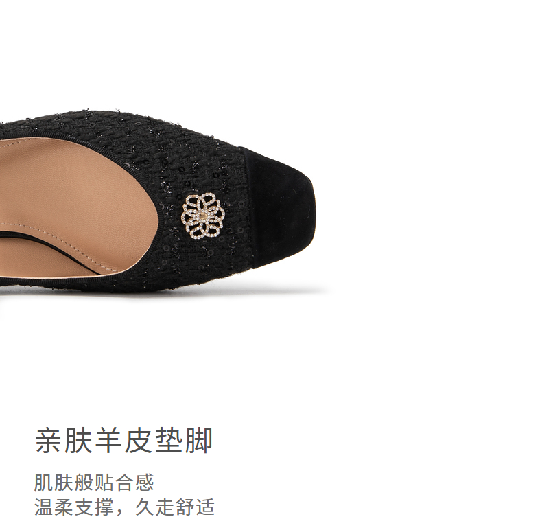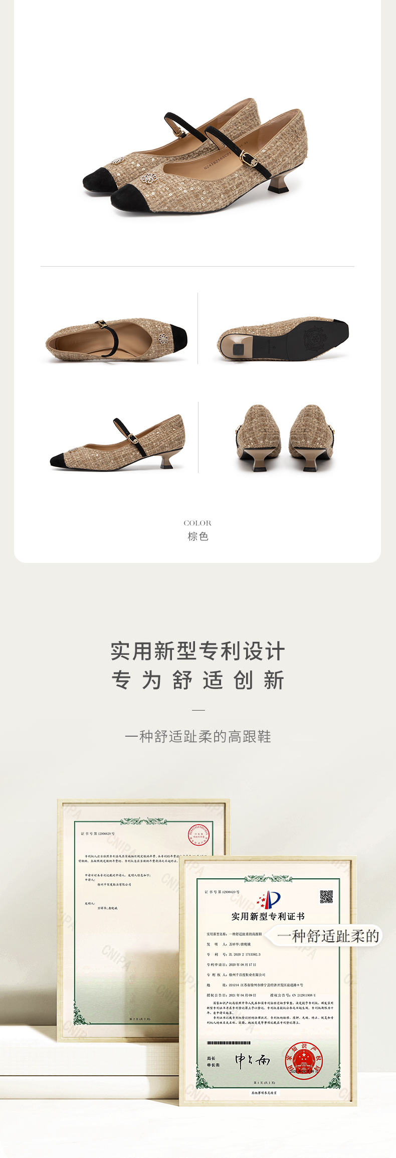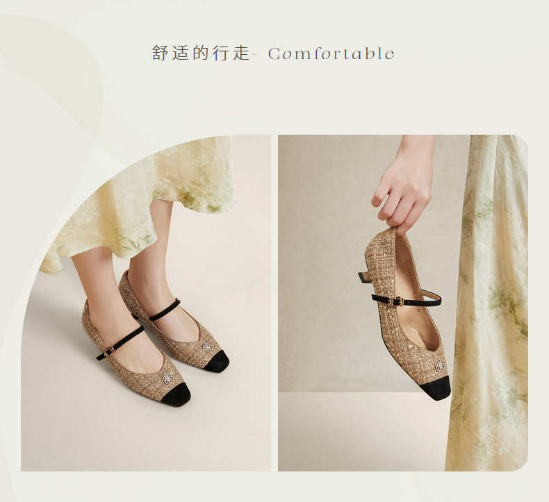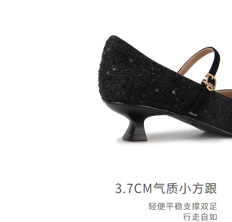 伊伴秋季法式优雅稳固方根Q弹厚乳胶垫脚时装单鞋B25420702