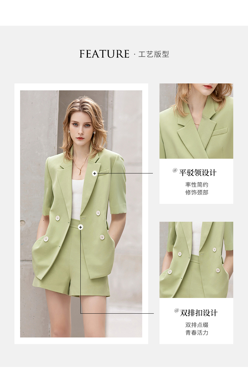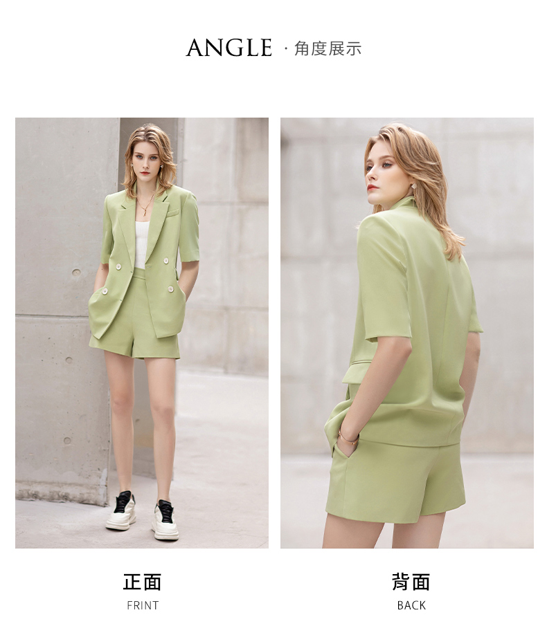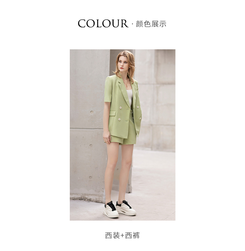 IWY/短袖西装短裤套装牛油果绿色时尚气质正装女夏季高级感工作服C12221+P52106