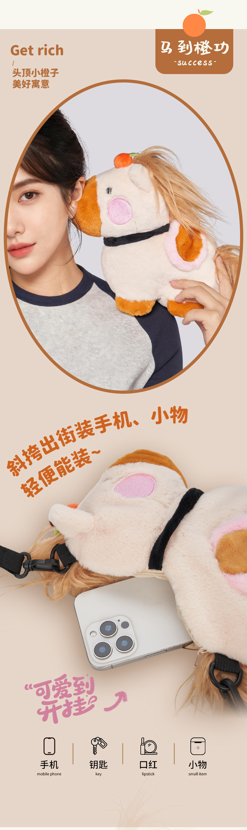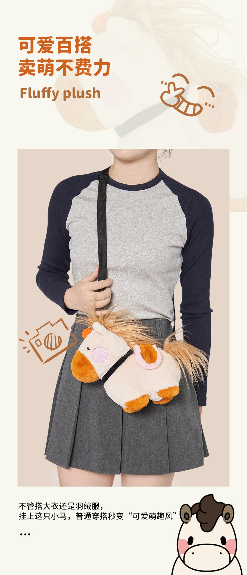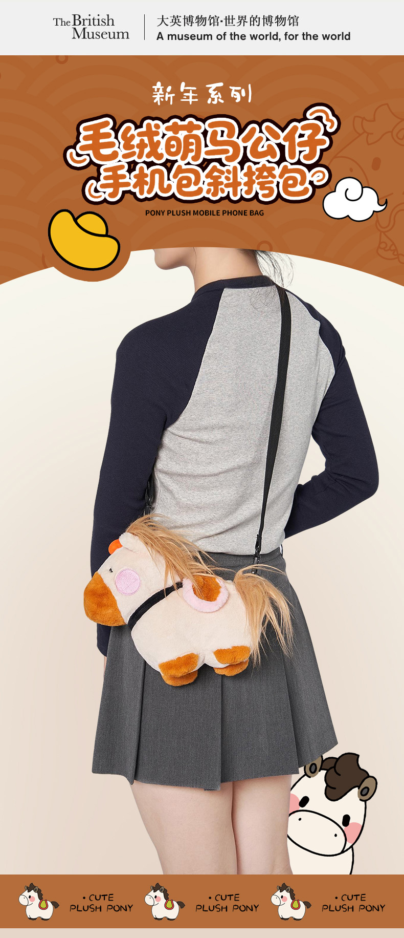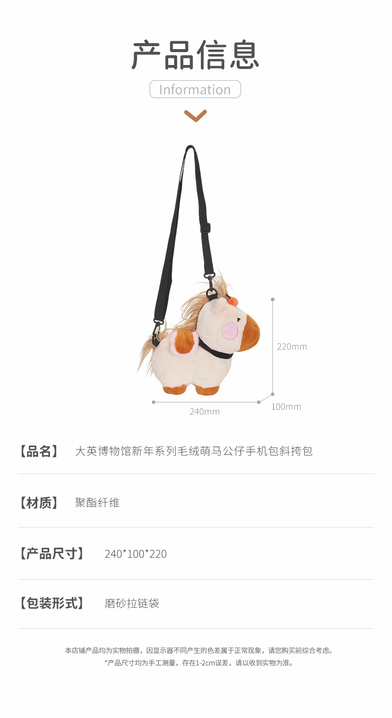 大英博物馆 新年系列 毛绒萌马公仔 手机包 斜挎包