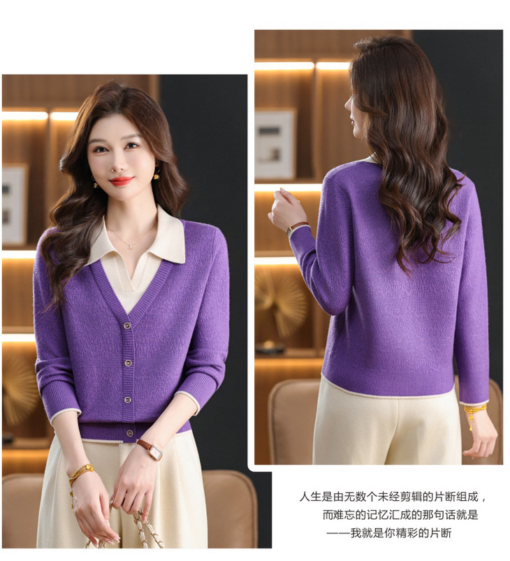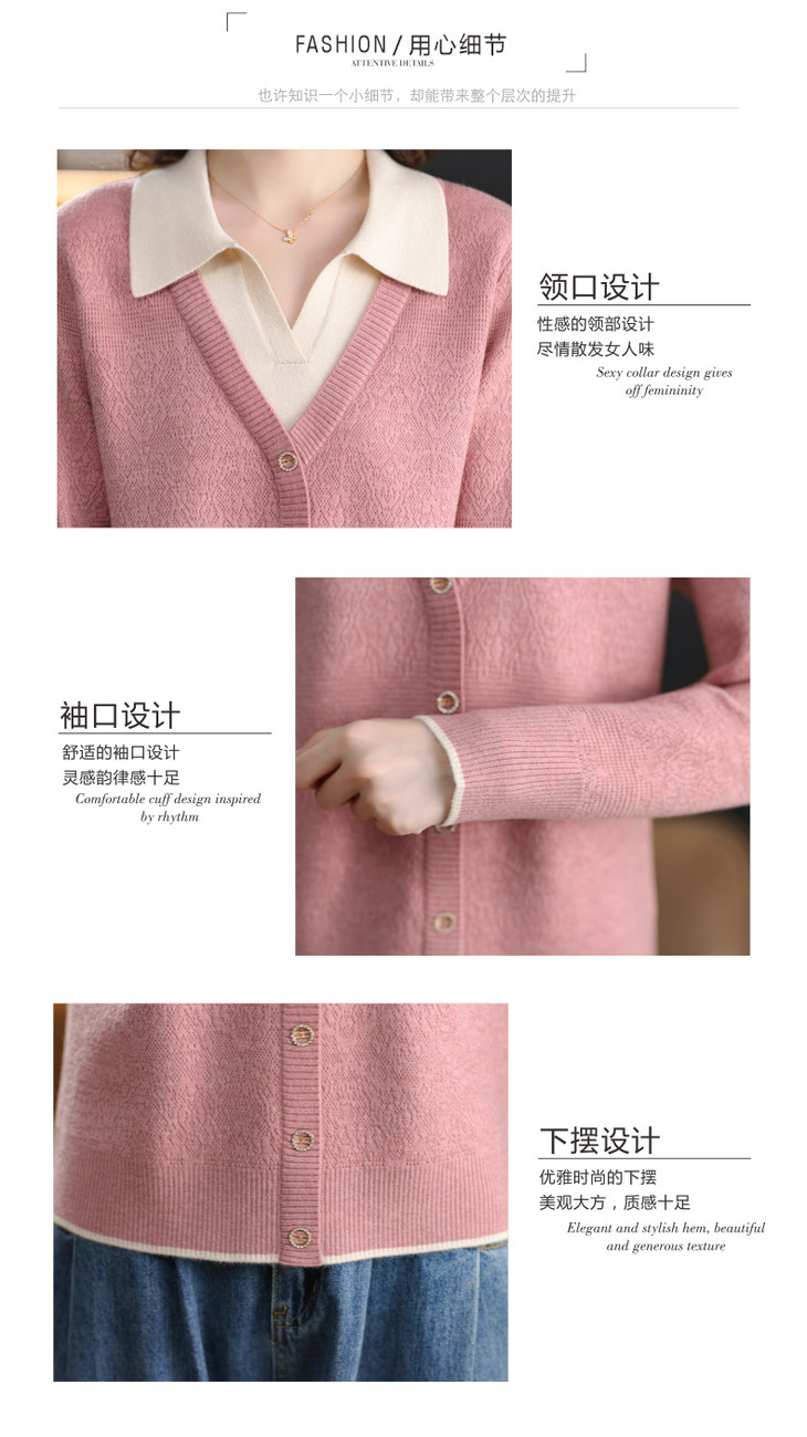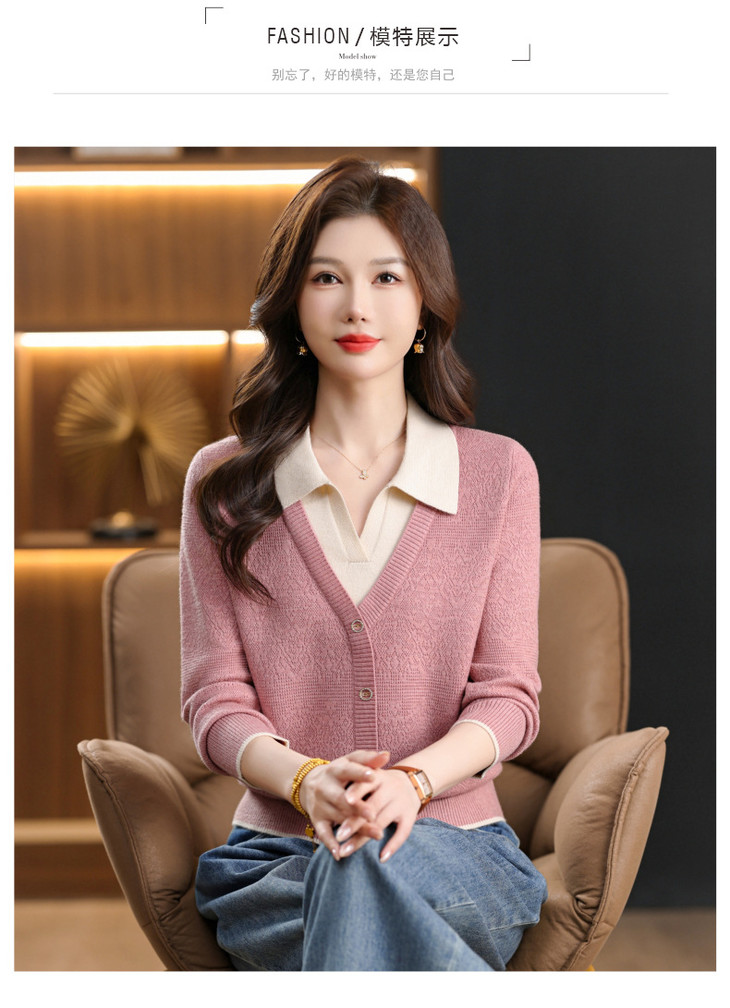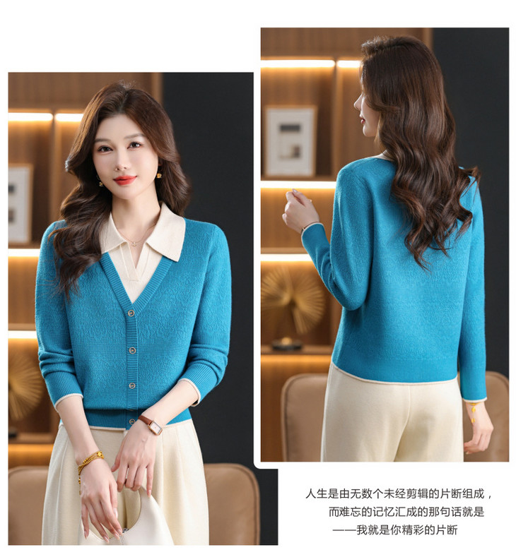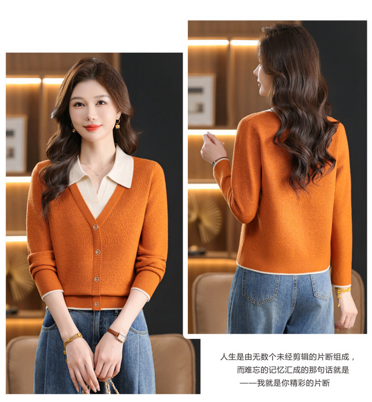 翻领宽松显瘦长袖,内搭假两件针织衫CC-103-97871