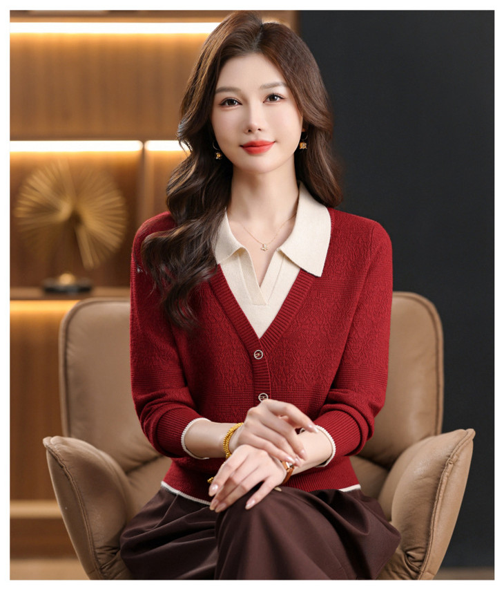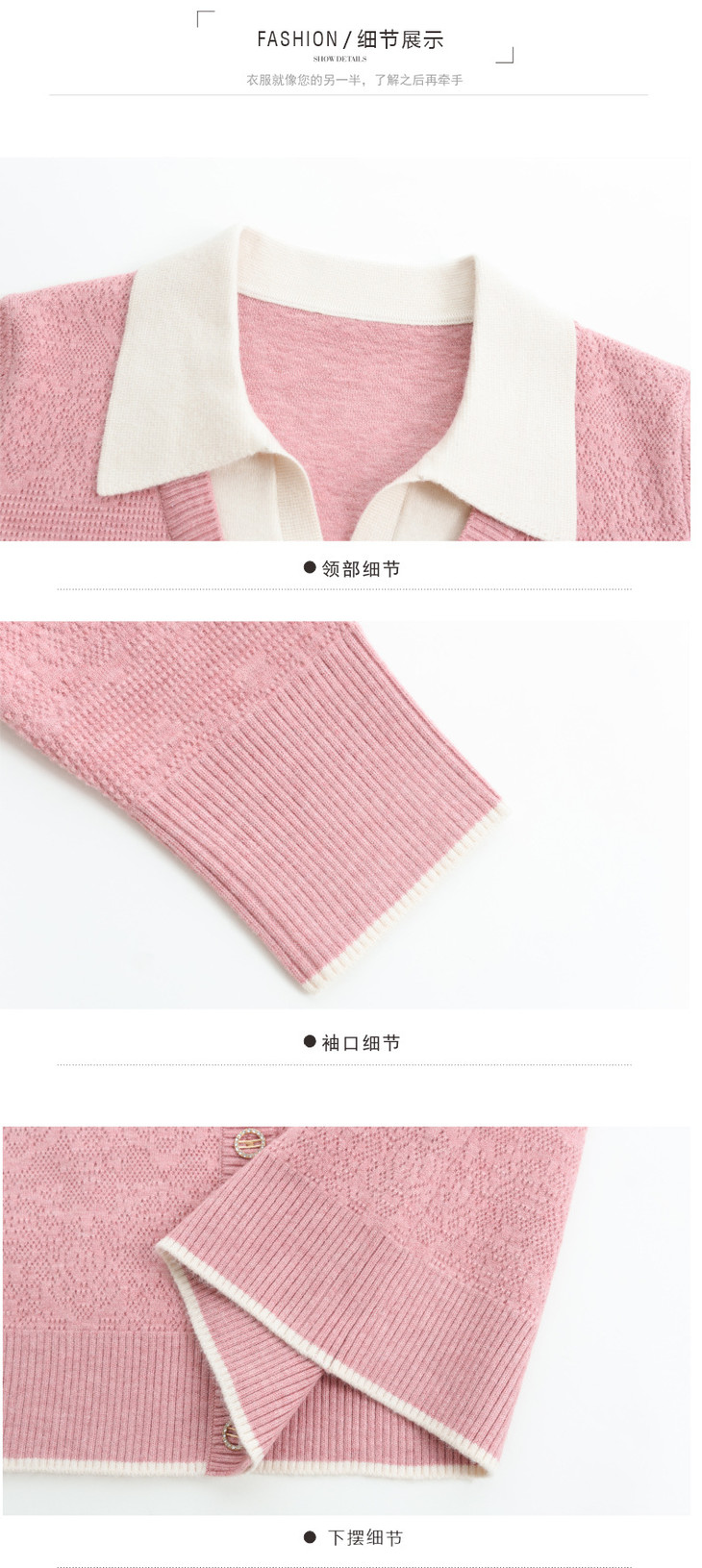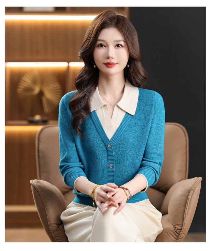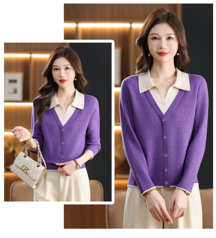 翻领宽松显瘦长袖,内搭假两件针织衫CC-103-97871