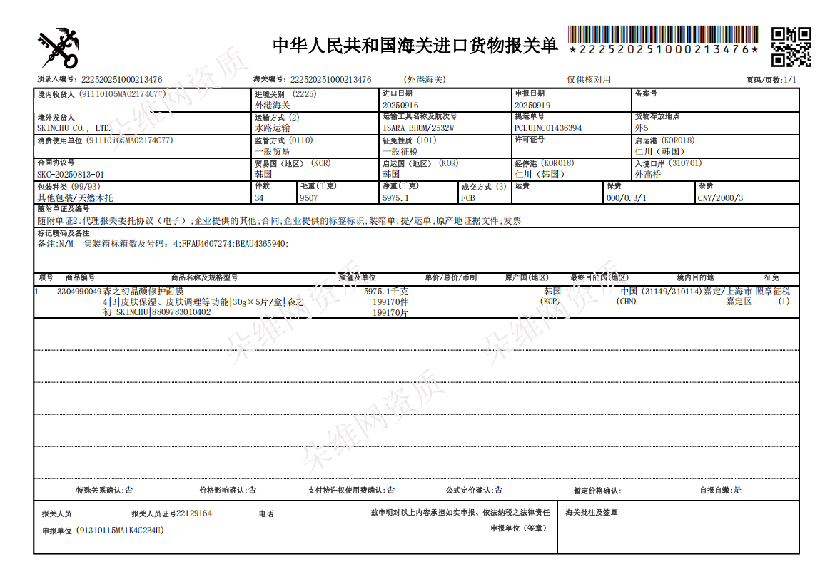 森之初韩国SKINCHU森之初面膜水光补水5片/盒
