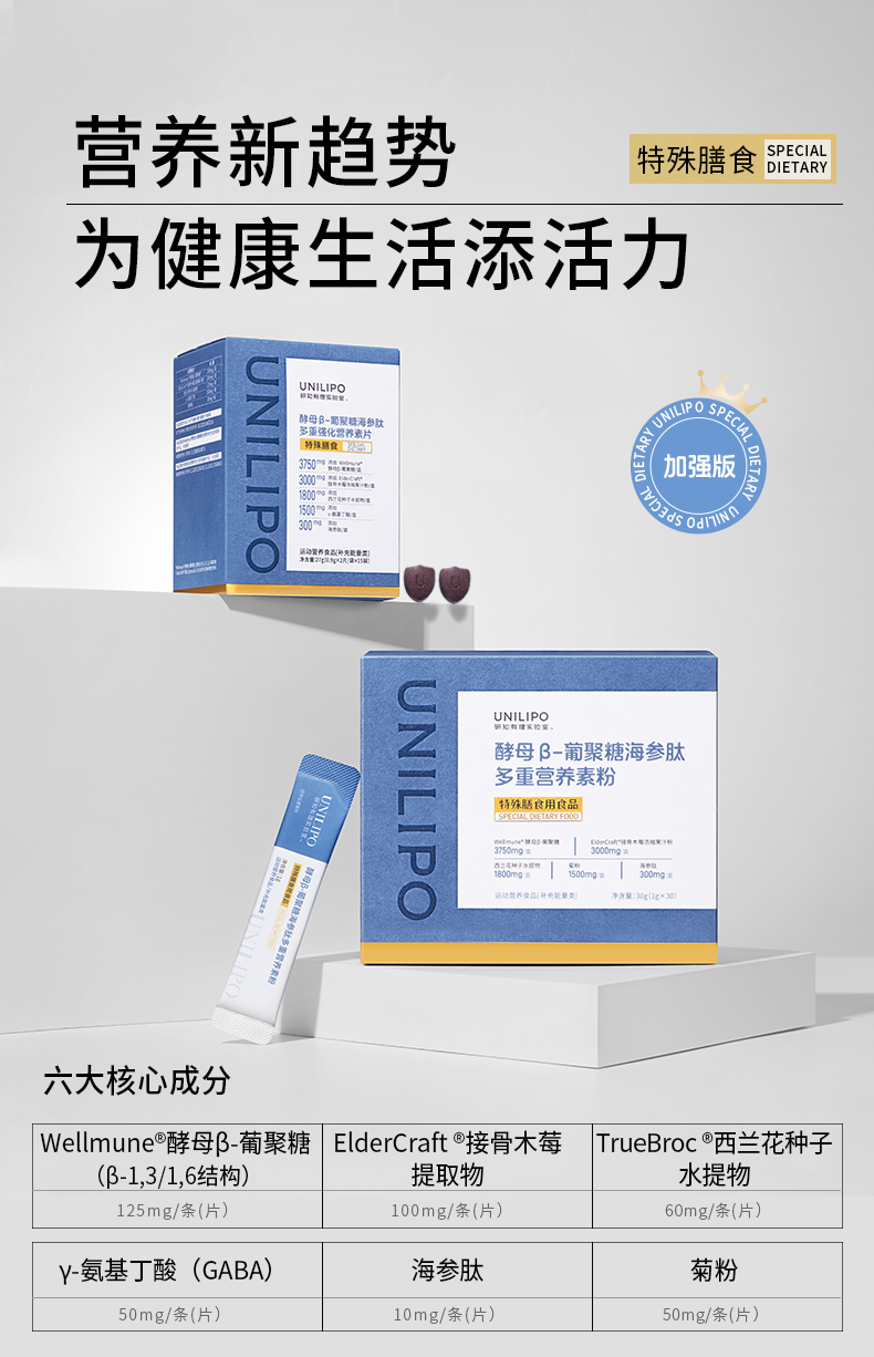 「特膳版酵母β葡聚糖」UNILIPO研知有理 酵母β葡聚糖海参萝卜硫苷营养素粉/片