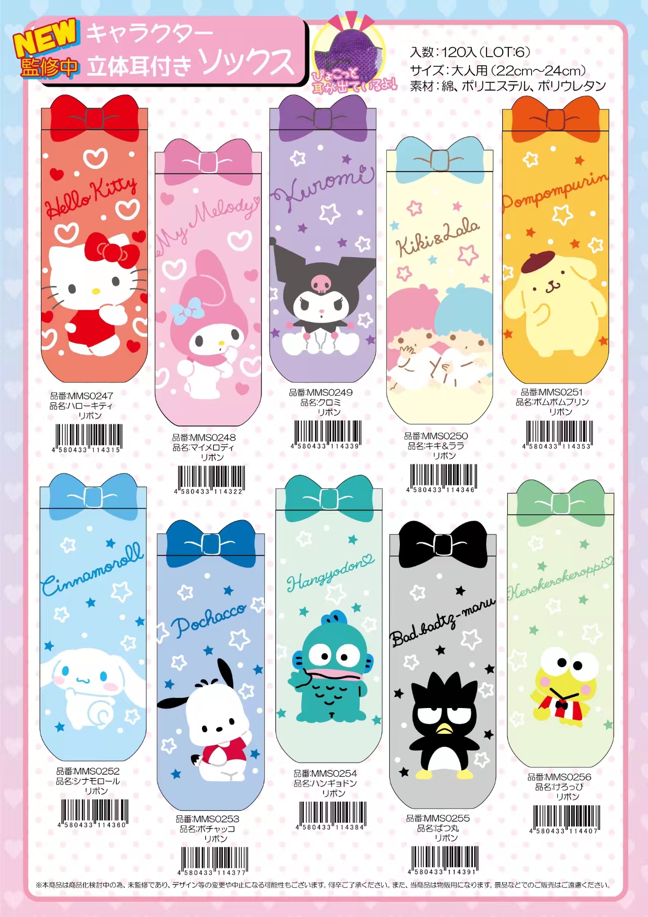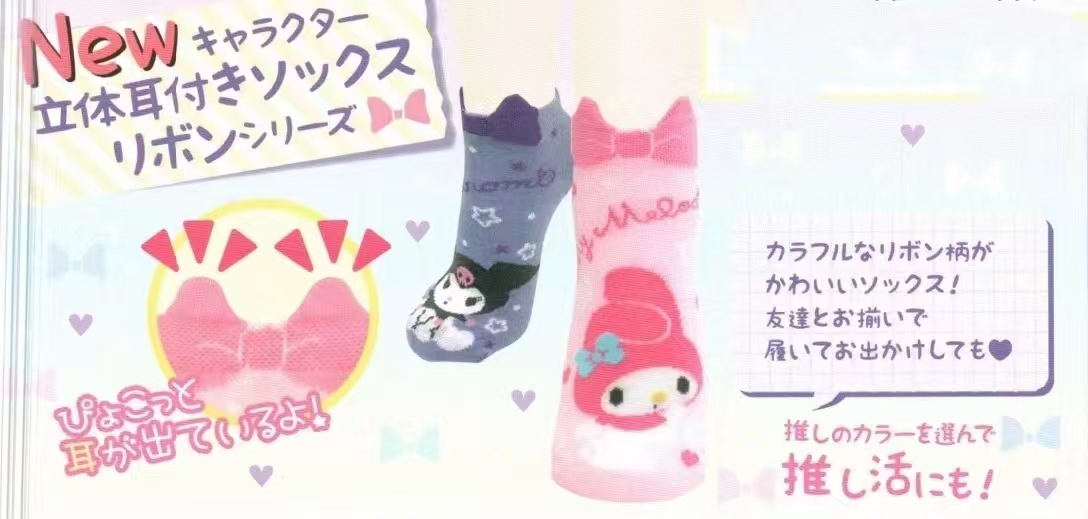 日本三丽鸥Sanrio新款船袜库洛米美乐蒂玉桂狗丑鱼