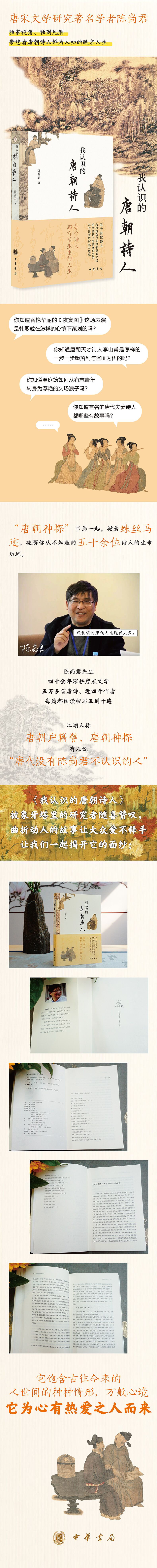 四、编辑推荐 ★有人说,在唐代,没有陈尚君不认识的人。陈尚君先生说:“我认识的唐代人比现代人多。” 一个把五万多首唐诗每首都读过若干遍的学者,带您看人,读诗,观唐朝。此书为心有热爱之人而来。 ★作者深耕唐宋文学四十余年,五万余首唐诗阅读若干遍,此书聚焦五十余位诗人,在文献繁复甄别中,很好还原诗人真实生活的种种样貌。 ★本书知人论世,是了解唐代文学不可或缺之作。作者对诗人经历、情感细节叙述方面,都是从可靠文献的反覆比读中提出独到的见解,可谓唐代传记文学巅峰之作。 ★作者打破文学史中对诗人或概括或片段的描述,立体观照诗人的生命历程、生存状况——所处阶层、家庭出生、成长经历、读书进学、科考入仕、仕途从宦、来往交游,经济来源、安定与动荡,等等,更见出唐代社会、文化的情状。 ★作者行文饱含深情,以心遥应古人,还原诗人真实的生命历程和独特的性格禀赋。让诗人带着他们各自的春风得意、失意困顿、悲欢离合、生离死别,从古旧的纸张中,从历史的云烟中走来。