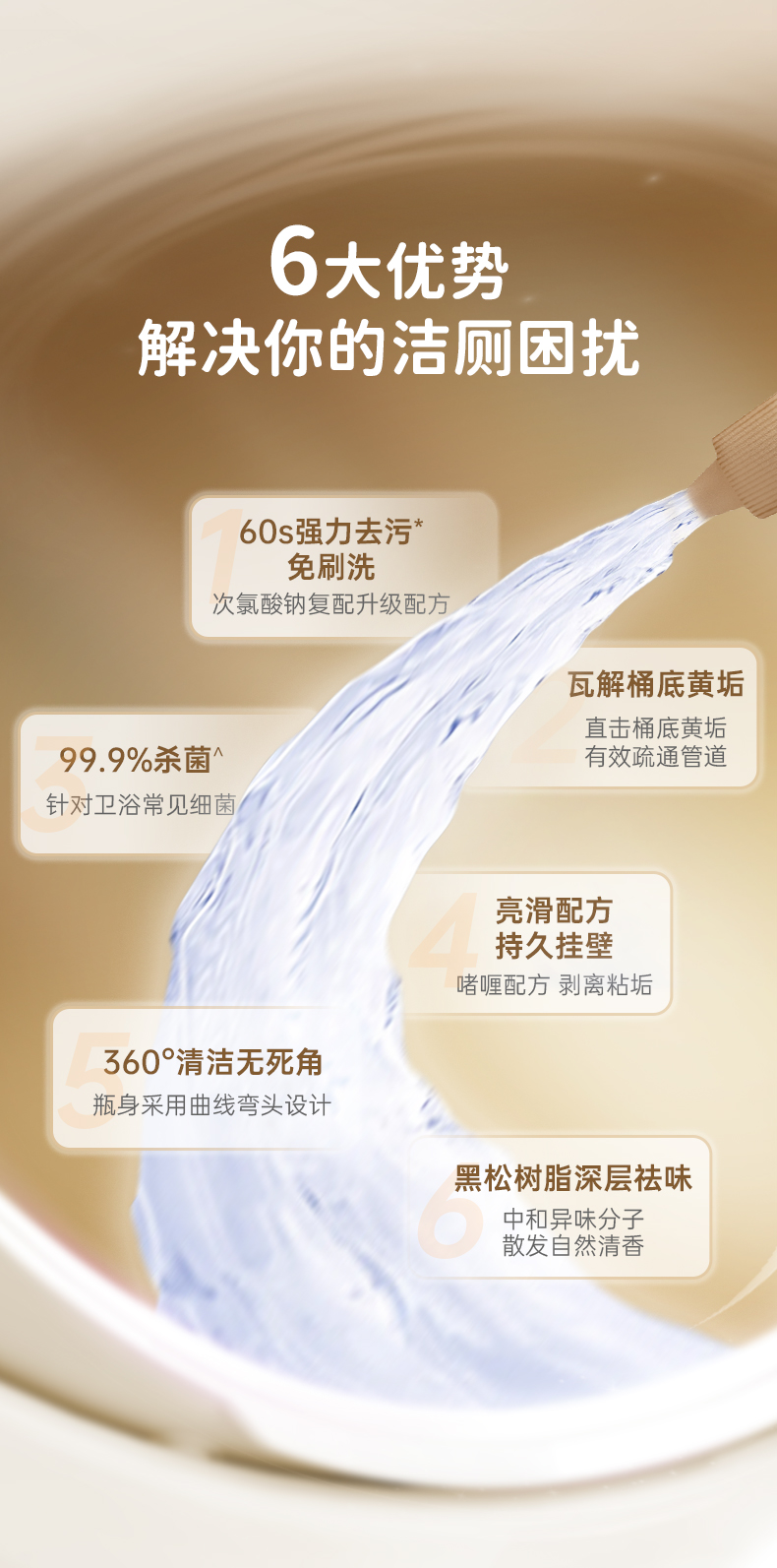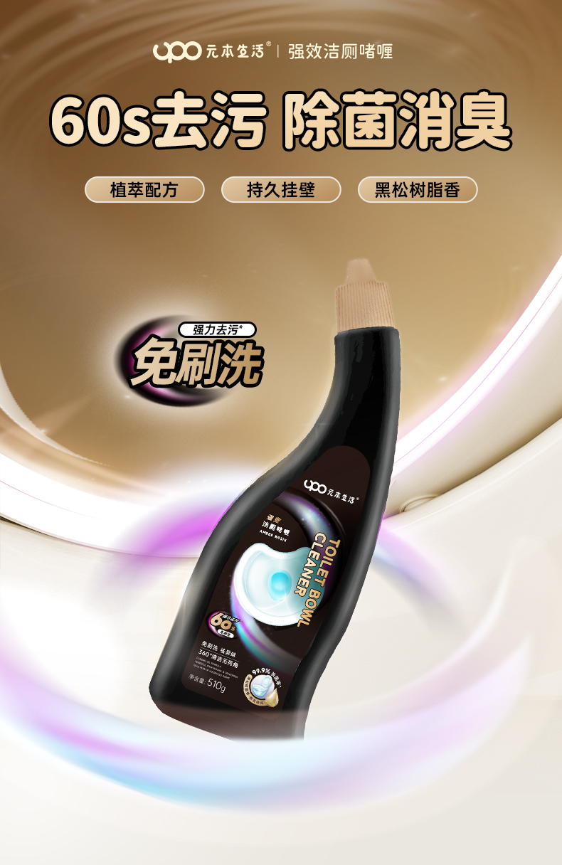 【马桶免刷洗】元本生活 强效洁厕啫喱 510g/瓶*3瓶 强力去污,除菌消臭;持久挂壁,不伤釉面