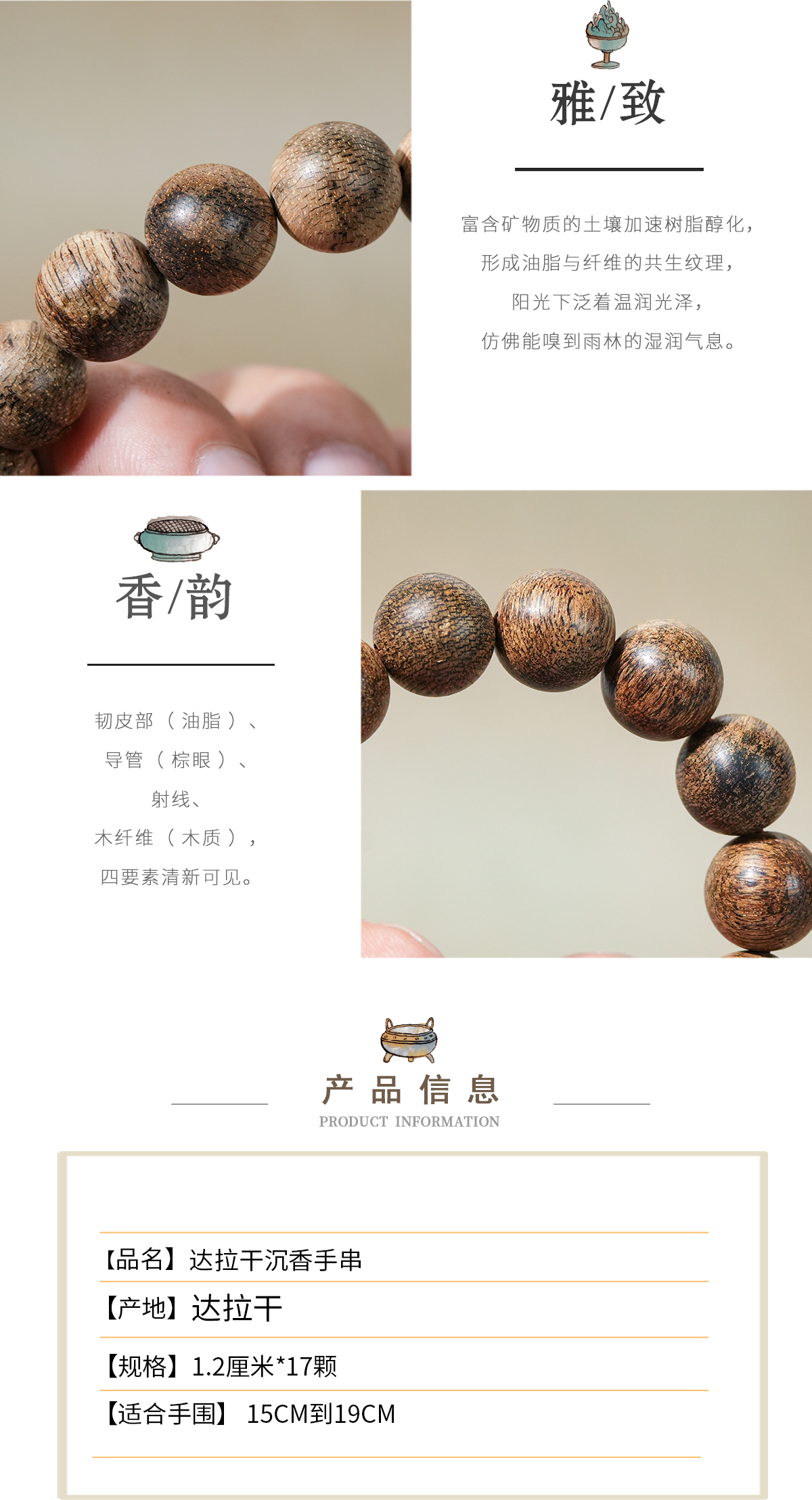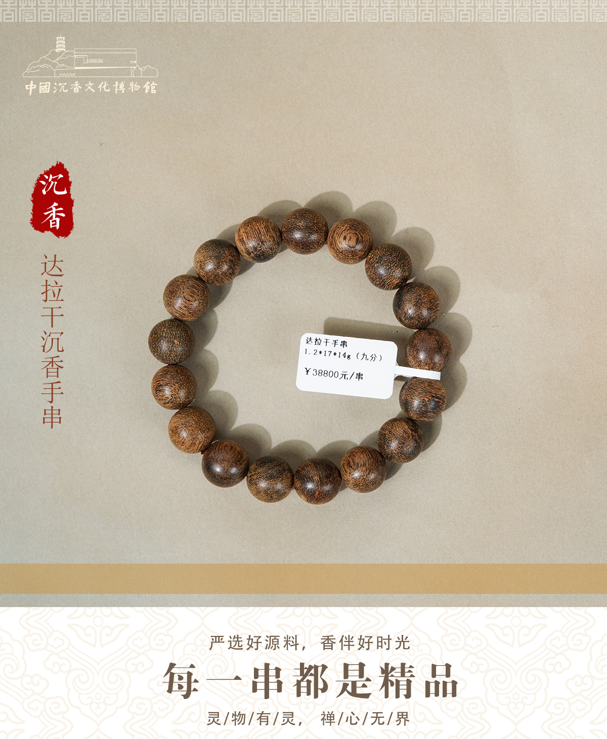 中国沉香文化博物馆 达拉干沉香野生手串1.2mm*17颗*14g【9分沉】