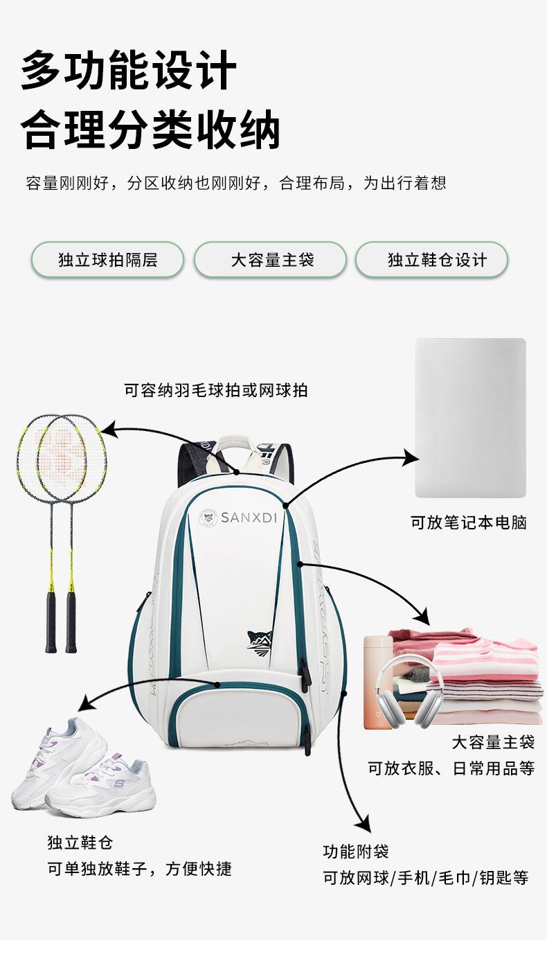 SANXDI网球包男女羽毛球运动背包独立鞋仓专用球拍包大容量