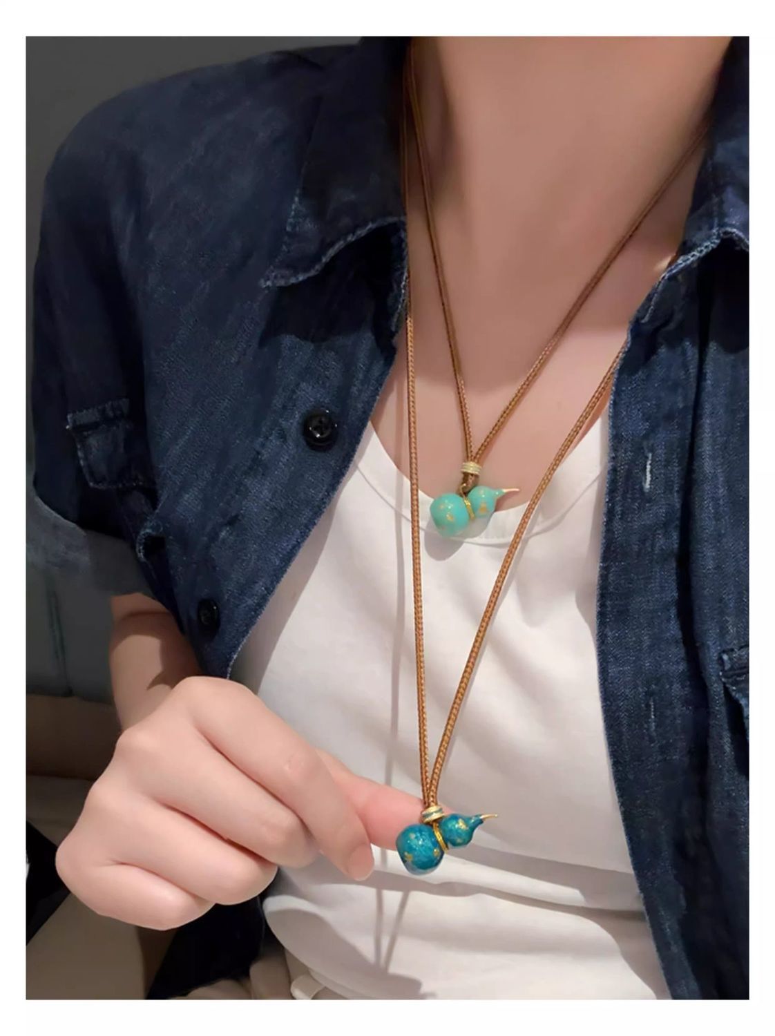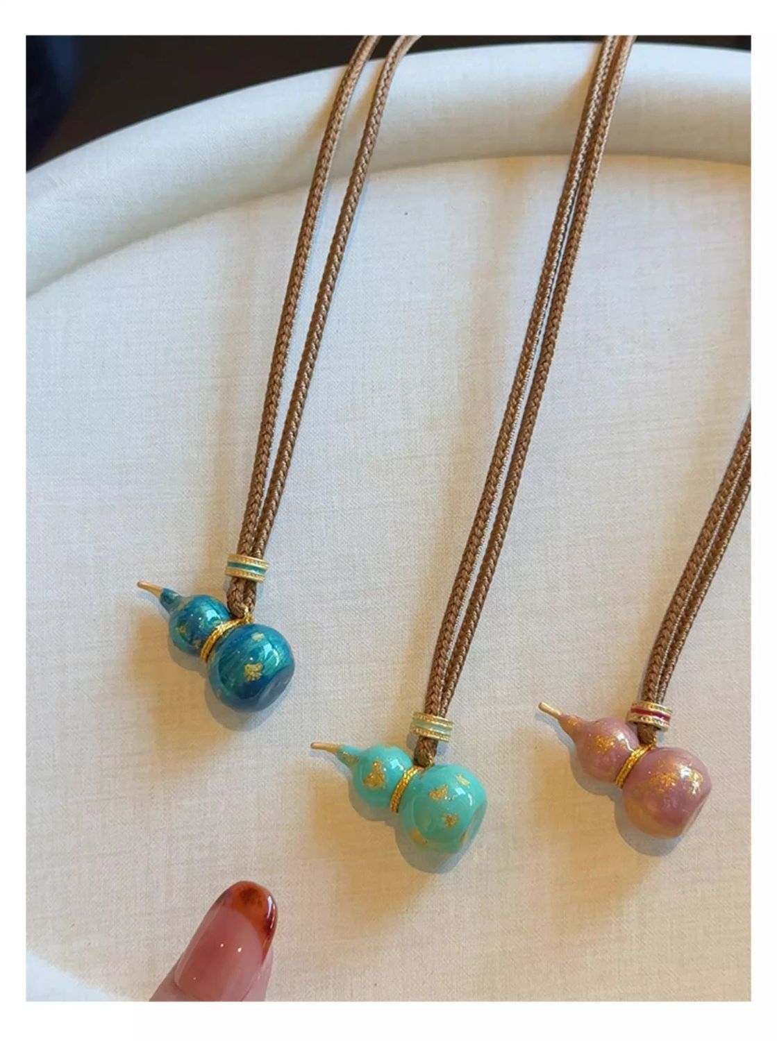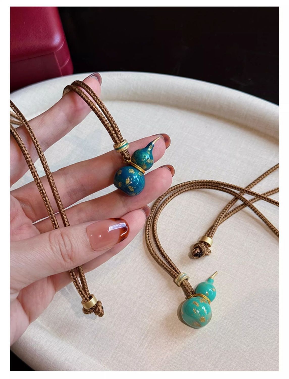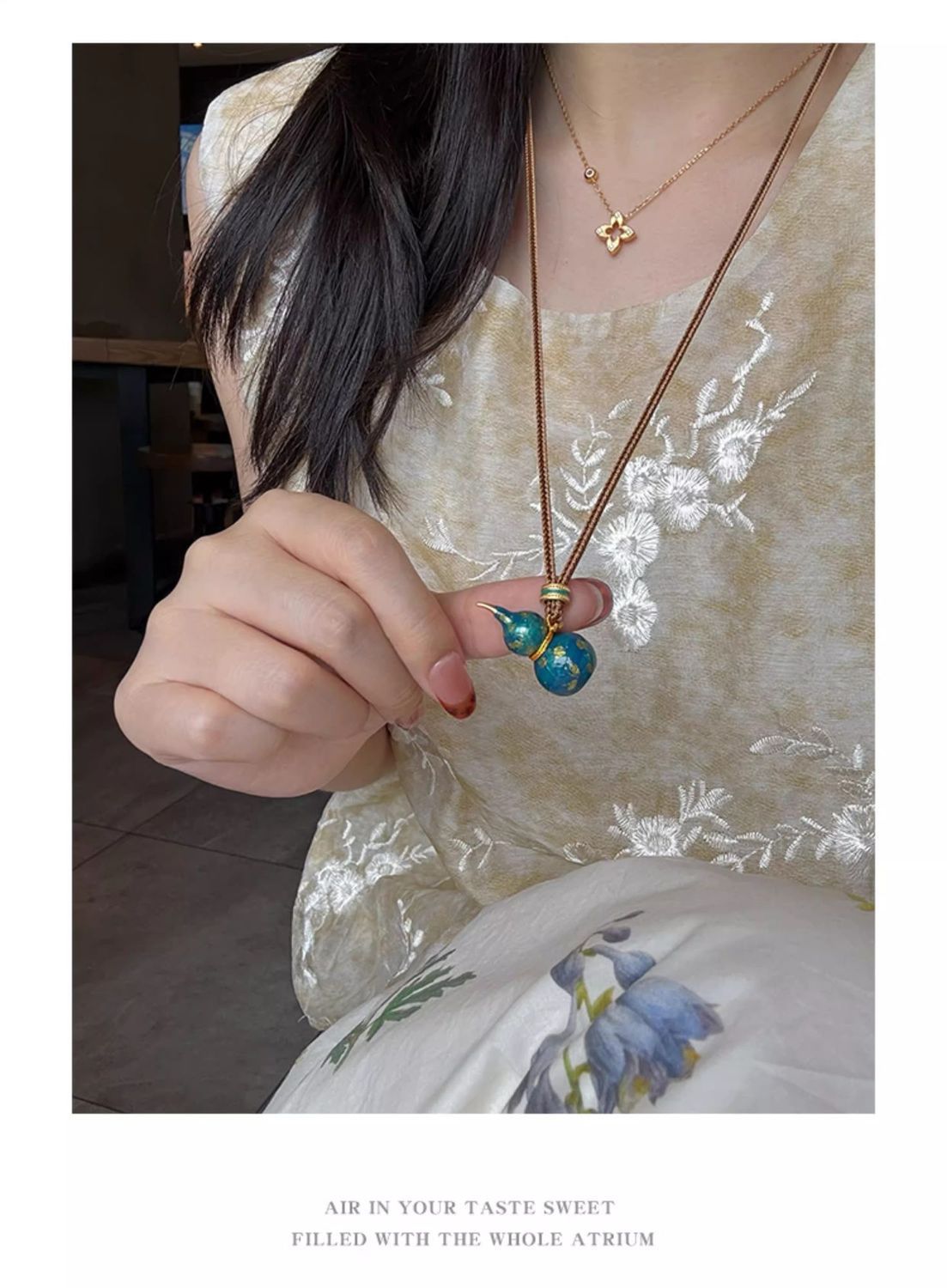【实心纯铜❗️有质感精选色系】新中式彩色珐琅滴釉红色葫芦项链女长款吊坠编绳配饰多巴胺毛衣链。jc