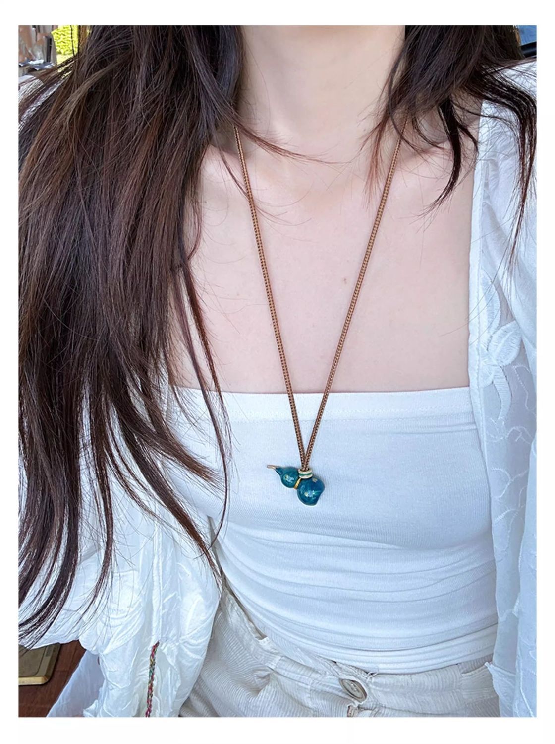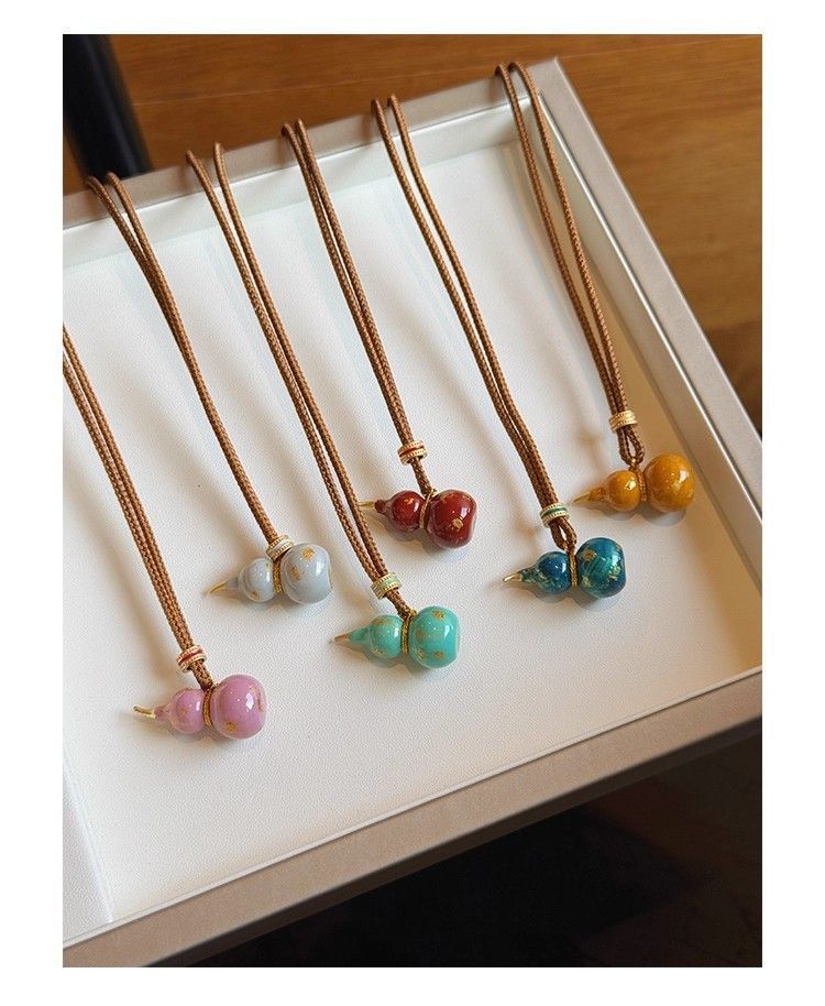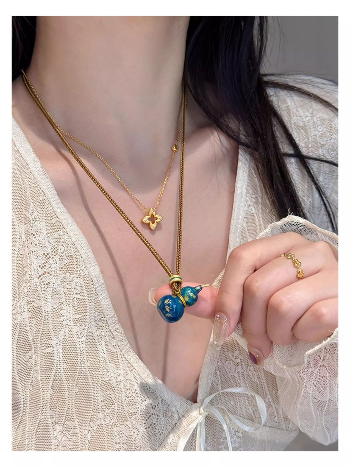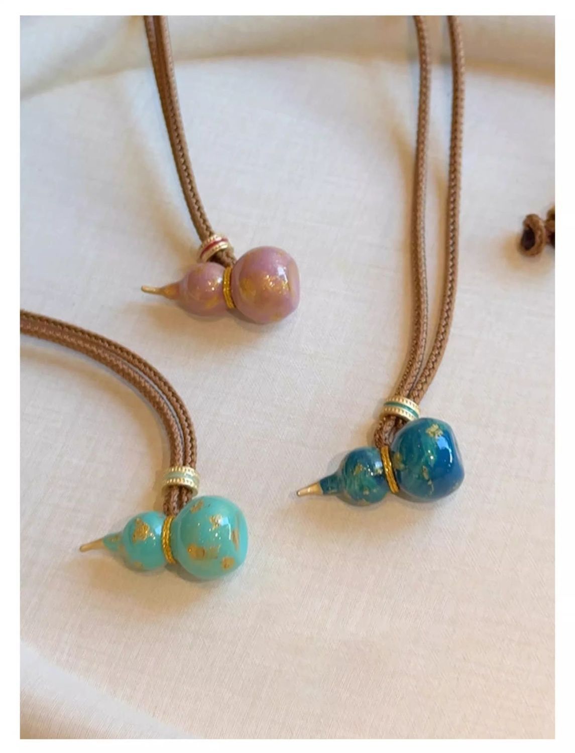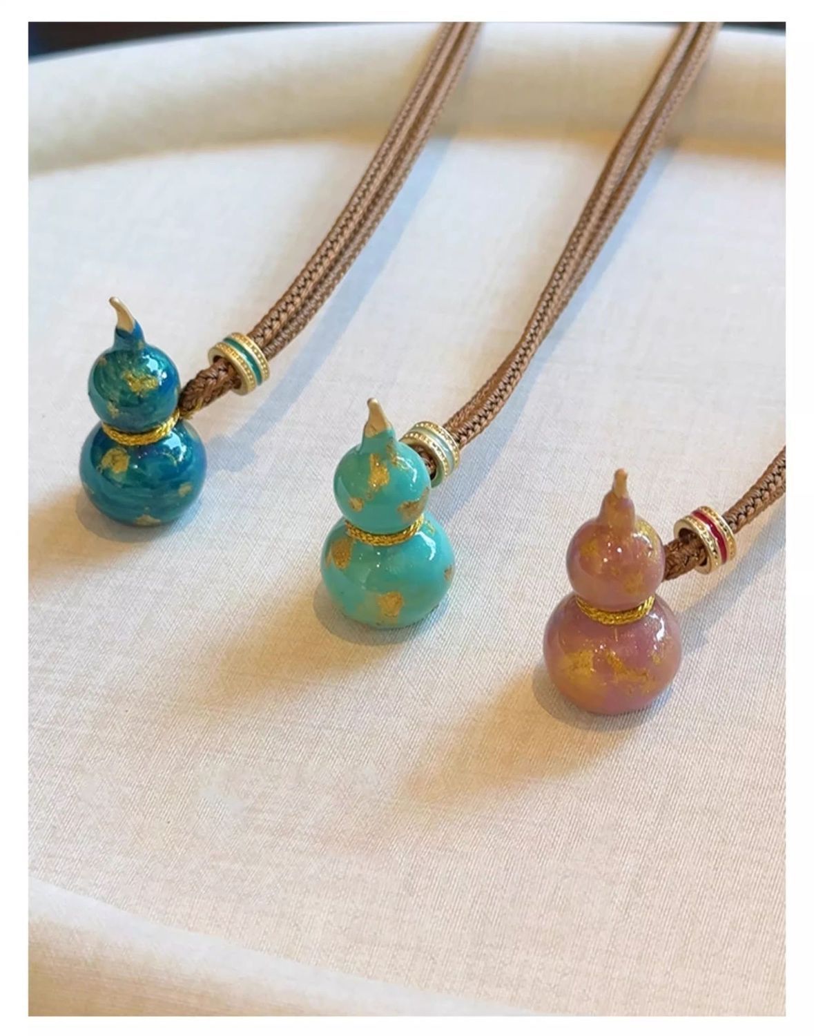 【实心纯铜❗️有质感精选色系】新中式彩色珐琅滴釉红色葫芦项链女长款吊坠编绳配饰多巴胺毛衣链。jc