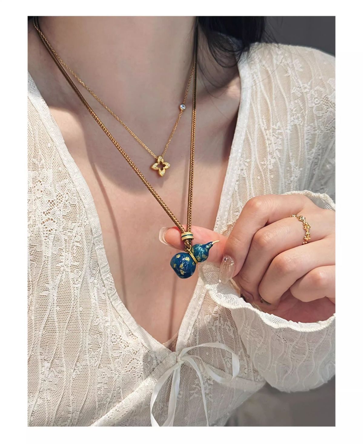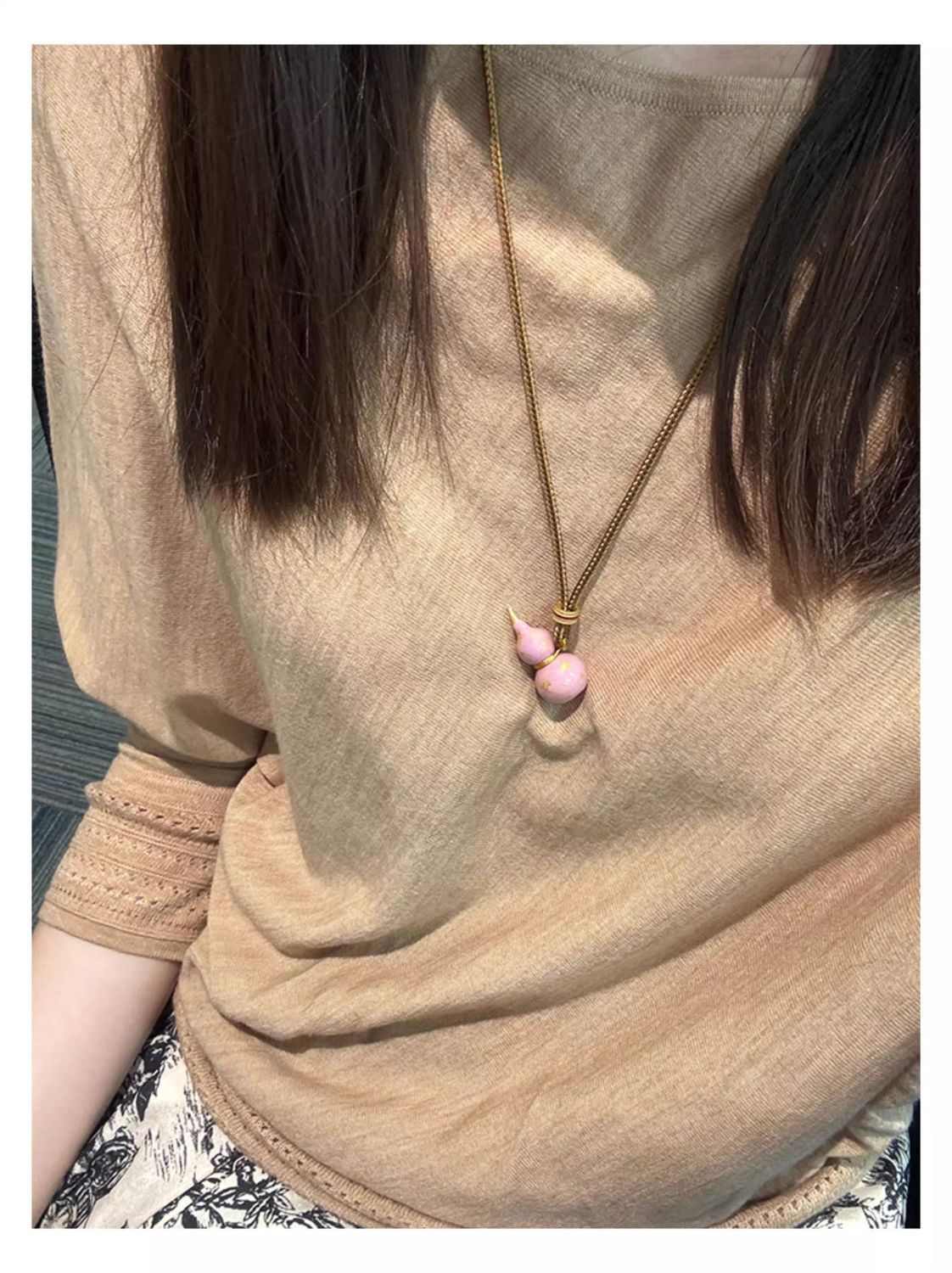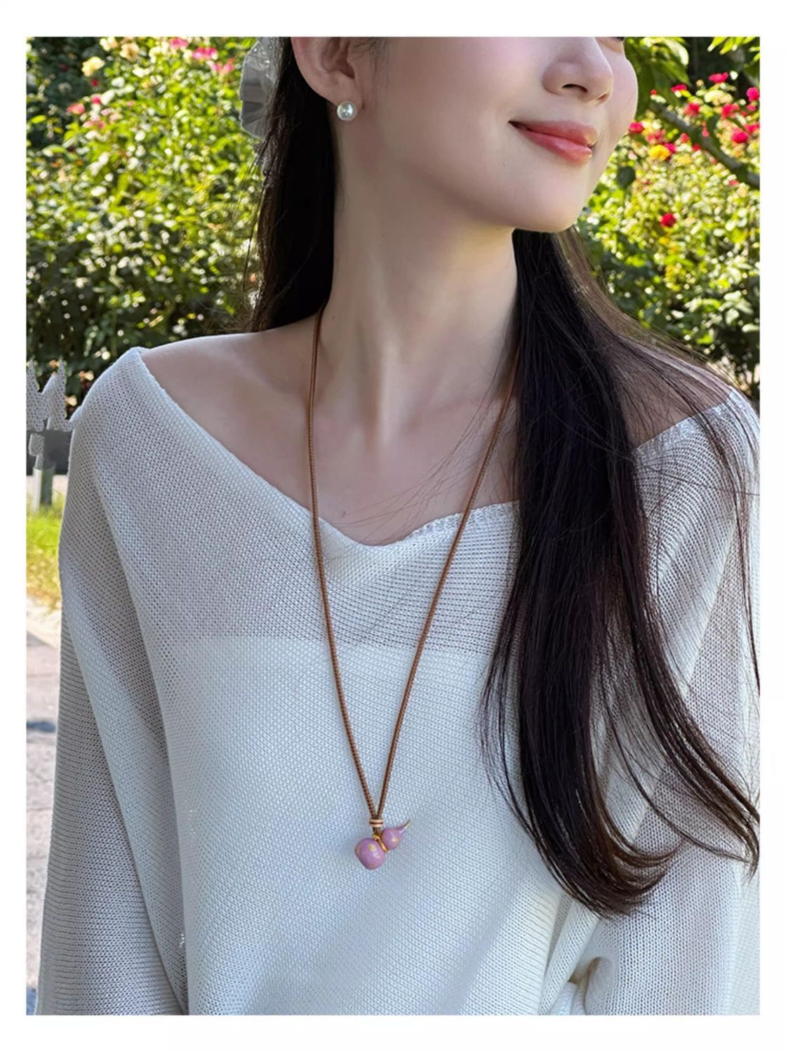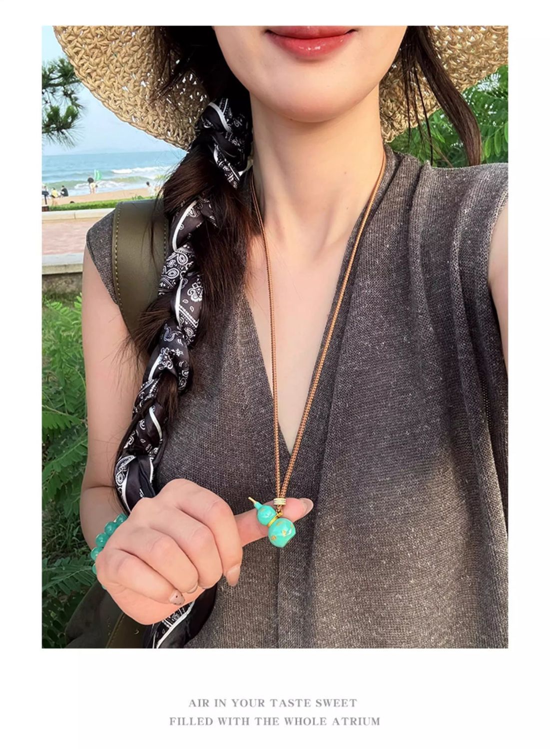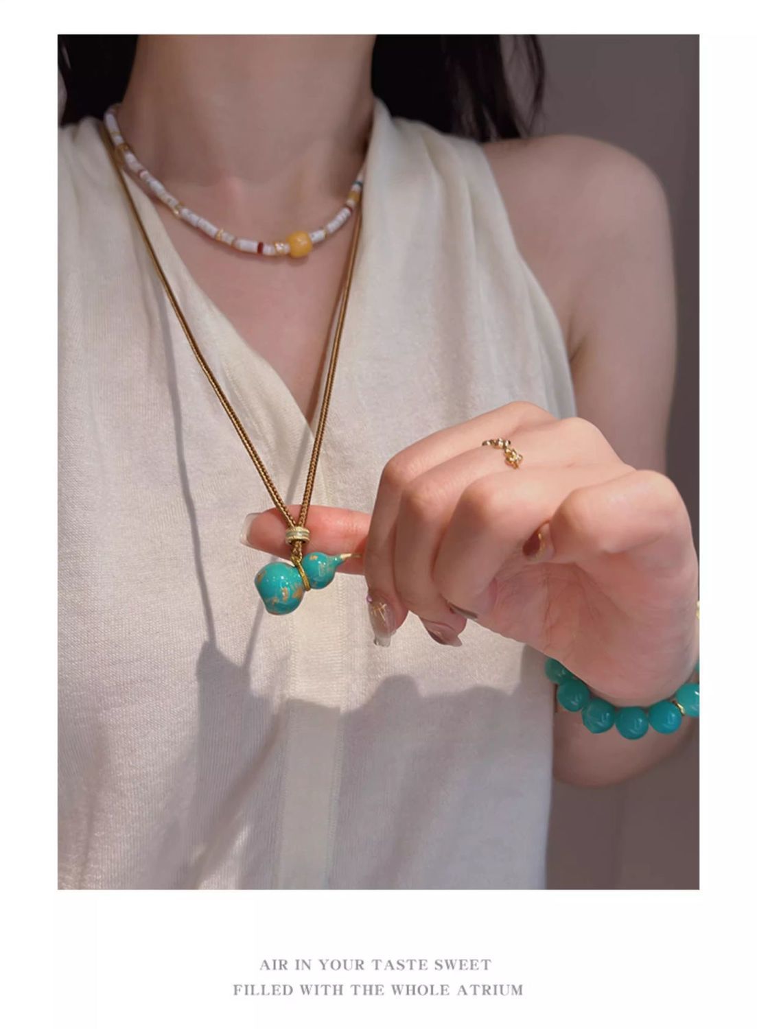 【实心纯铜❗️有质感精选色系】新中式彩色珐琅滴釉红色葫芦项链女长款吊坠编绳配饰多巴胺毛衣链。jc