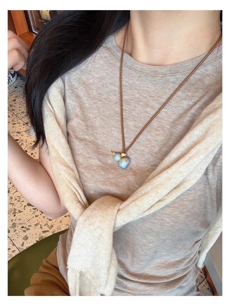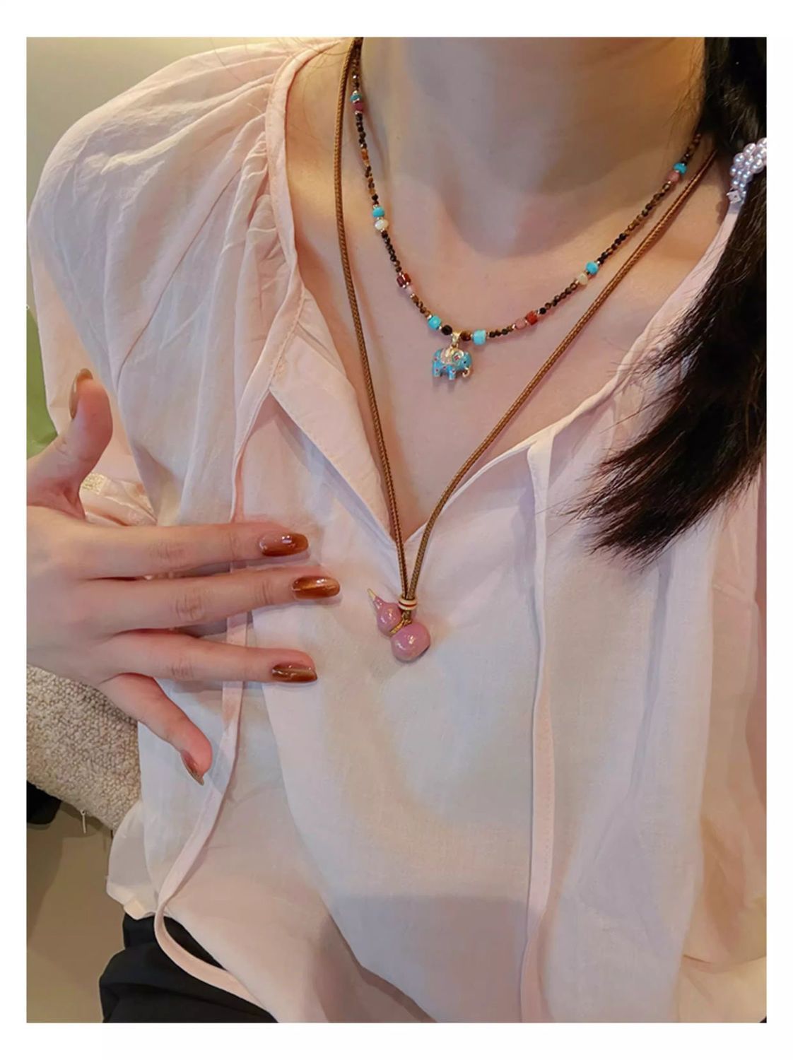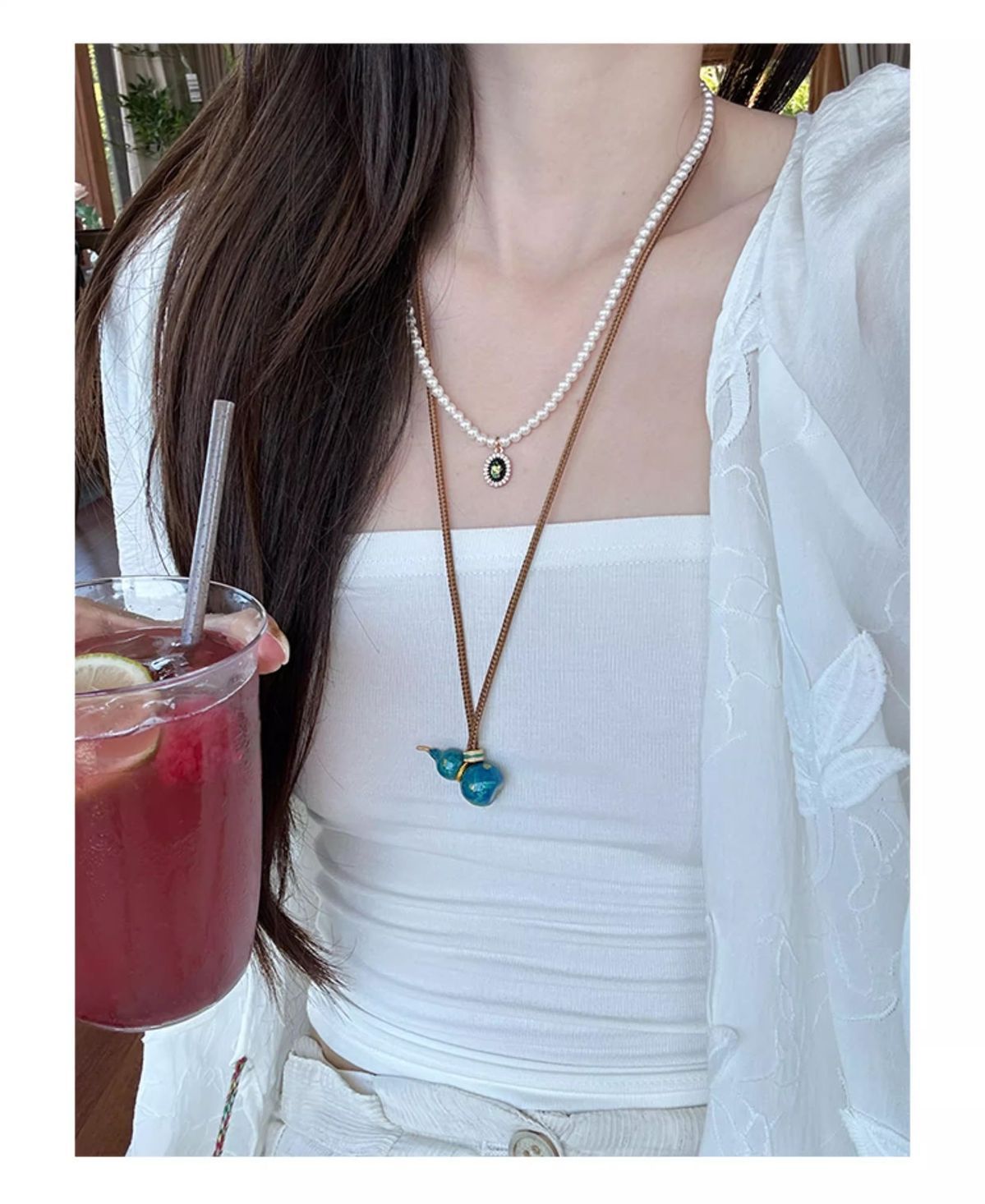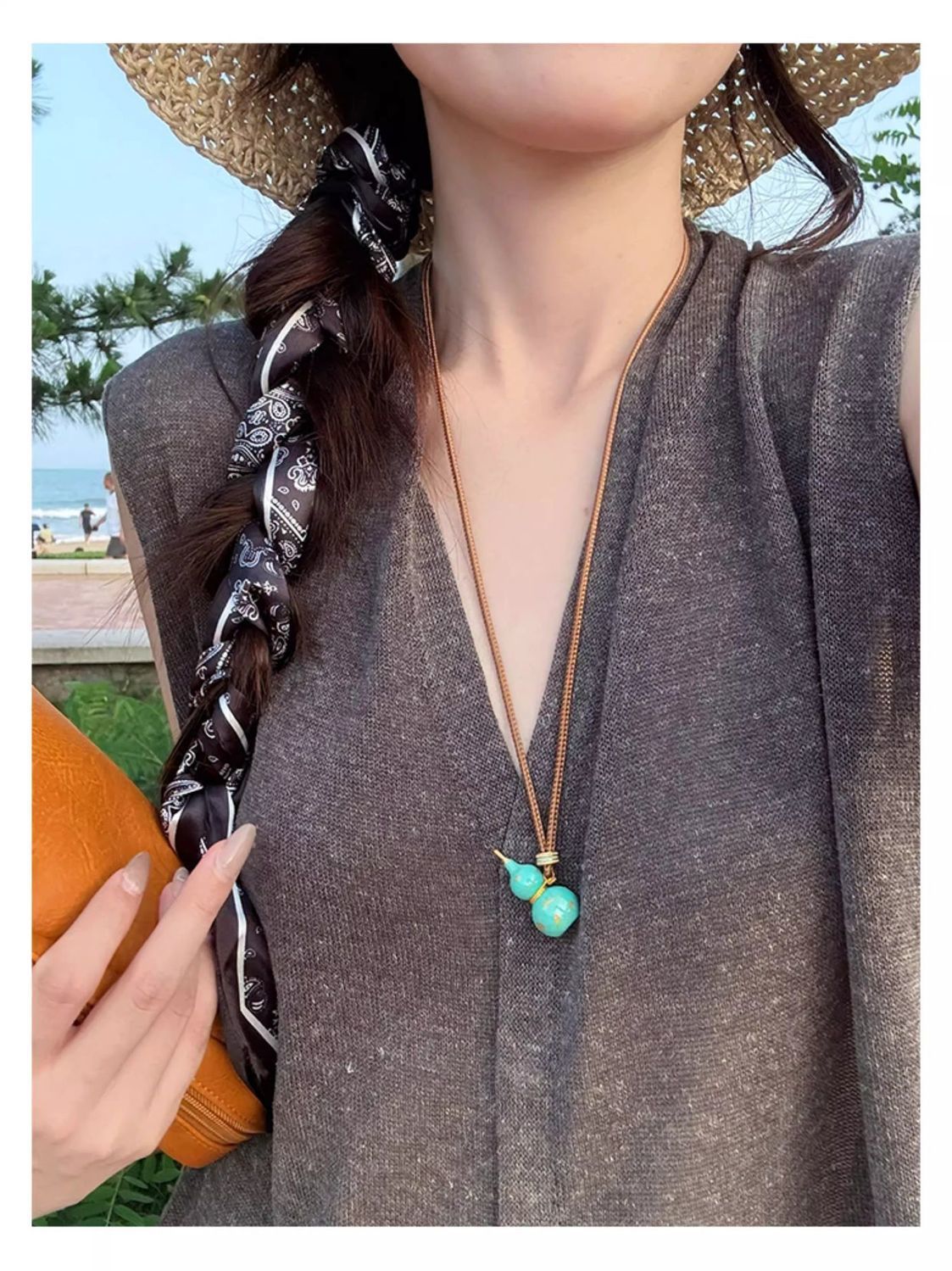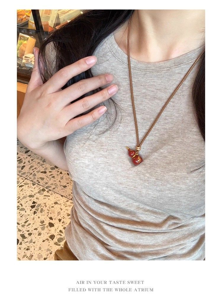【实心纯铜❗️有质感精选色系】新中式彩色珐琅滴釉红色葫芦项链女长款吊坠编绳配饰多巴胺毛衣链。jc