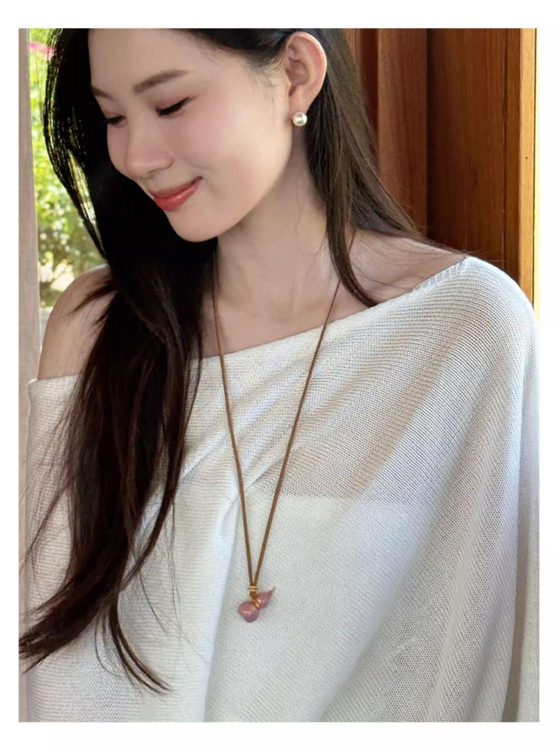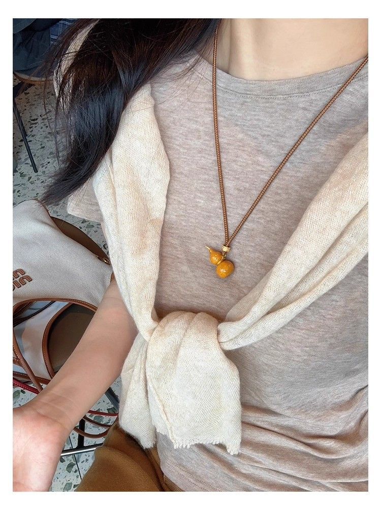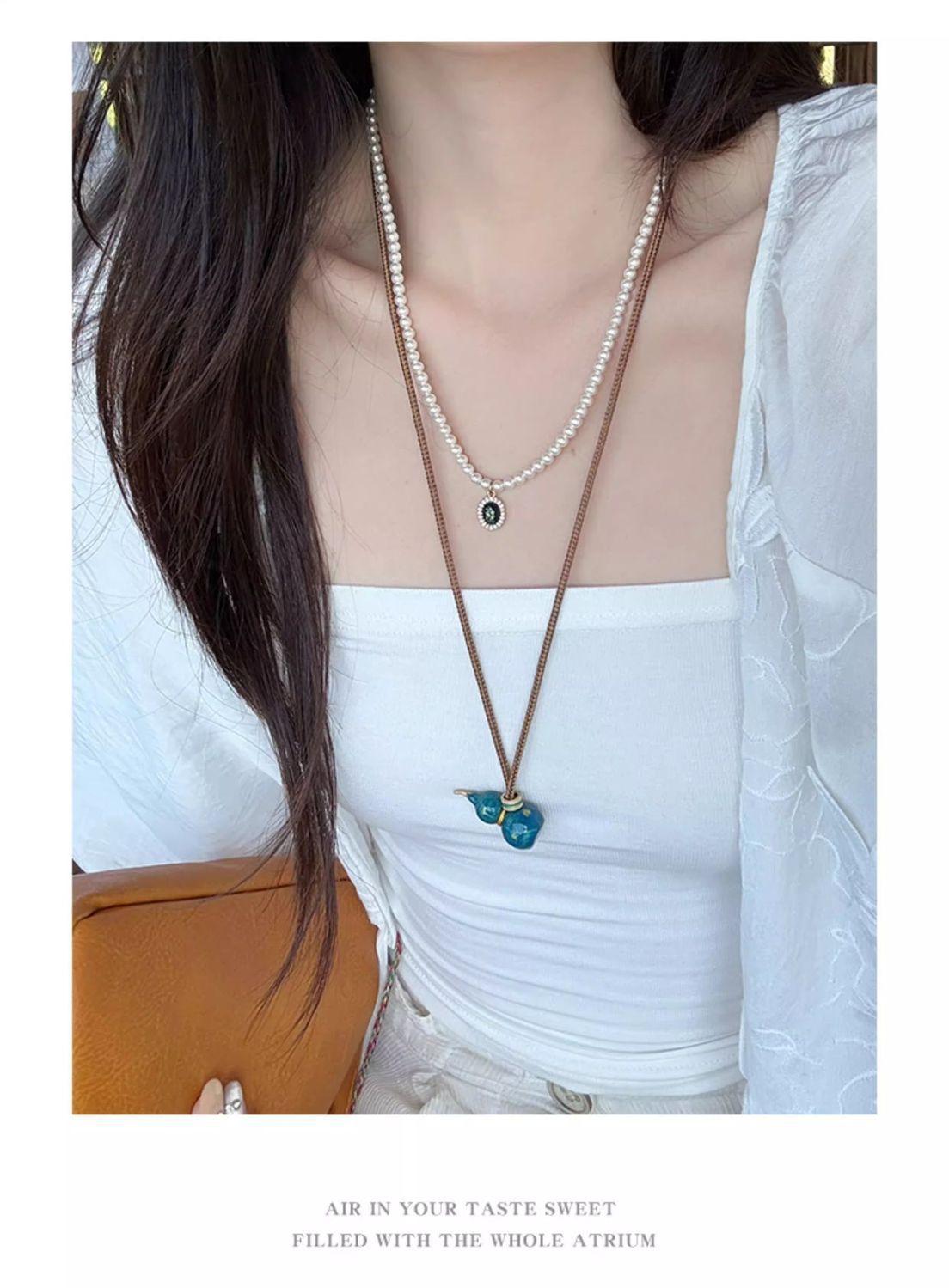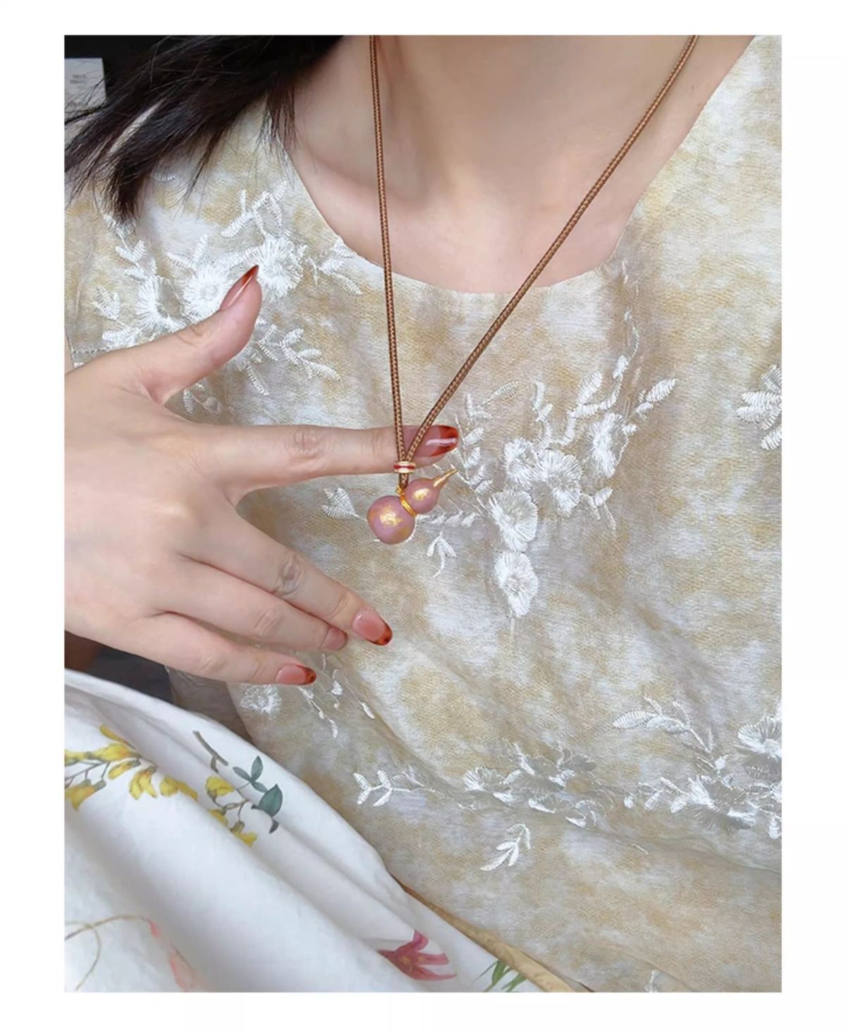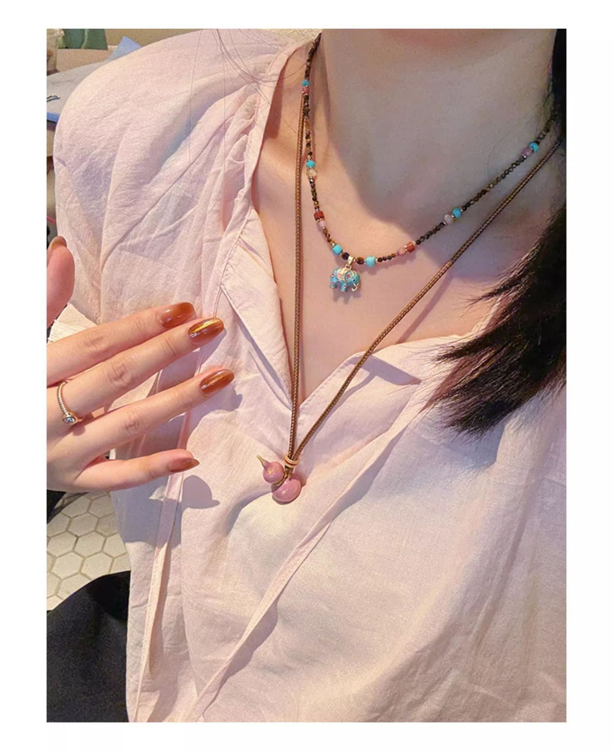 【实心纯铜❗️有质感精选色系】新中式彩色珐琅滴釉红色葫芦项链女长款吊坠编绳配饰多巴胺毛衣链。jc