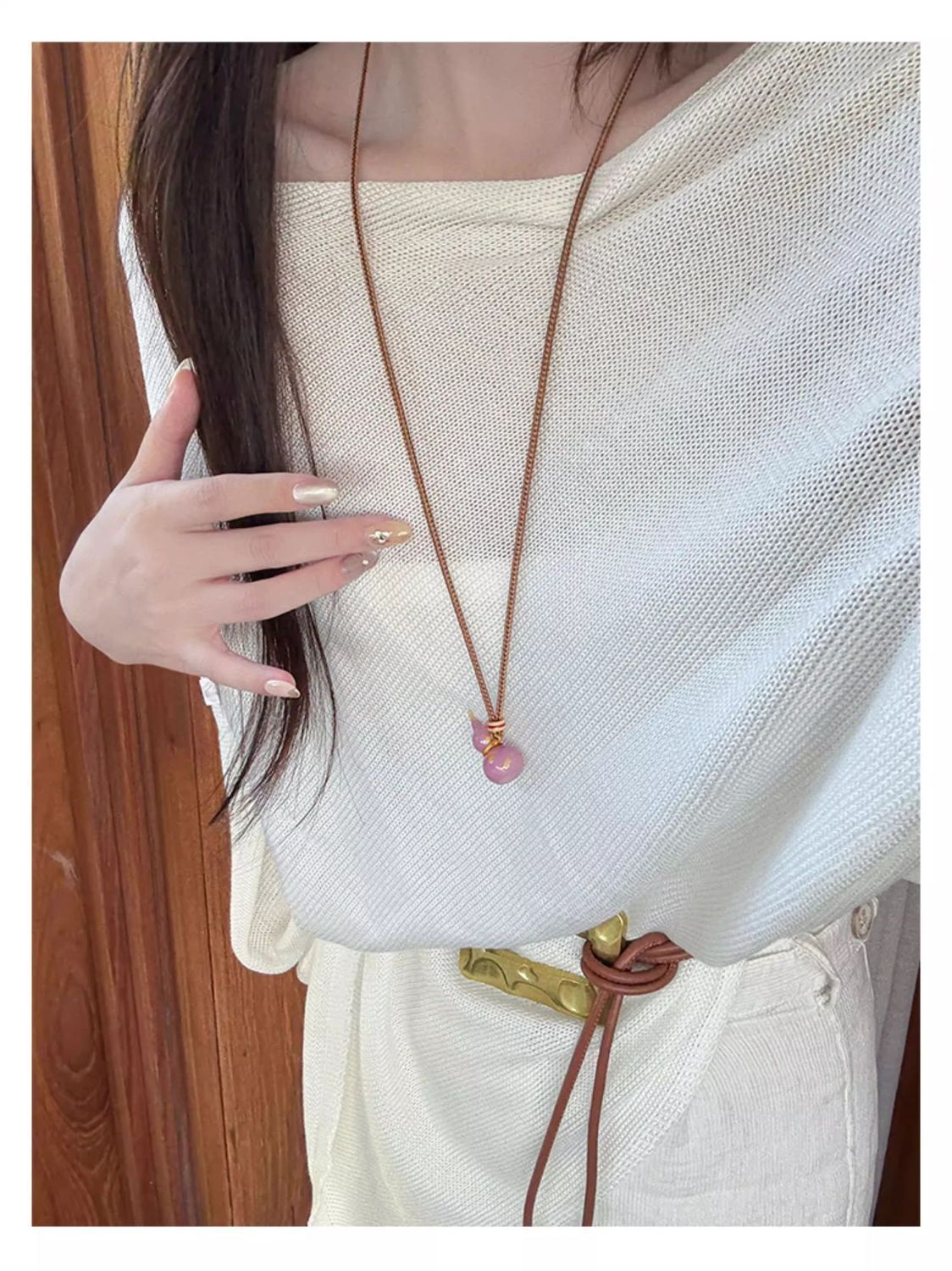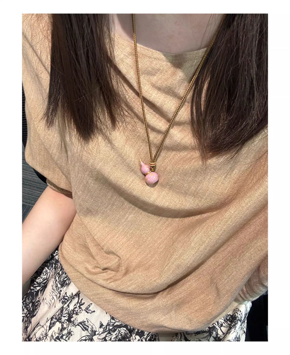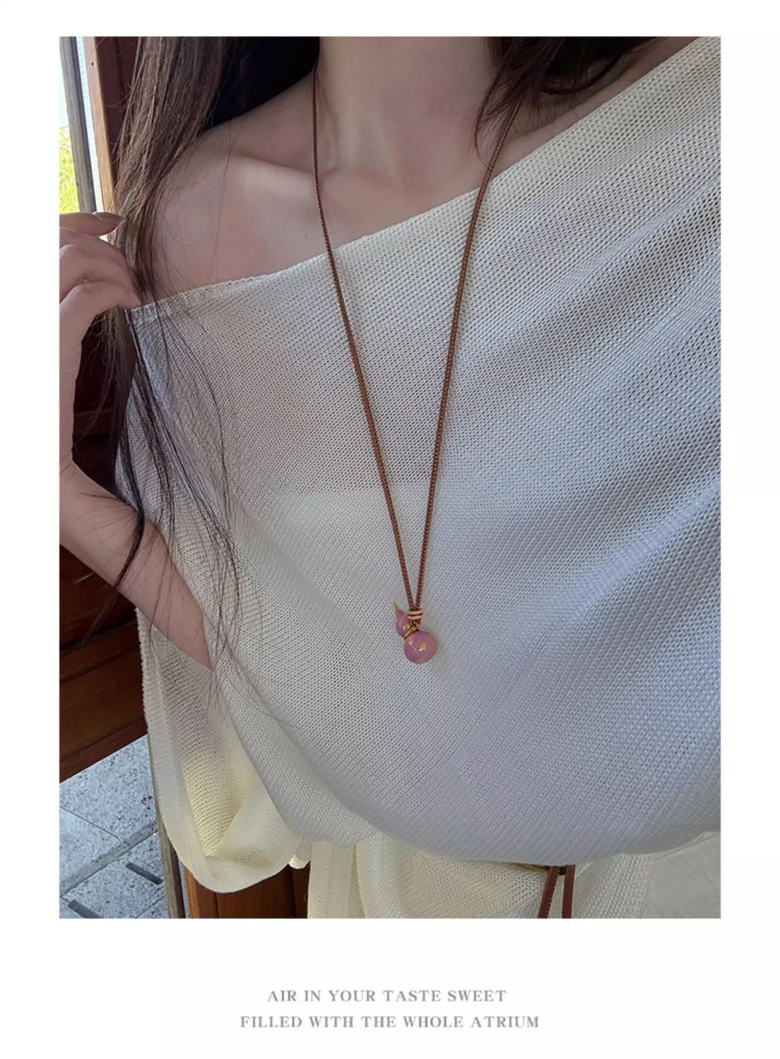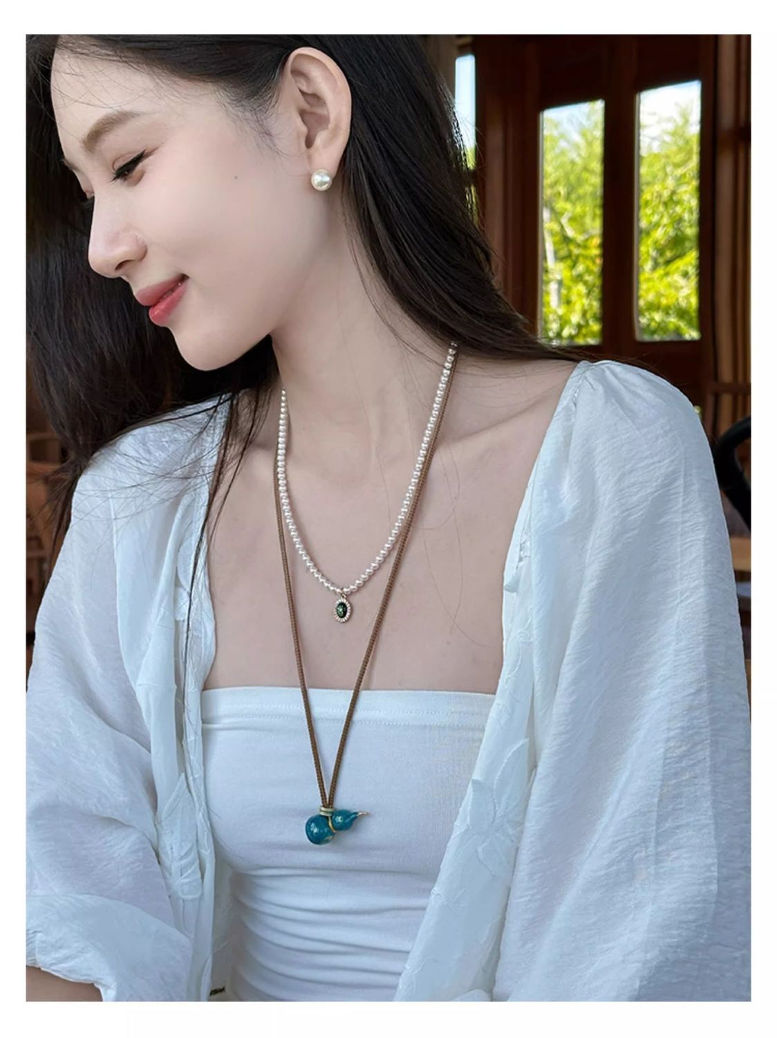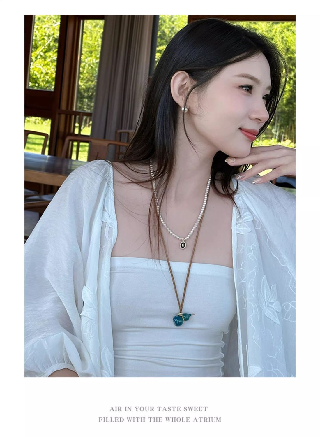 【实心纯铜❗️有质感精选色系】新中式彩色珐琅滴釉红色葫芦项链女长款吊坠编绳配饰多巴胺毛衣链。jc