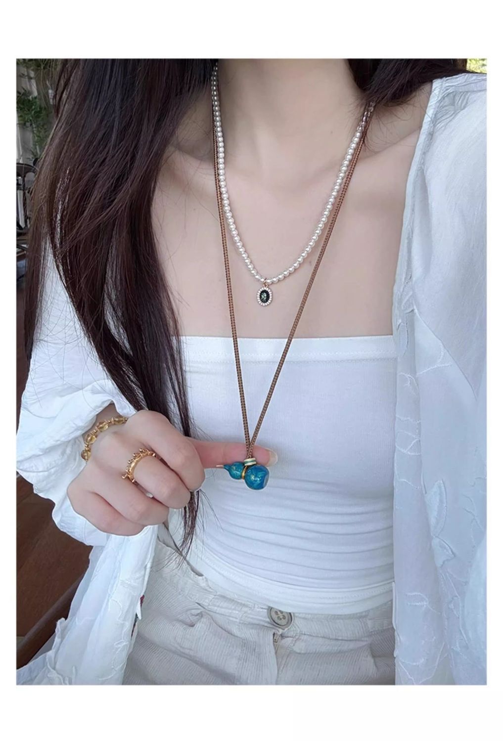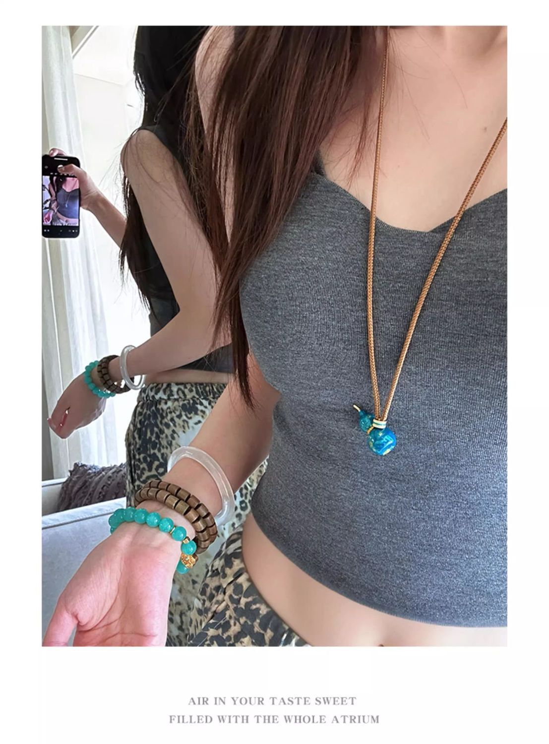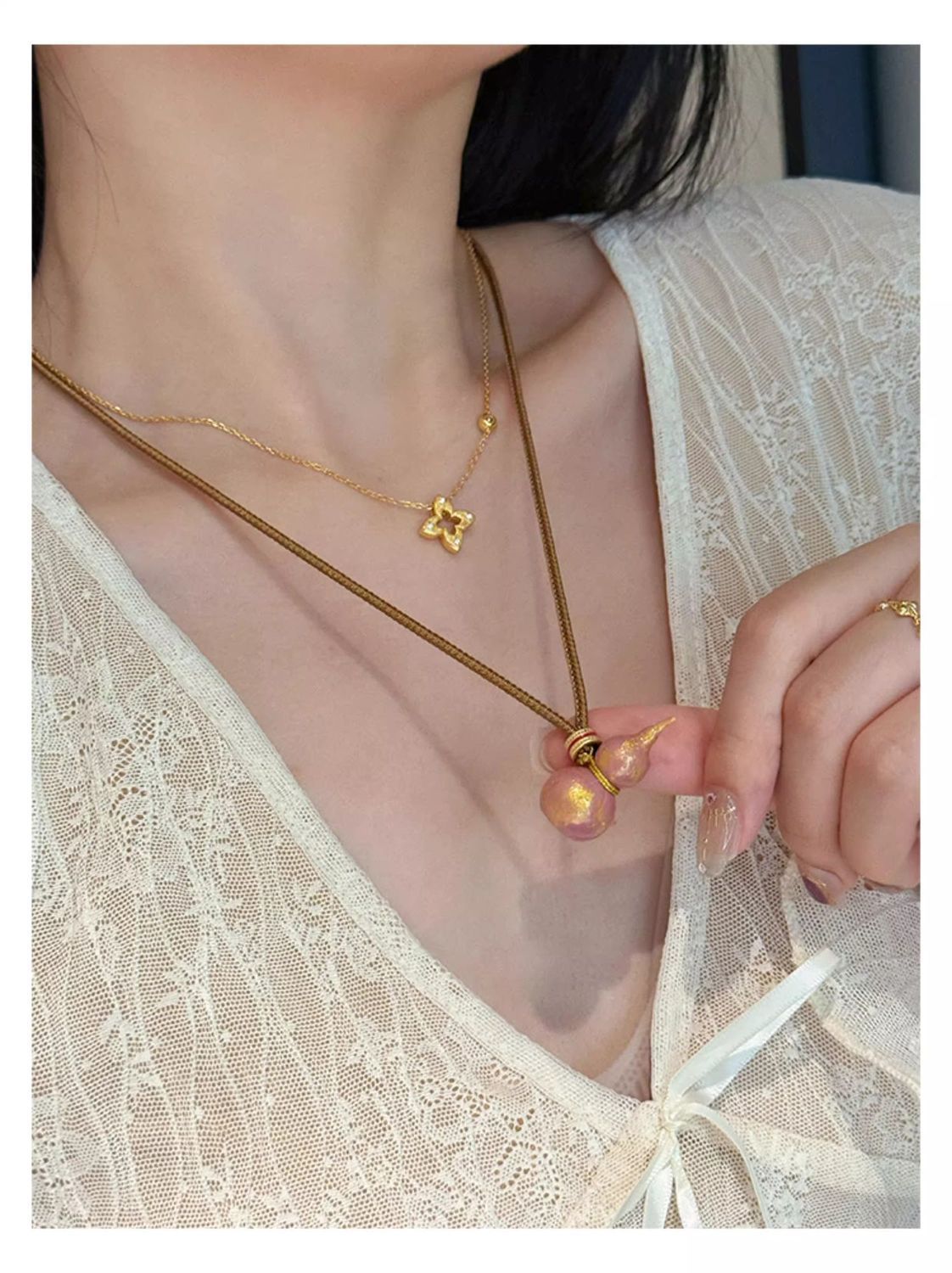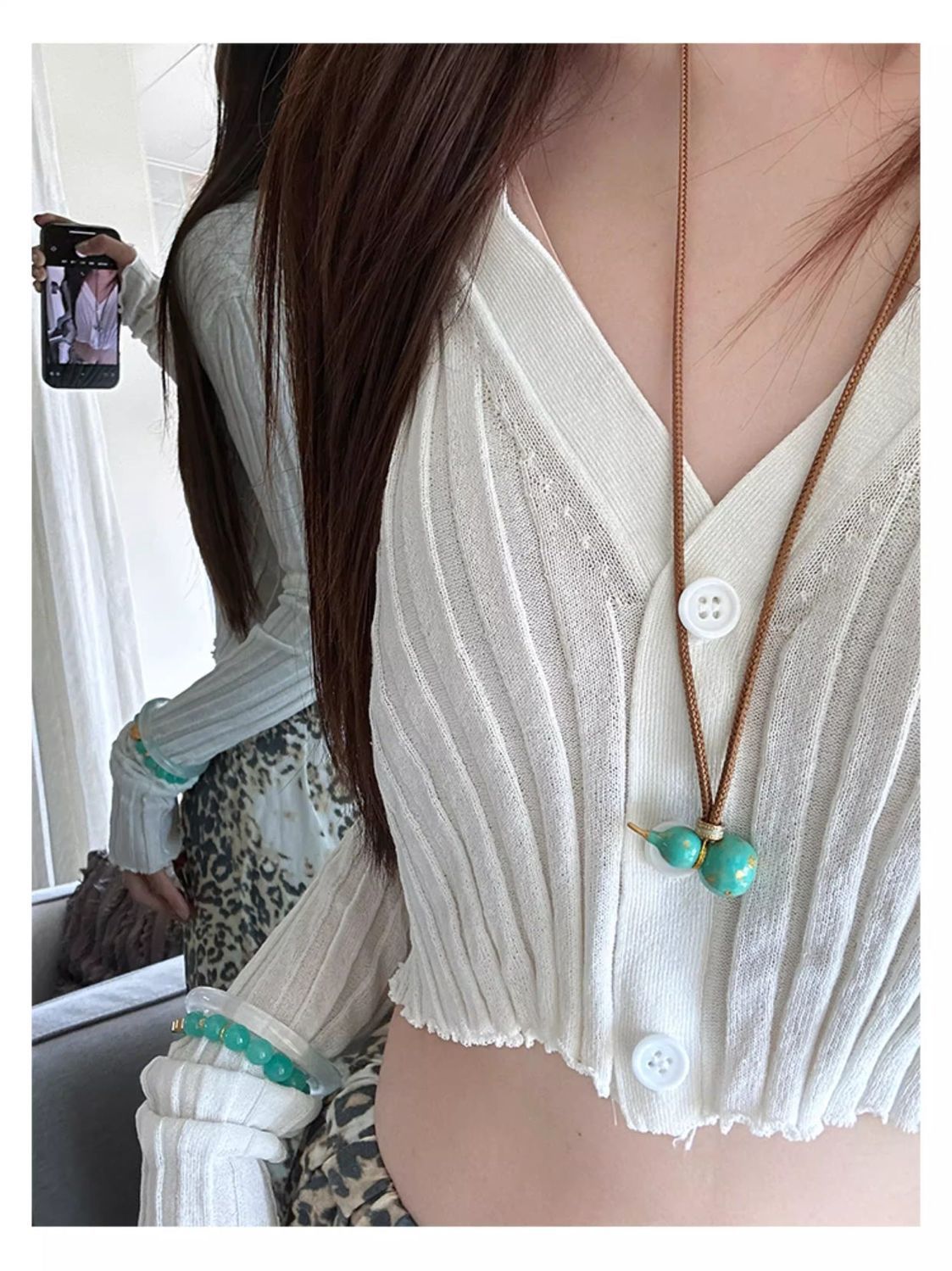【实心纯铜❗️有质感精选色系】新中式彩色珐琅滴釉红色葫芦项链女长款吊坠编绳配饰多巴胺毛衣链。jc