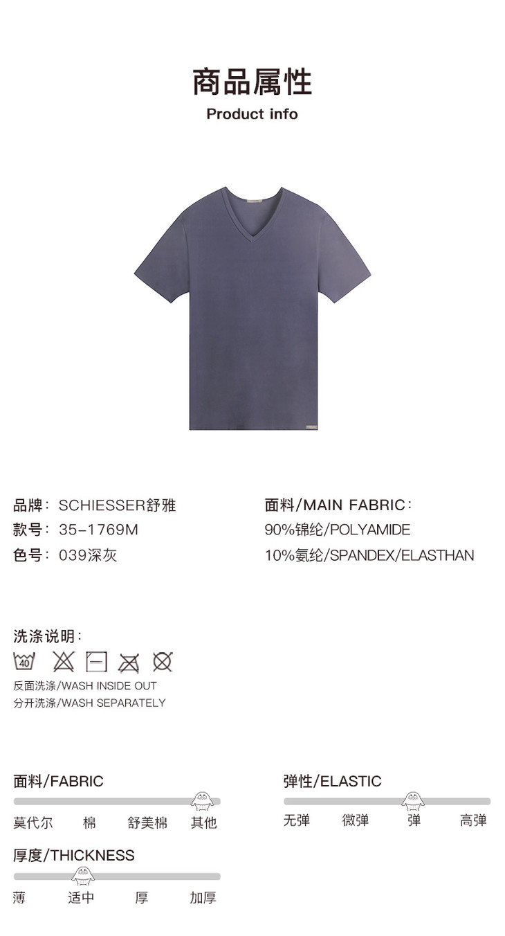 【冰丝速干】SCHIESSER/舒雅男士冰丝V领打底短袖上衣T恤35/1769M
