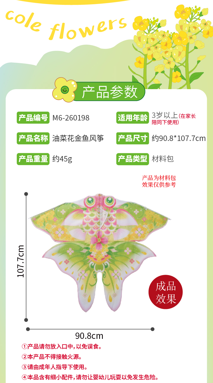 户外春天踏青油菜花金鱼风筝手工diy儿童制作材料包团建活动纸鸢