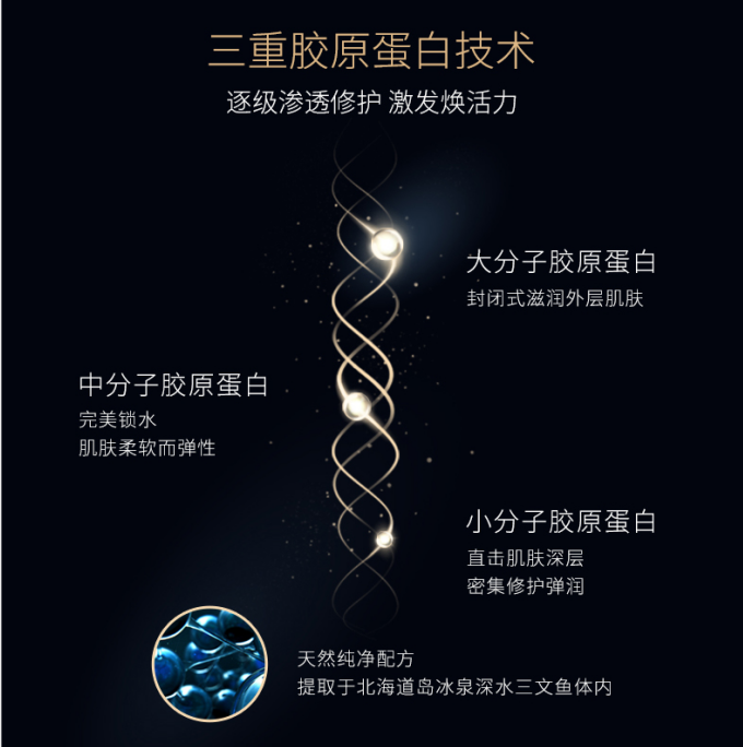 1.三重胶原蛋白,提取自北海道珍惜天然冰泉深水三文鱼