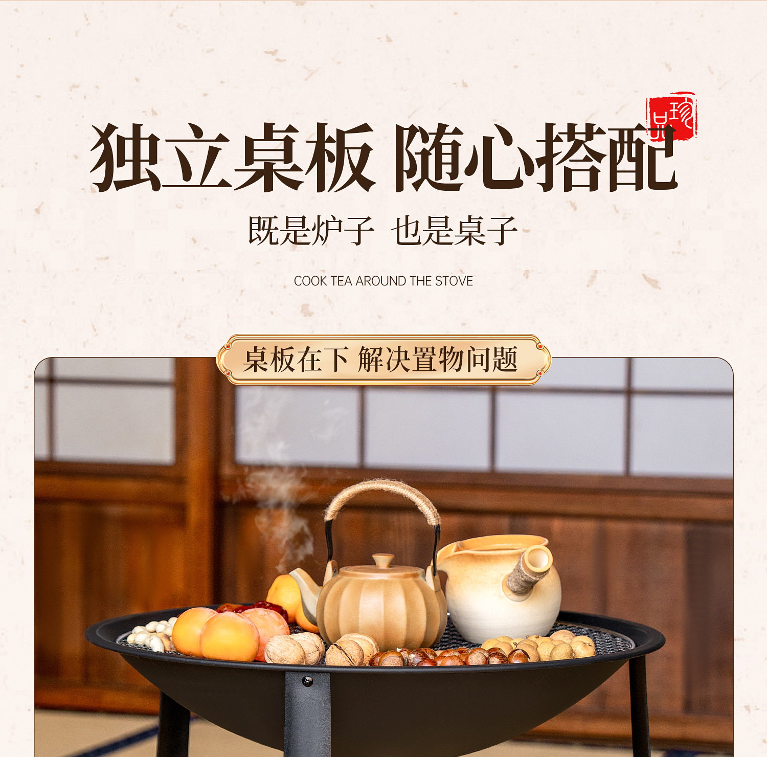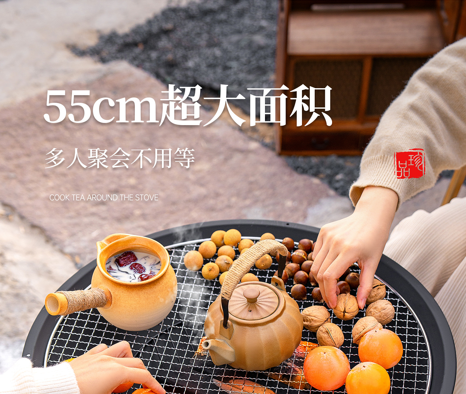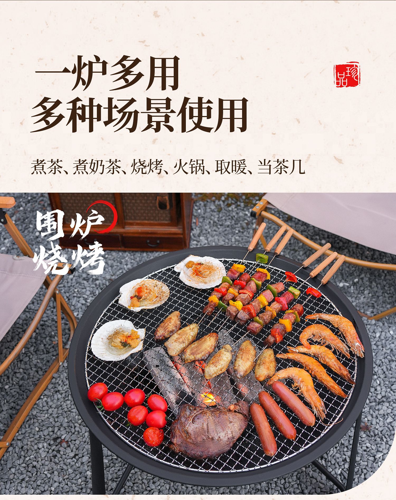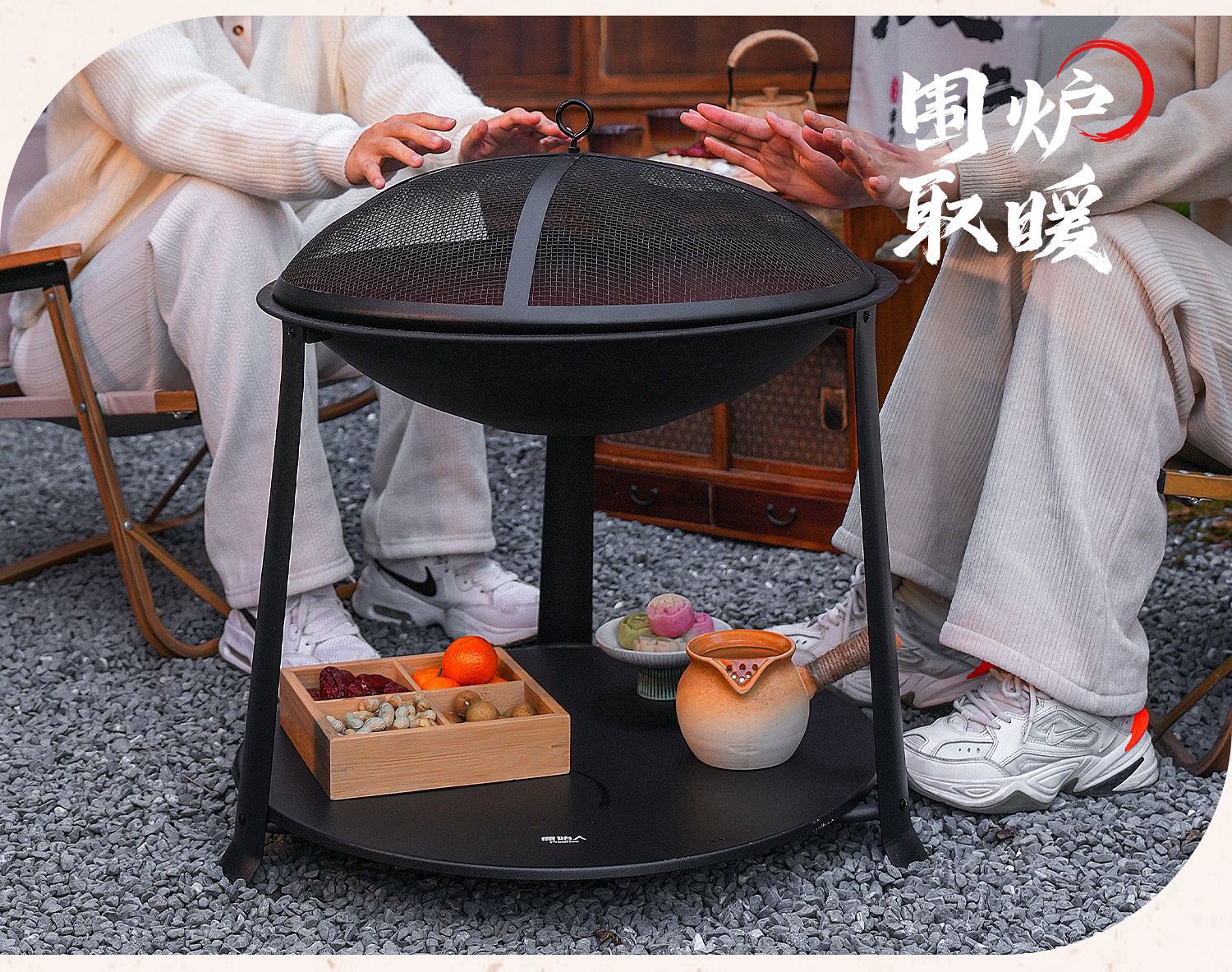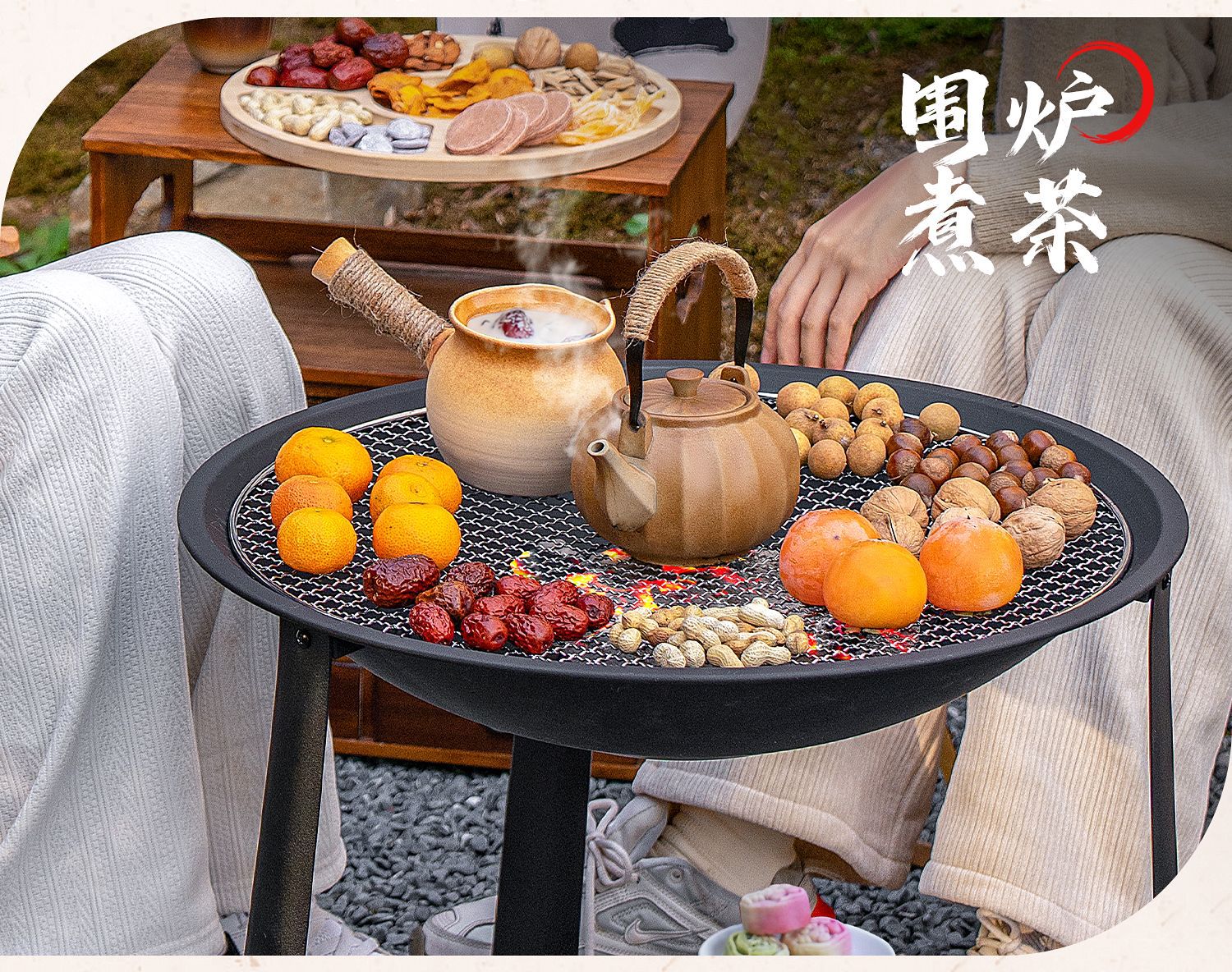 【围炉煮茶慢品茶香❗️独立桌板随心搭配】冬日庭院围炉煮茶桌 家用室内取暖炭火炉 户外多功能烧烤架烧烤炉。jb