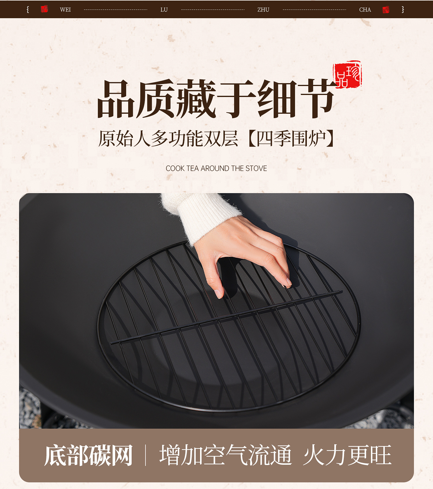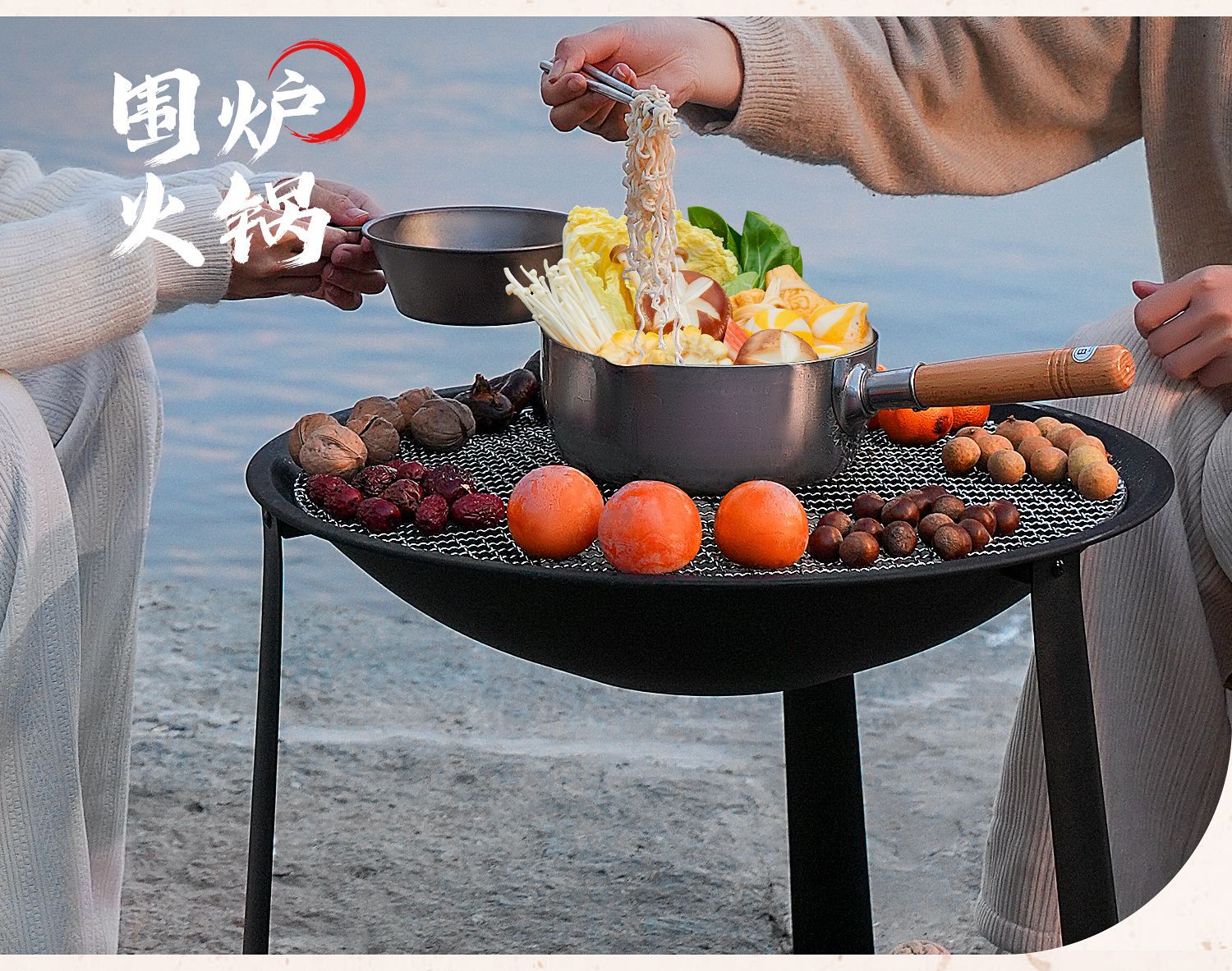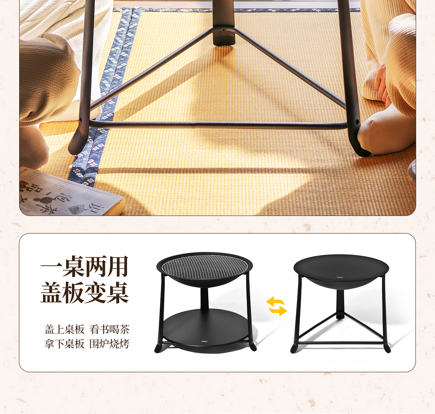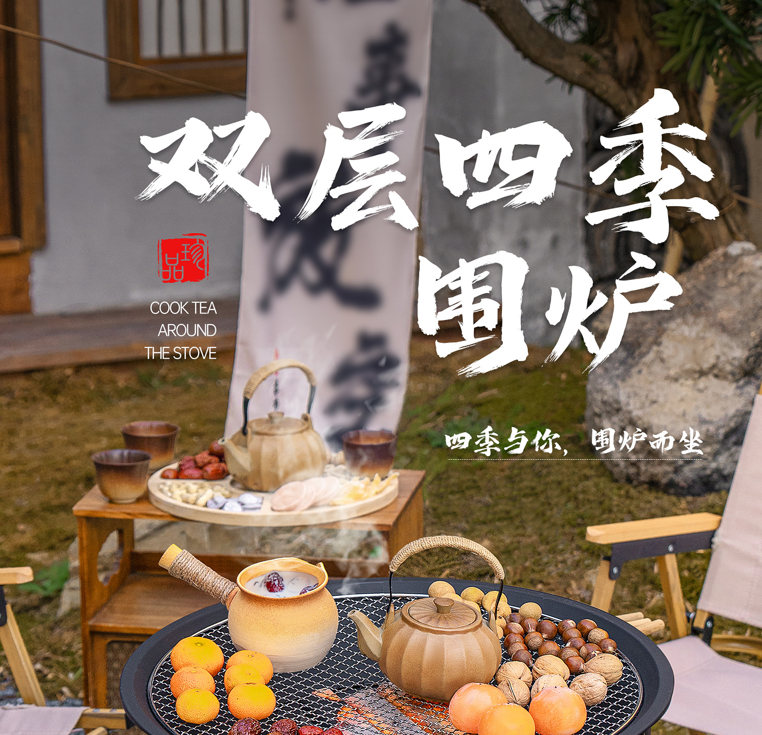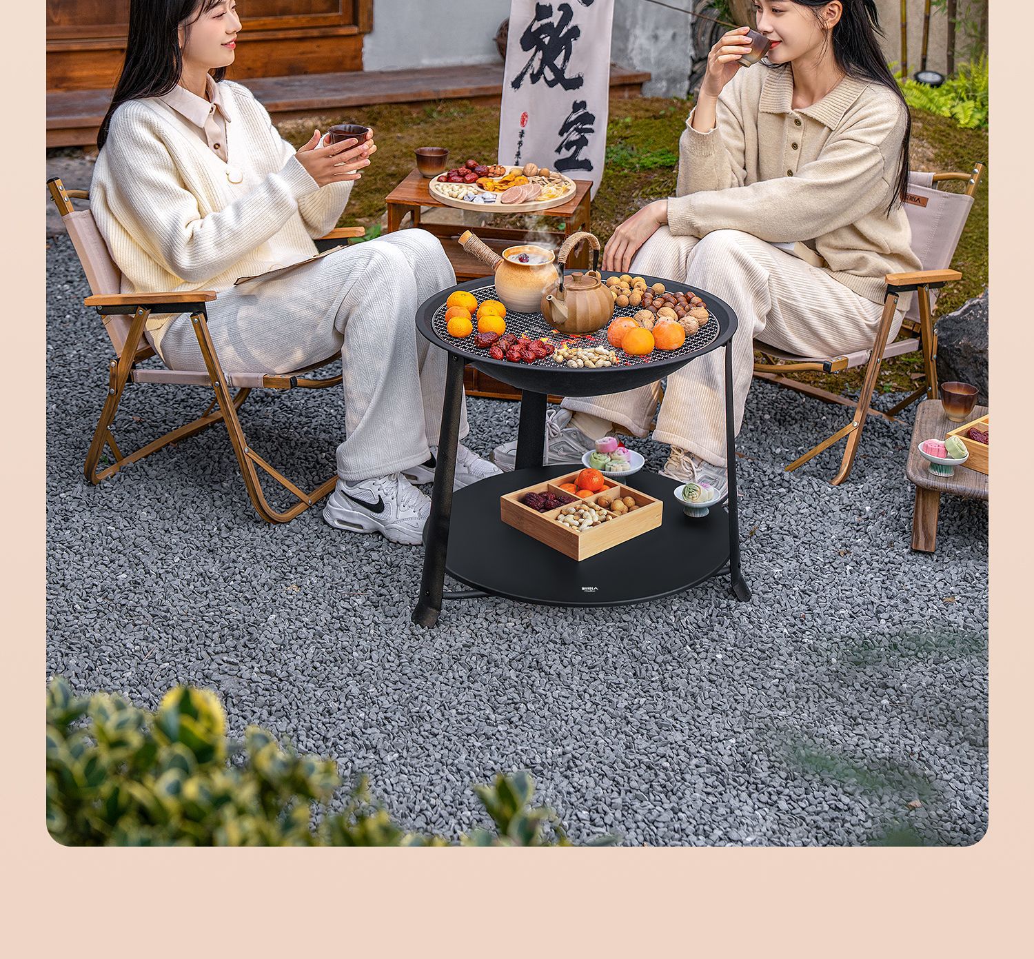 【围炉煮茶慢品茶香❗️独立桌板随心搭配】冬日庭院围炉煮茶桌 家用室内取暖炭火炉 户外多功能烧烤架烧烤炉。jb