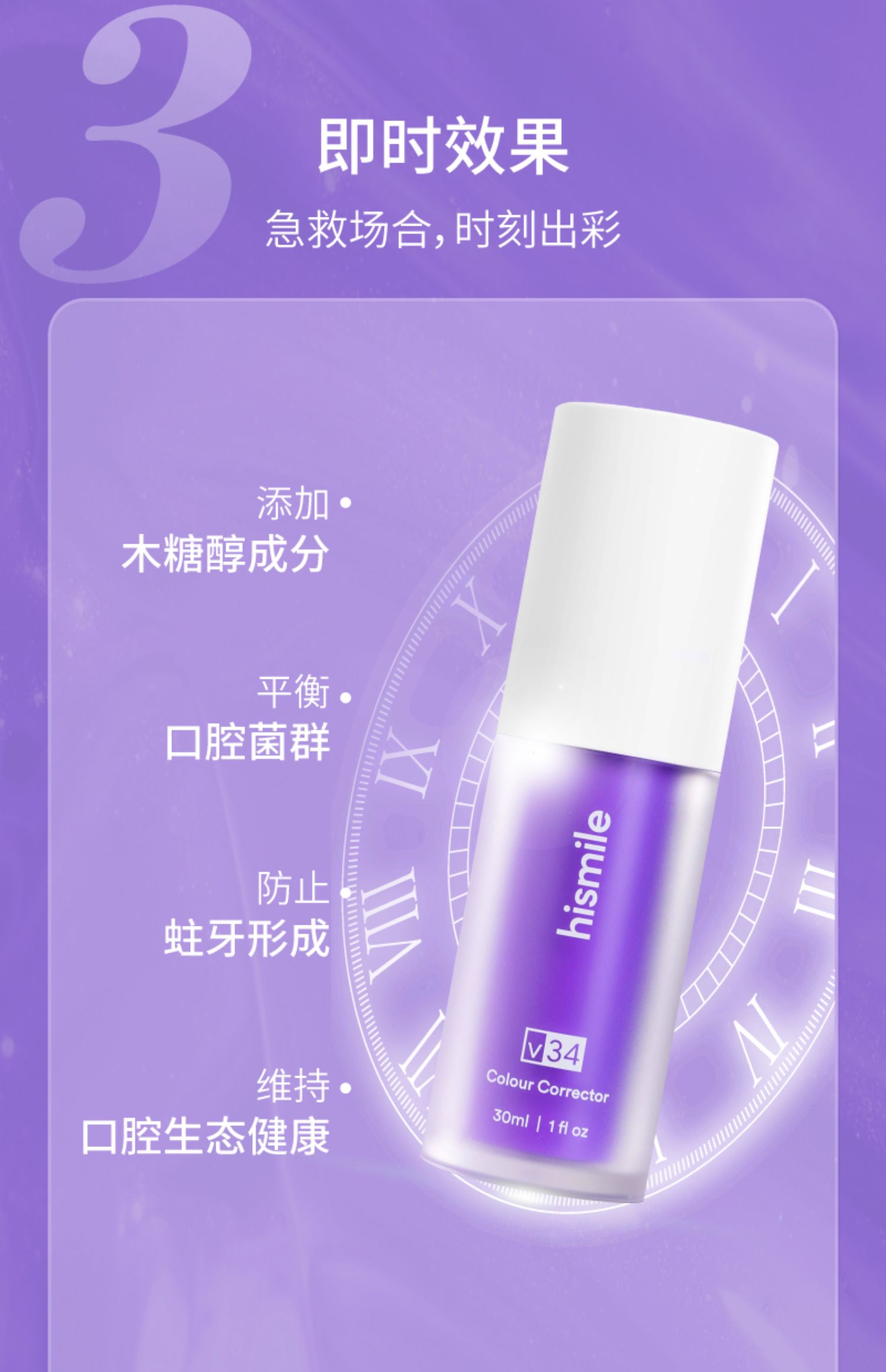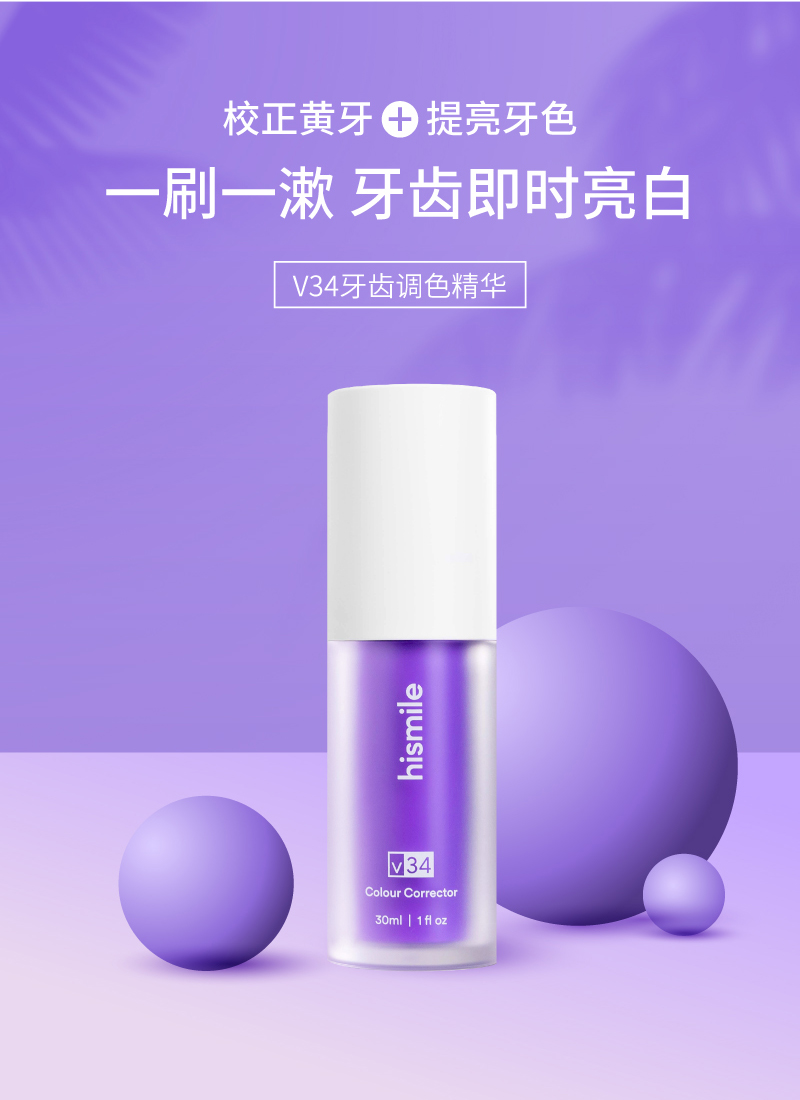 【中欧班列精选2瓶】法国Hlsmlle v34牙齿色彩校正精华 原装进口提亮白美牙清新口气牙齿 30ml/瓶